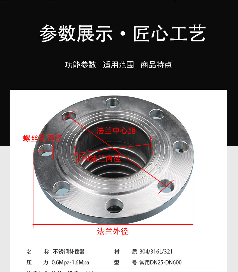 Shuoma 304 stainless steel compensator bellows metal bellows flange expansion joint expansion joint marine pipeline connection DN80 (national standard 304 flange)