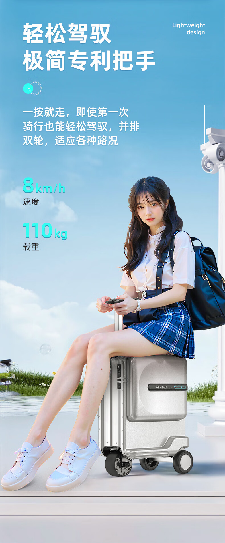 Airway Airway 20-inch smart electric suitcase rideable travel boarding case manned trolley case SE3miniT luxury version silver can be boarded