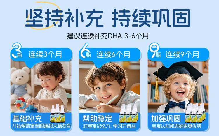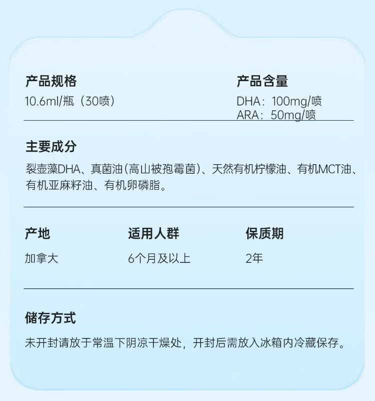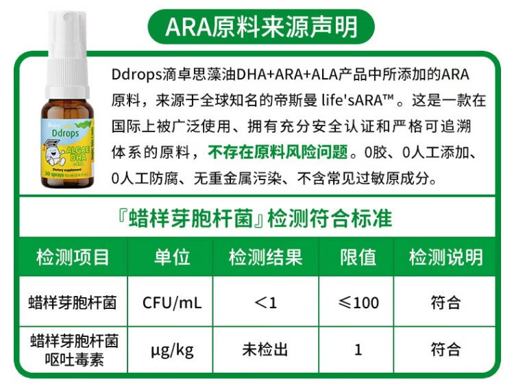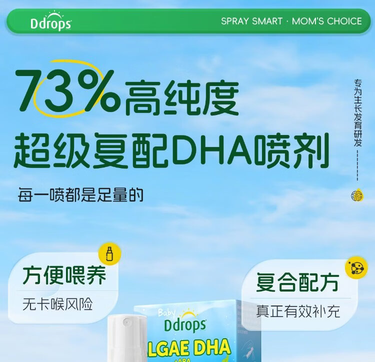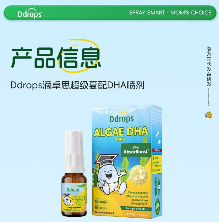 Ddrops DHA+ARA spray does not stick in the throat algae oil dha infants and young children 0-3 years old school children dha algae oil DHA 10.6ml*3 bottles