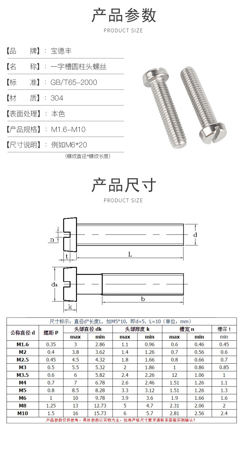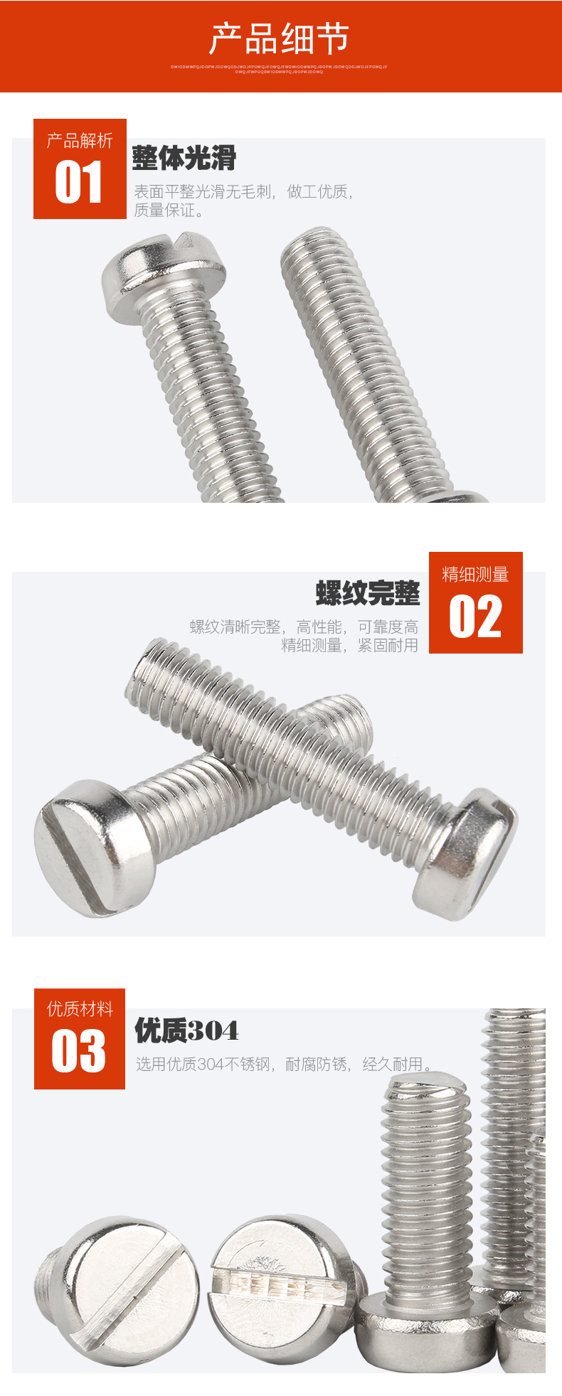 Baodefeng 304 stainless steel slotted cylindrical head screws slotting machine screws round head bolts national standard parts collection M2X5 50 pieces
