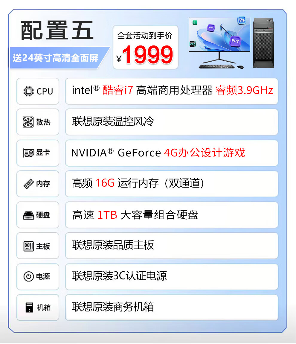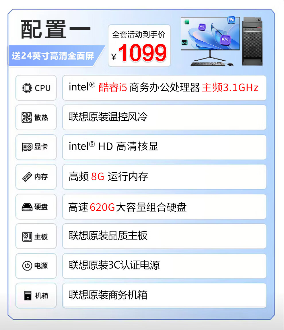 Lenovo (Lenovo) desktop computer host Core i7/i5 independent display business office home design editing complete set of second-hand complete machine 1 Core i5/620G hard drive/learning and entertainment host monitor complete set