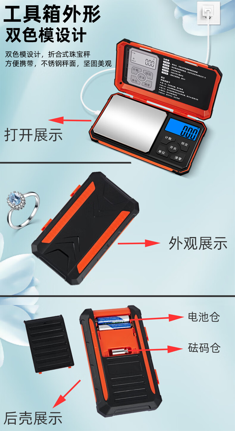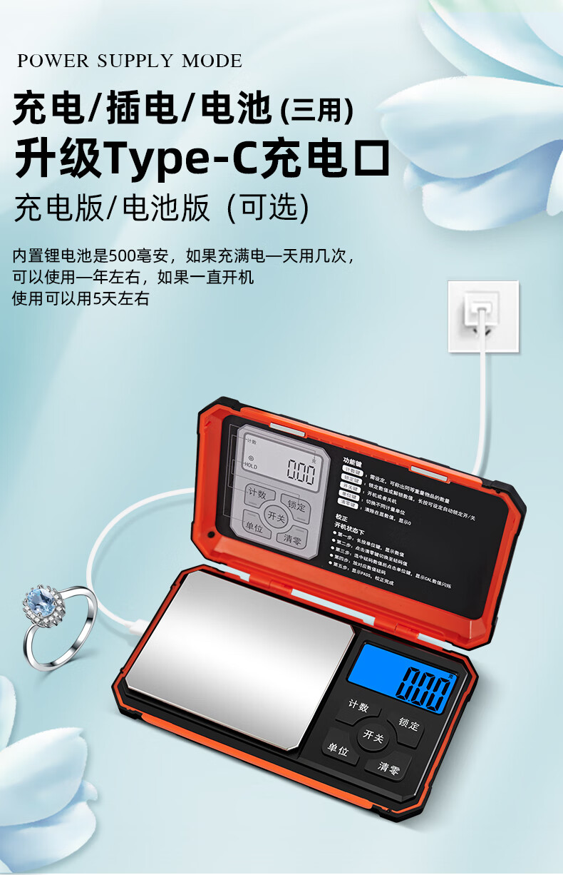 Diheng precision electronic scale household small gram scale high-precision 0.01g gold weighing jewelry mini tea scale balance 500g/0.01g + battery + calibration weight rechargeable three-use version