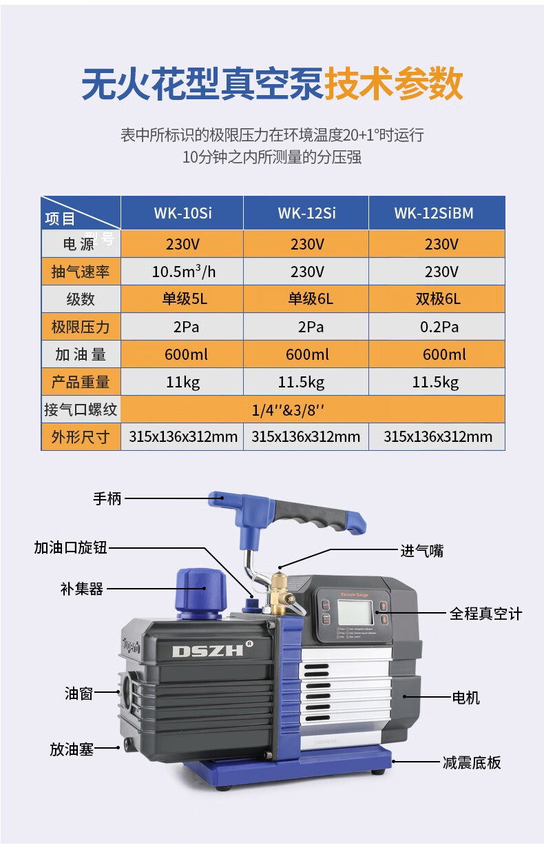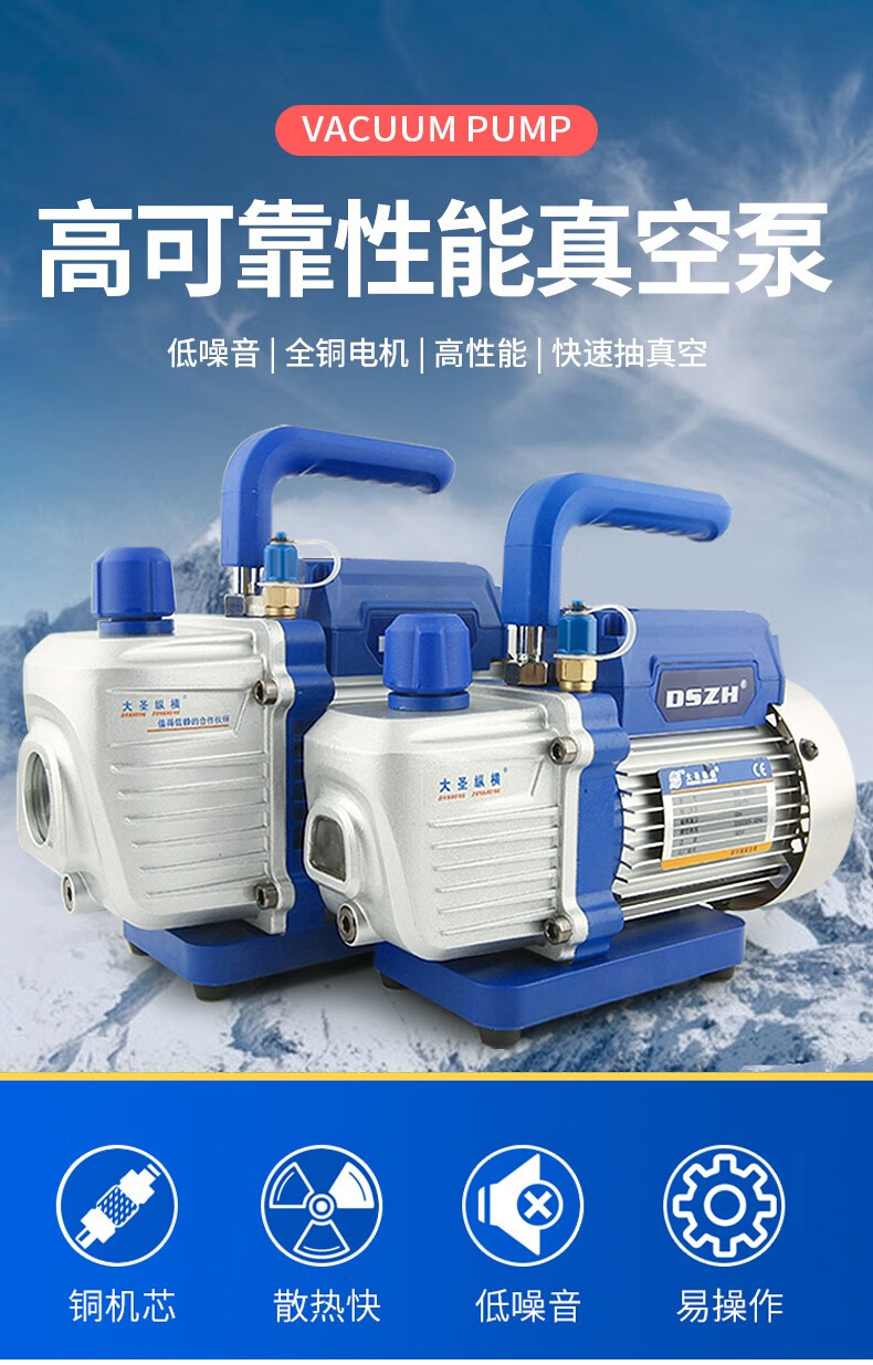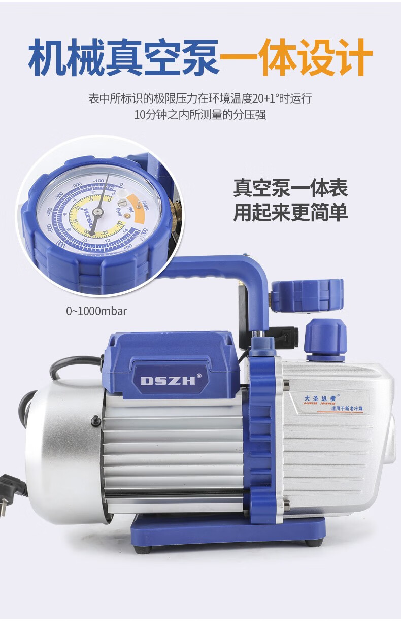 DASHENG ZONGHENG vacuum pump 1/2/3/4 liter mini pump 1N1C refrigerator repair high vacuum air conditioning vacuum pump fluorine meter WK-2S4CSV (4 liter two-stage + meter valve)