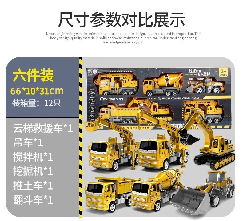 MAIGEMENG children's toy car excavator toy boy engineering vehicle set car 2-3-6 year old baby birthday gift large excavator six-pack 4-5 year old boy 61 Children's Day gift