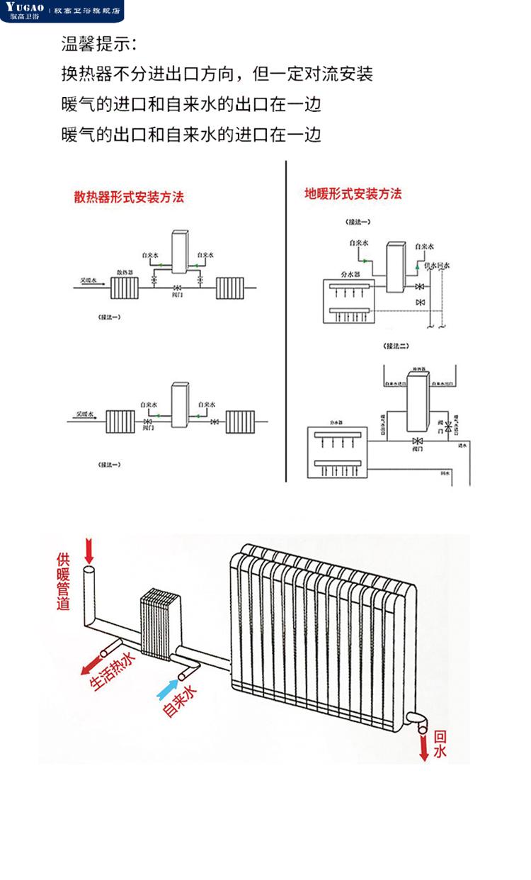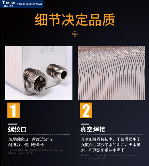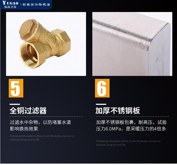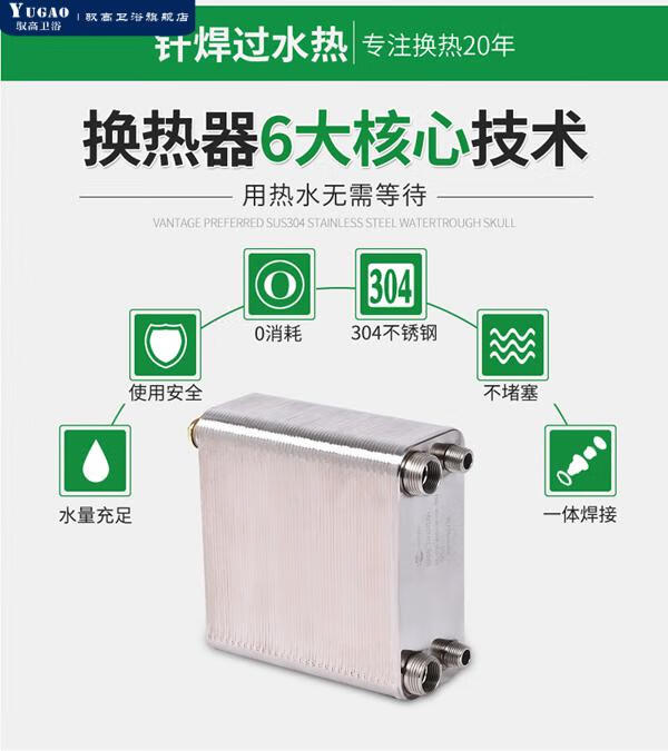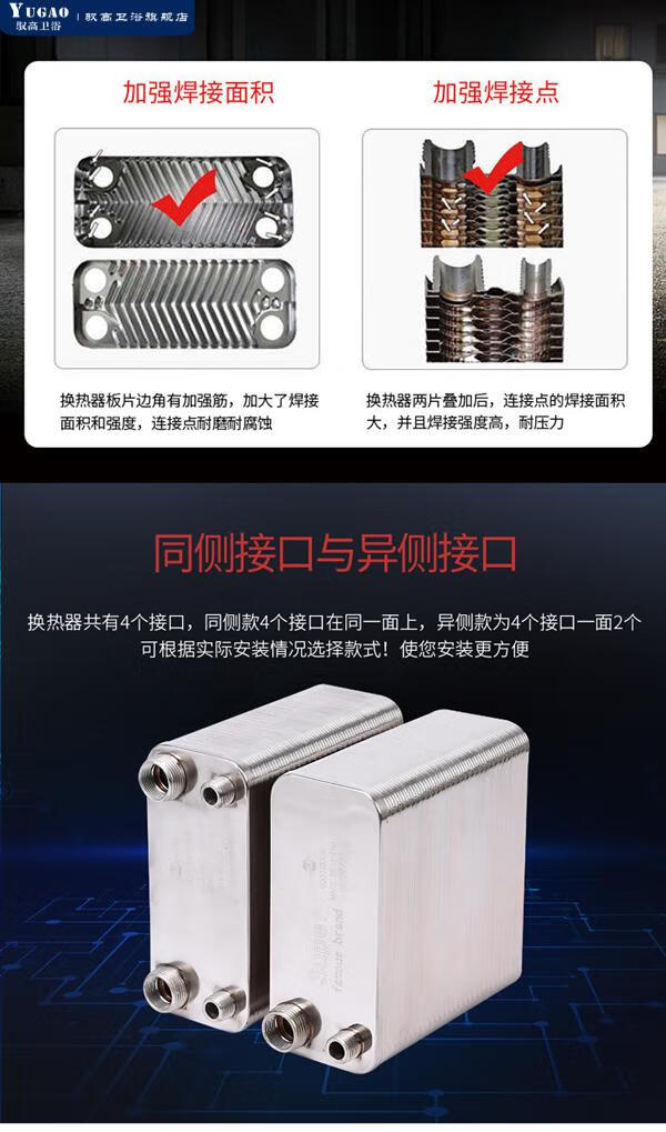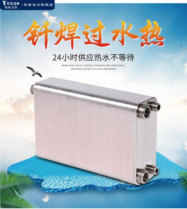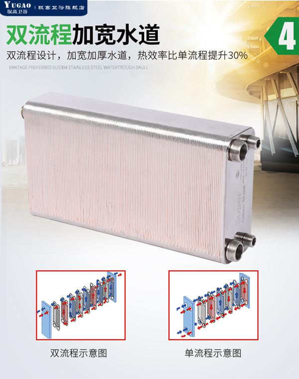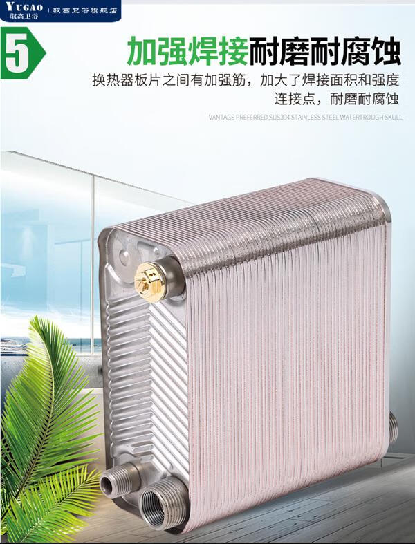 Yugao brazed plate type over-water heat exchanger radiator 304 stainless steel heat exchanger can be used for bathing household and industrial large water channels on the same side of the 50th floor