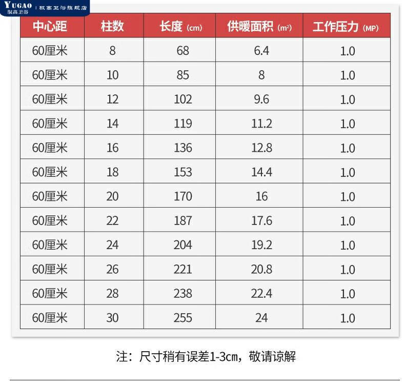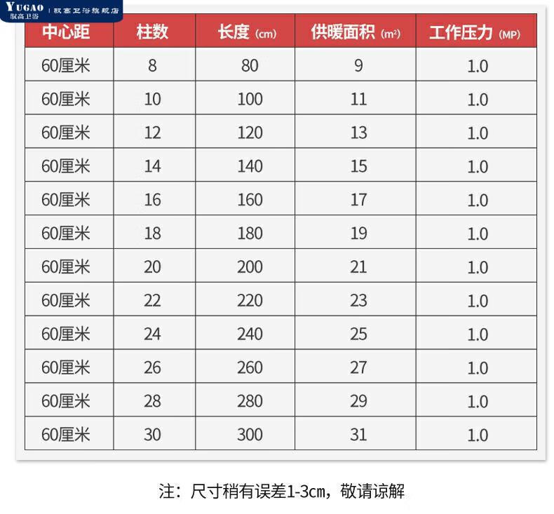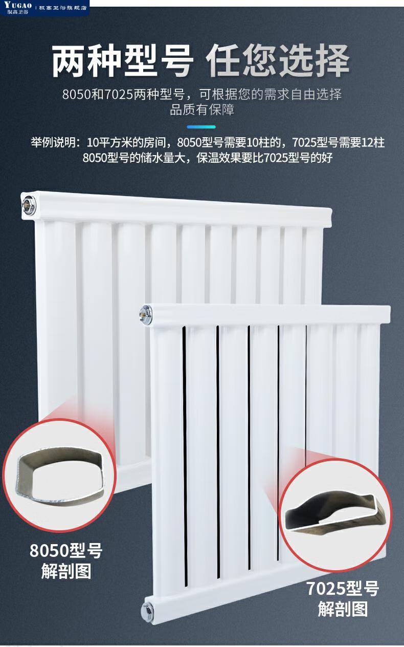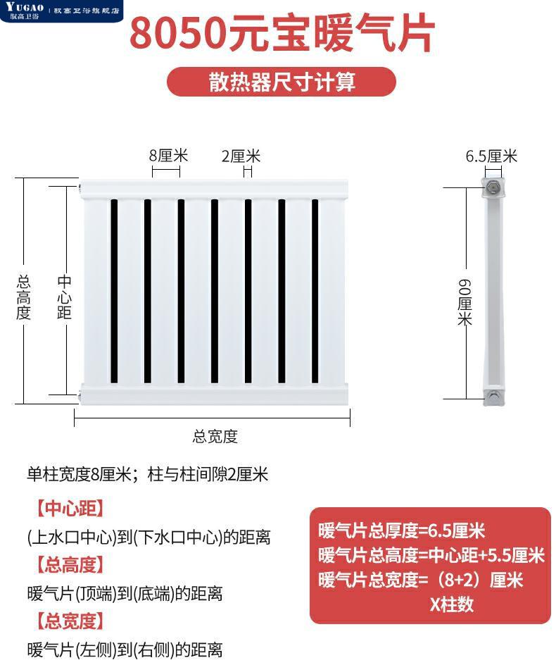 Yugao radiator household water heating thickened coal-to-gas 8050 engineering sheet steel wall-mounted radiator 8050 thickened - center distance 600*6 columns (length 60 cm)