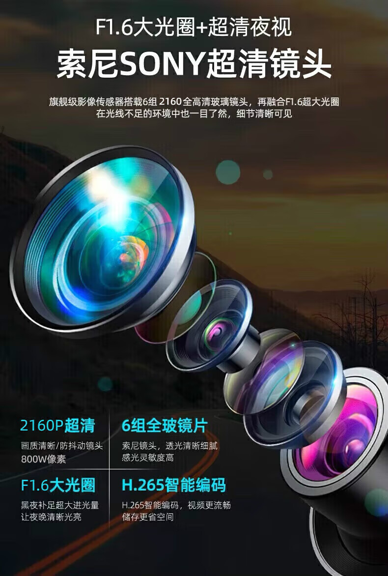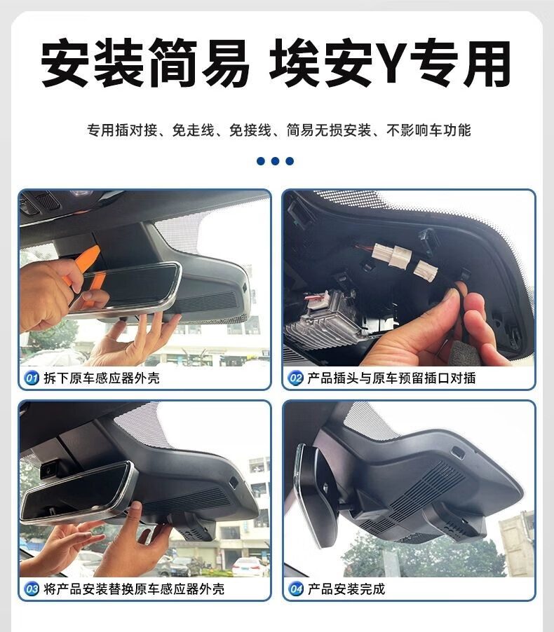 Runhua Year 22-2025 GAC Aian yplus/S/UT/RT/V/LX/Y plus driving recorder dedicated original factory 23-25 Aian Yplus 4K ultra-clear dual lens 2160P+1080P+64G
