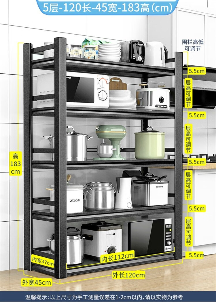 Jingyinuo adjustable between layers carbon steel five-layer fence for kitchen storage floor-standing thickened multi-functional storage shelf carbon steel fence length 120 wide 35 high 160 five-layer whole body