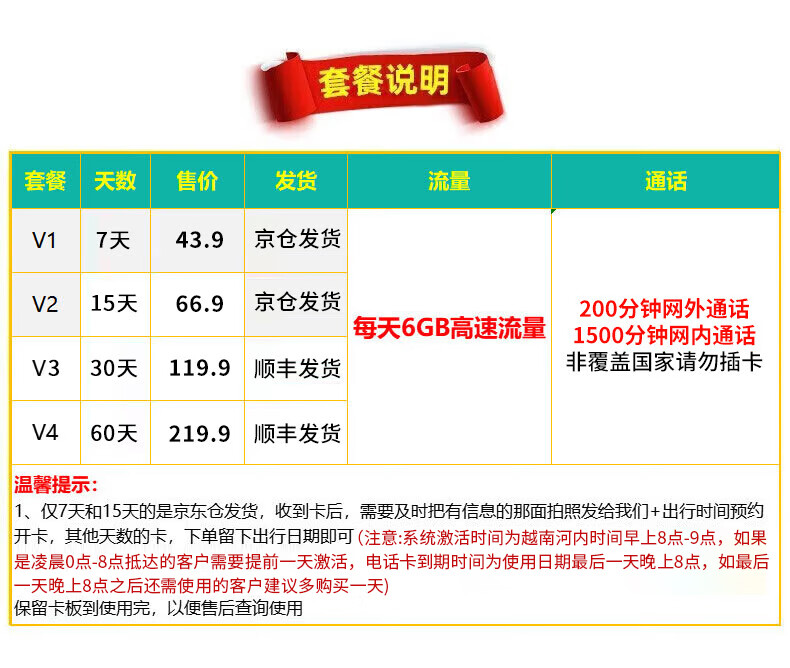 Vietnam phone card 5g mobile Internet card vinaphone Nha Trang Da Nang Hanoi traffic card 15 days per day 6GB high speed (shipped from Jingdong warehouse)