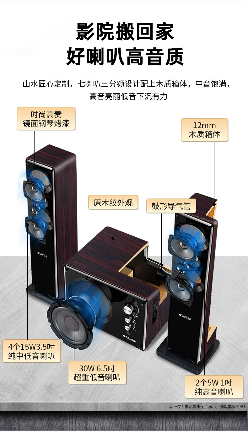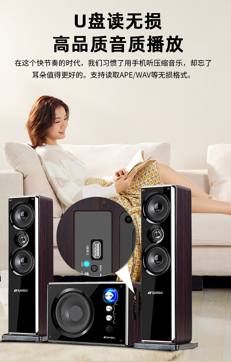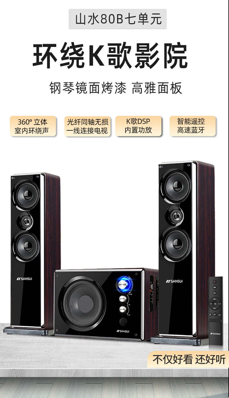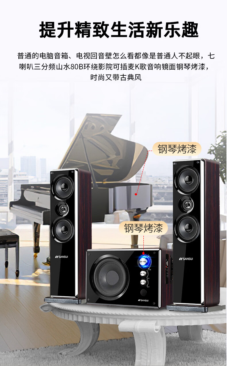SANSUI 80B Home Surround Theater Bluetooth Wooden Audio TV Subwoofer 2.1 Channel Karaoke Living Room Singing Multimedia Desktop Computer Speaker HIFI Sound Quality 80B Newly Upgraded Heightened Secondary Version
