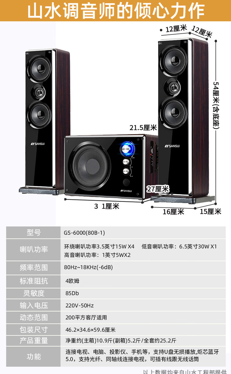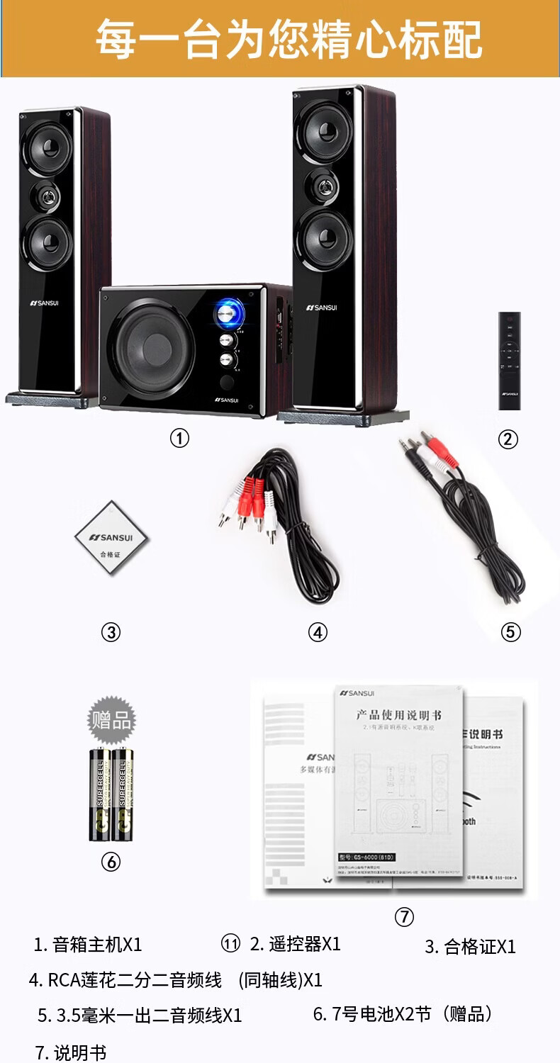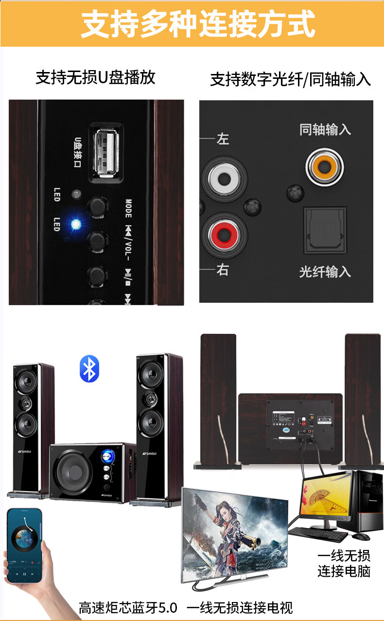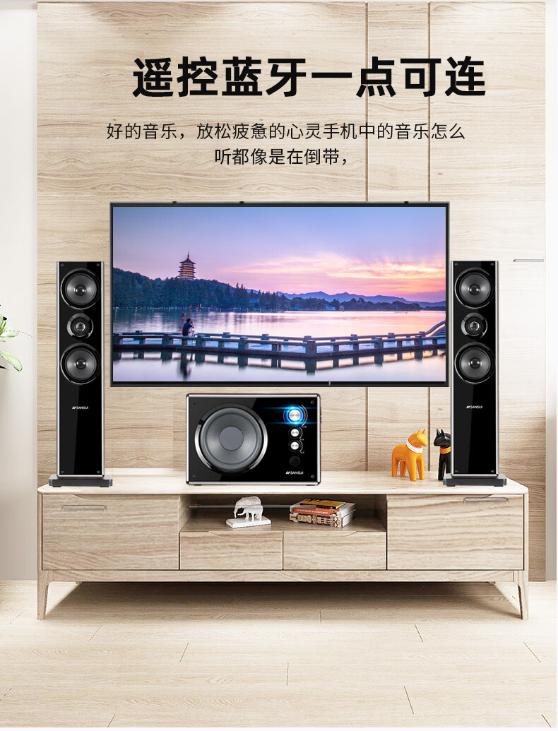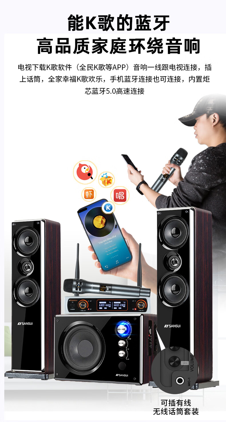 SANSUI 80B Home Surround Theater Bluetooth Wooden Audio TV Subwoofer 2.1 Channel Karaoke Living Room Singing Multimedia Desktop Computer Speaker HIFI Sound Quality 80B Newly Upgraded Heightened Secondary Version