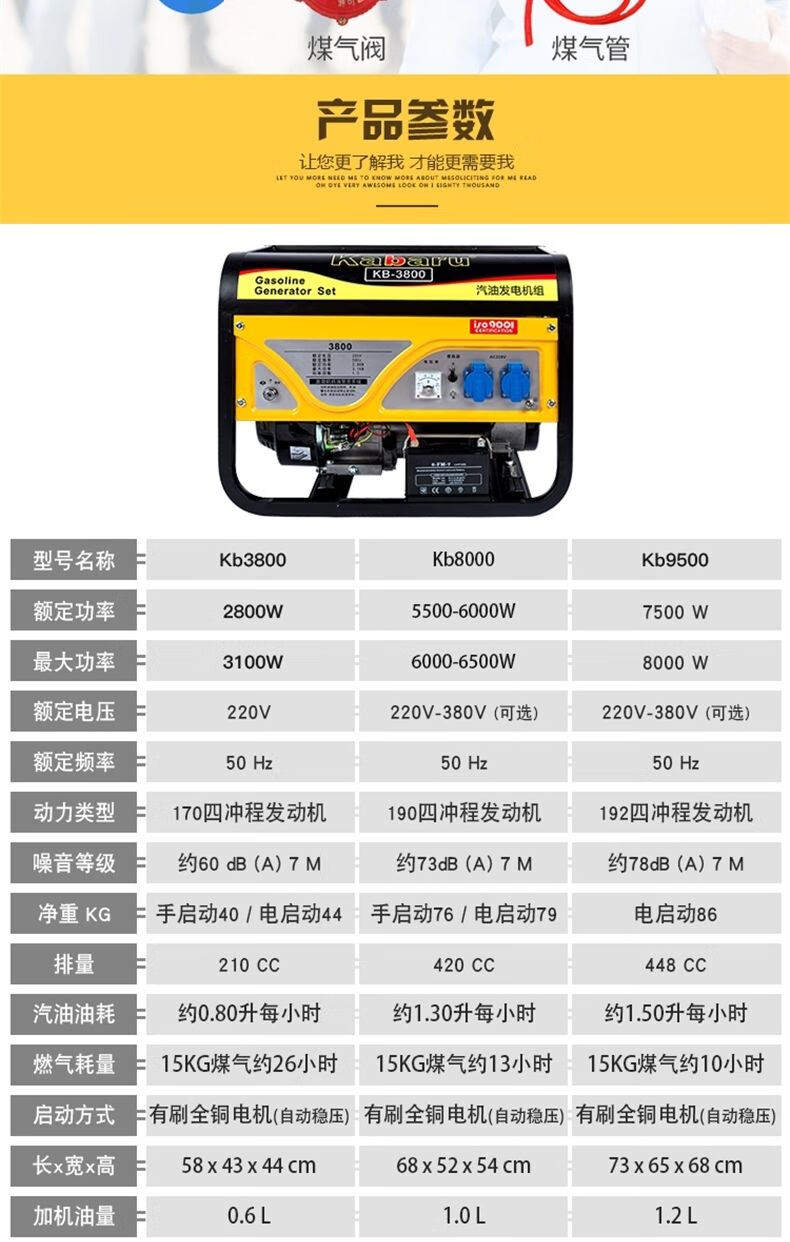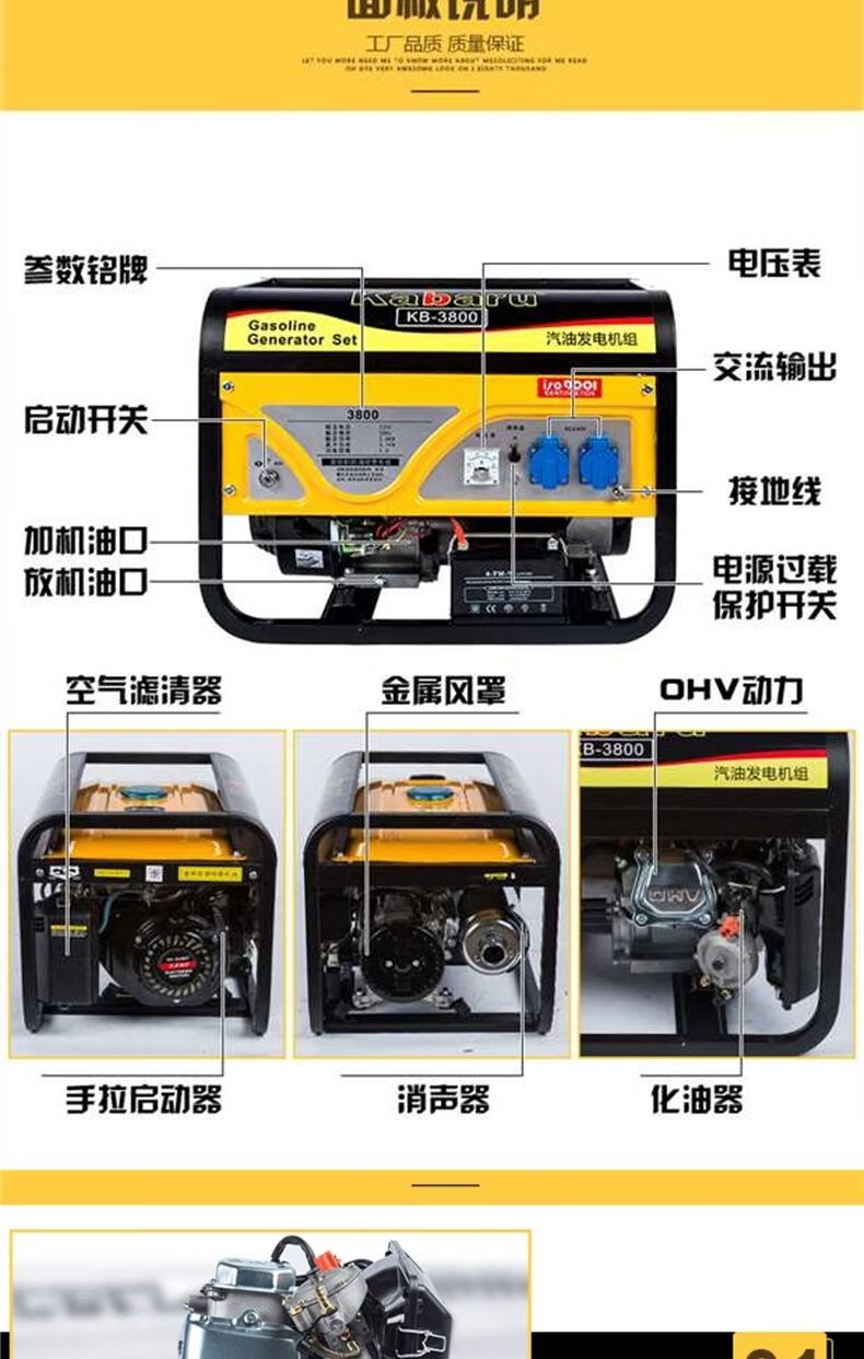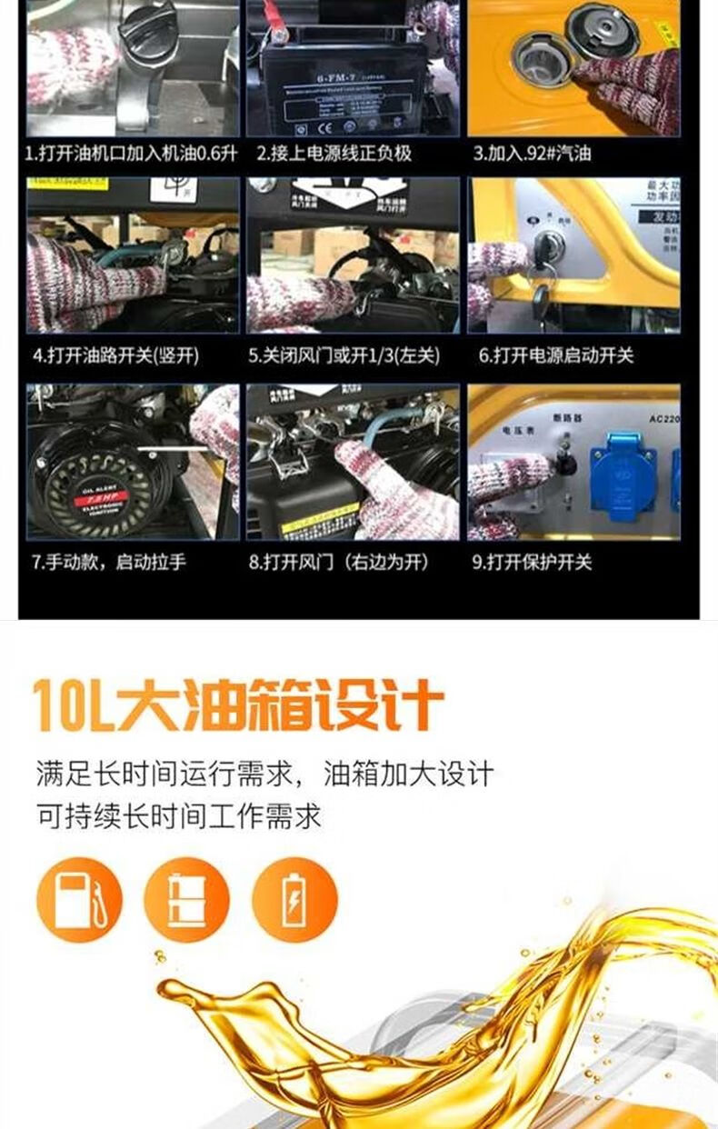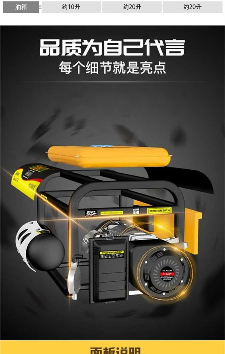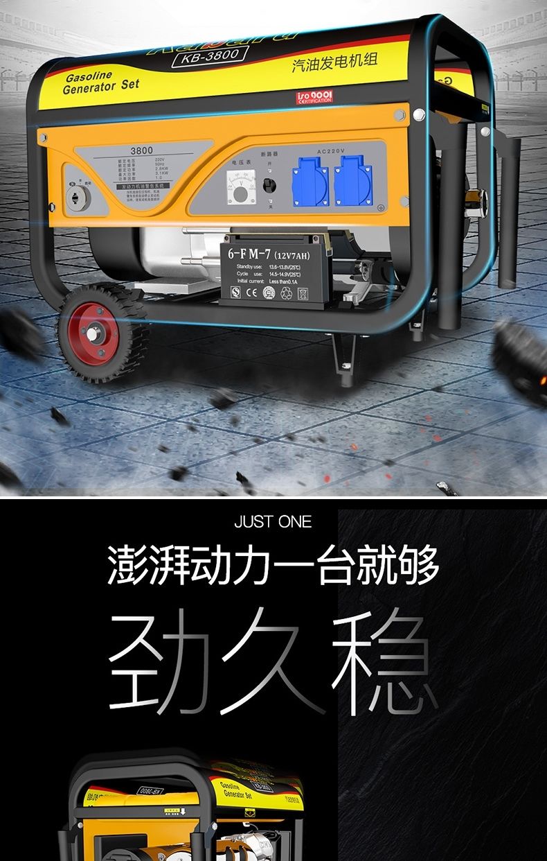 Gasoline generator 220V small 380V three-phase 3000W mini outdoor household 5/6/8KW portable 650w hand start + burning gasoline 220V