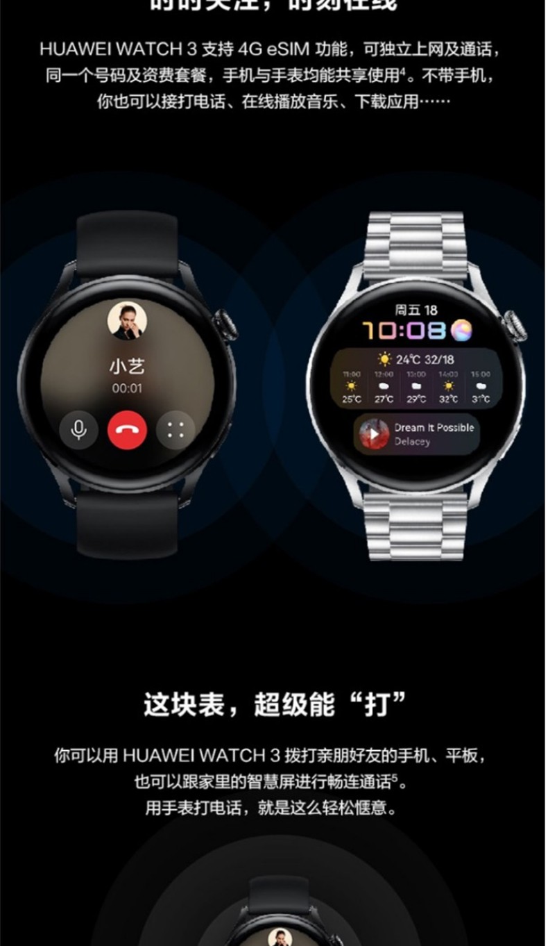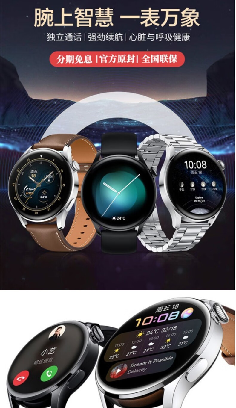 Huawei (HUAWEI) Goddess Intimate Gift Huawei Watch Women's Watch 3 Independent Calls and Free Calls eSIM Business Sports 4 Intelligent Adult Sleep Blood Sugar Access Control Independent Call Watch3 Fashion Nylon Blue-Shadan Yingyu Pink Leather Strap