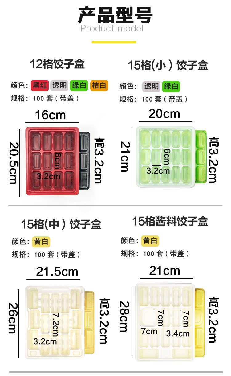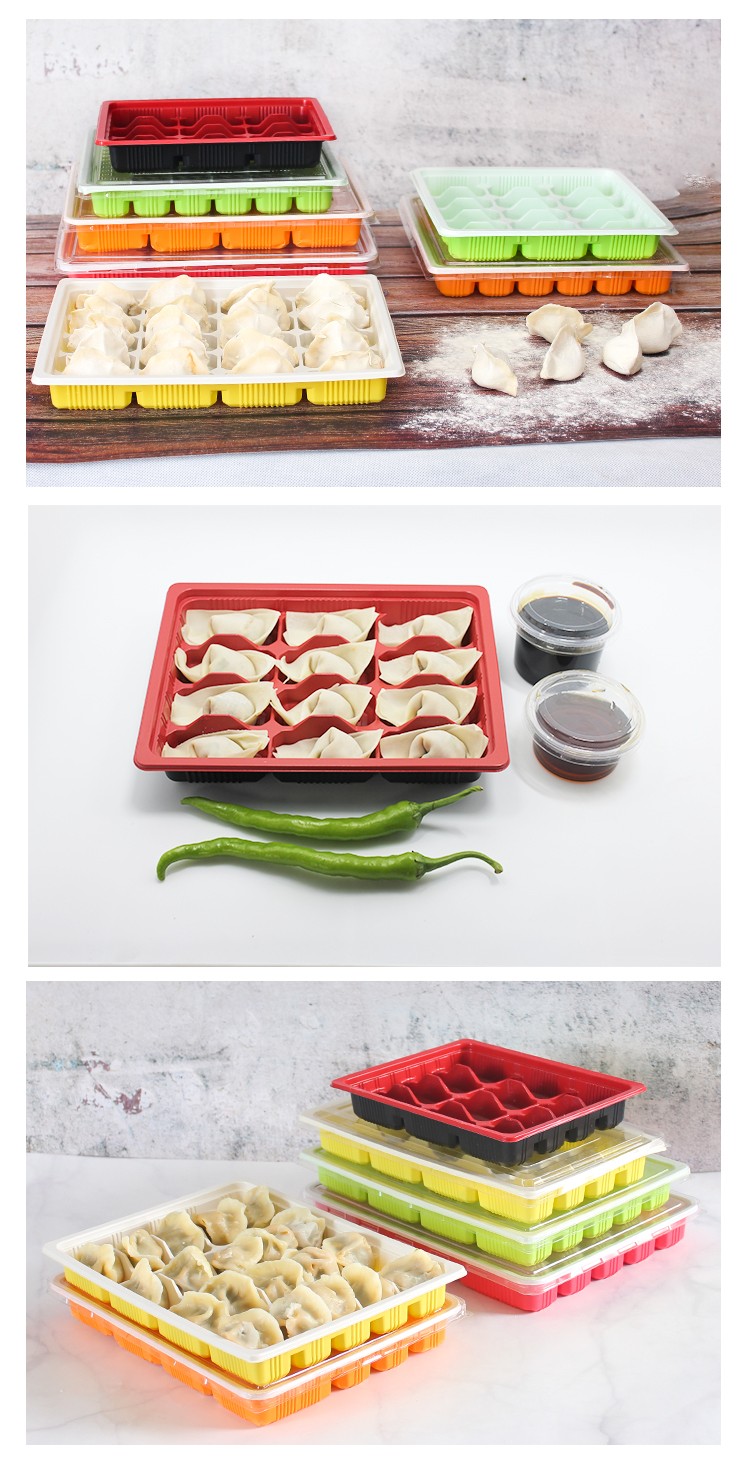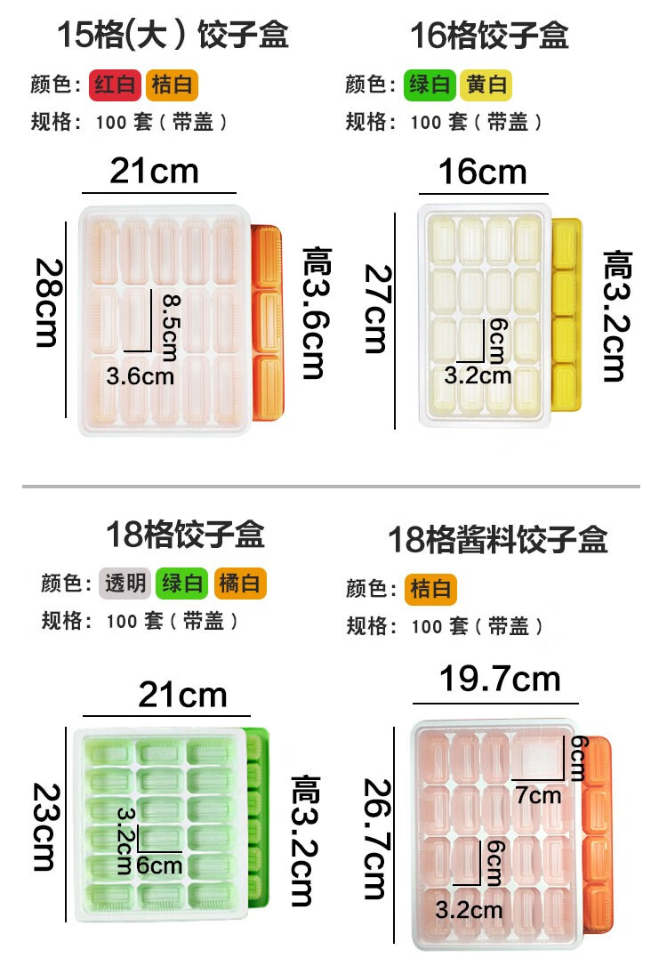 Baidilai disposable dumpling box, take-out meal box, commercial frozen dumpling plastic box, fast food packaging box, 20 grids with lid, orange and white, 18 grids, orange and white with lid, 10 sets