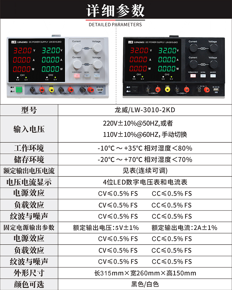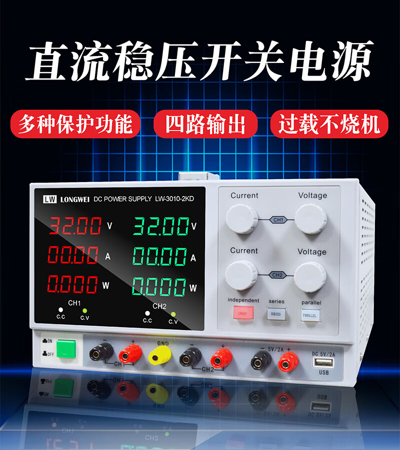 Longwei LW1001-2KD high-power experimental test switching power supply 100V1A adjustable factory repair DC regulated power supply 100V1A dual output LED display