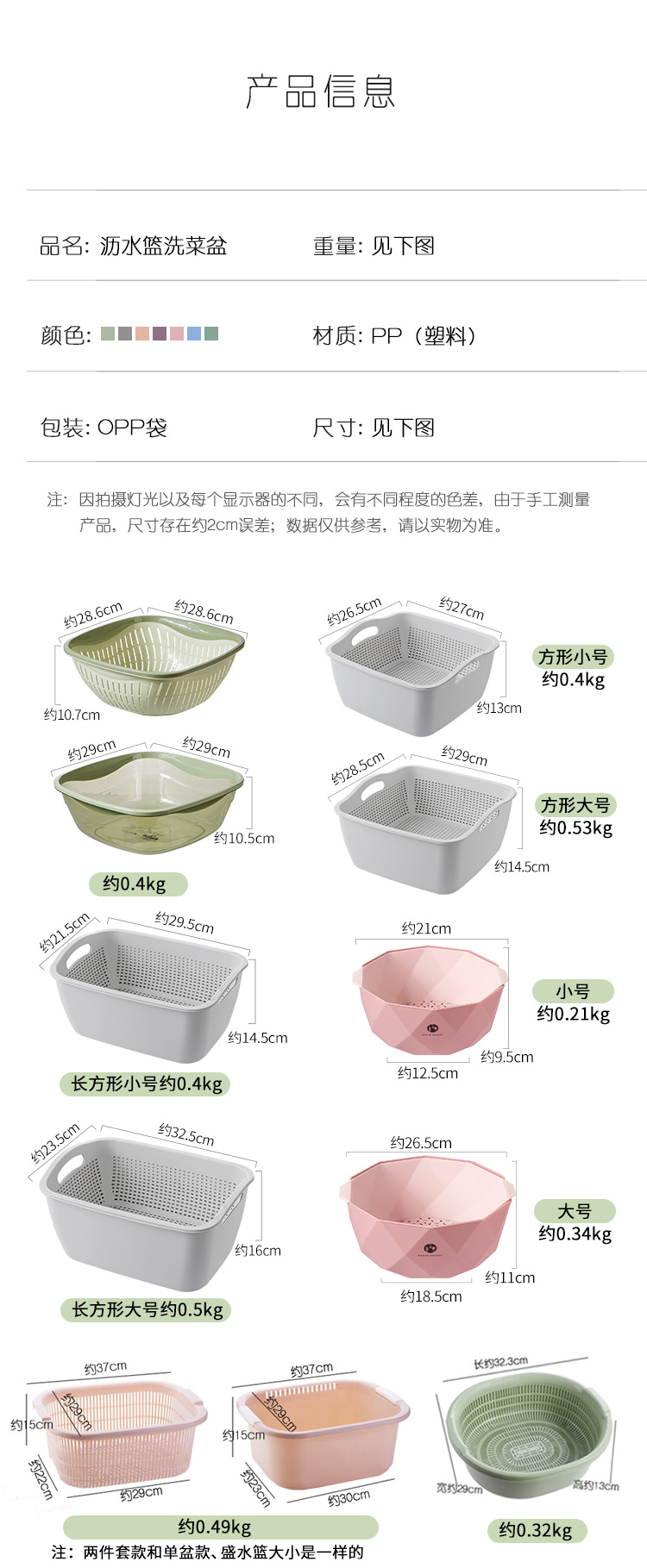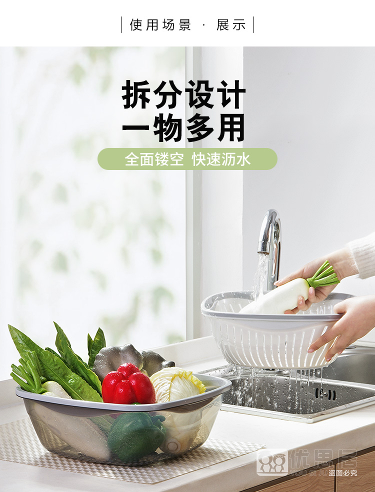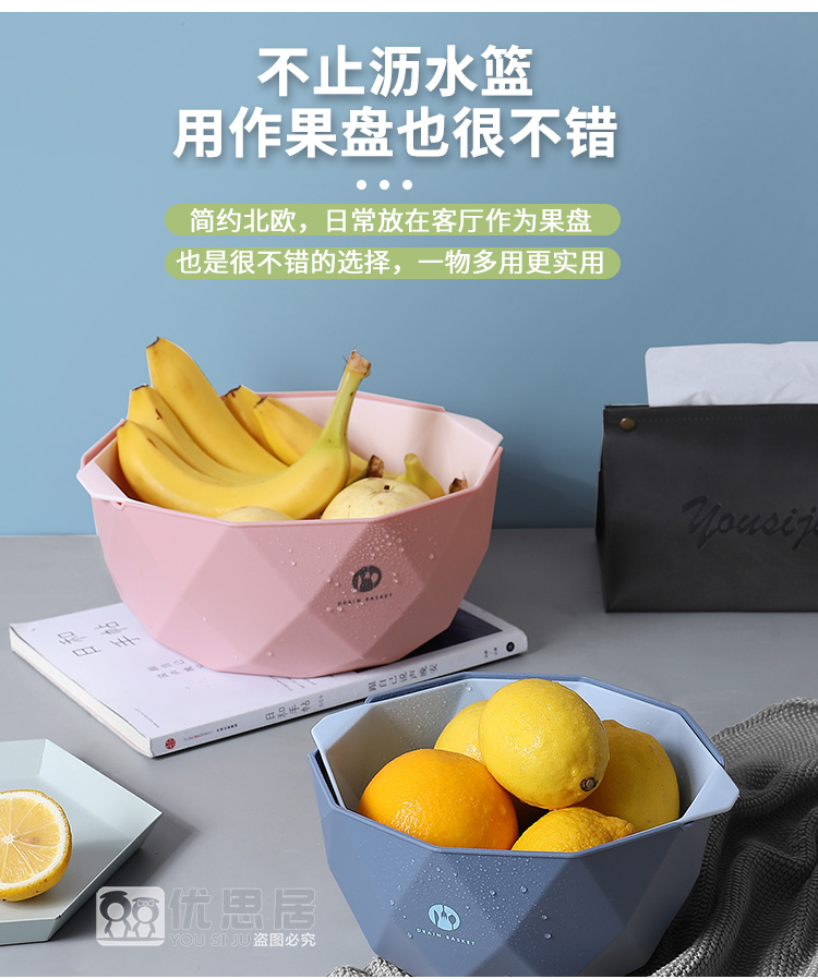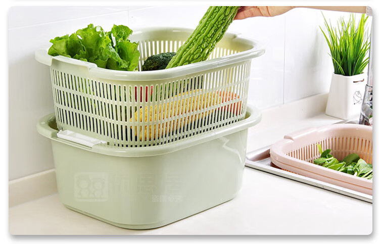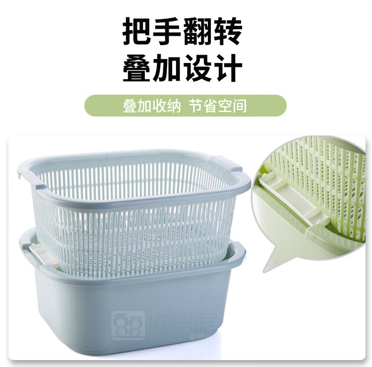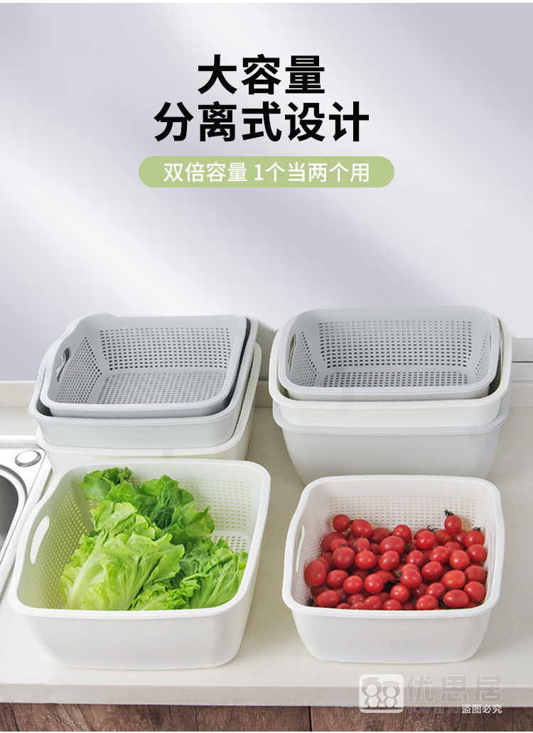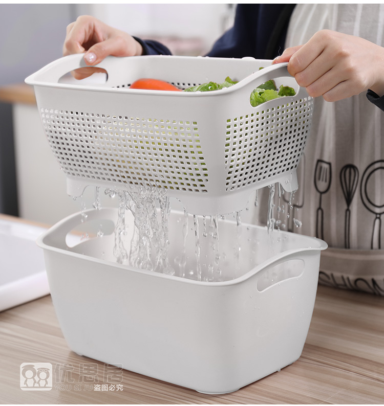 Fruit washing basin transparent double layer sink drain basket home kitchen vegetable fruit plate vegetable basket fruit basket washing vegetable basket rectangular large gray (set of 2)