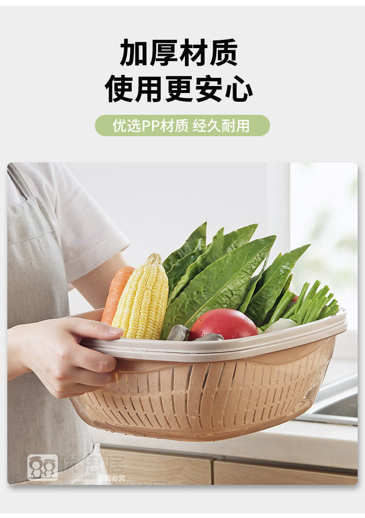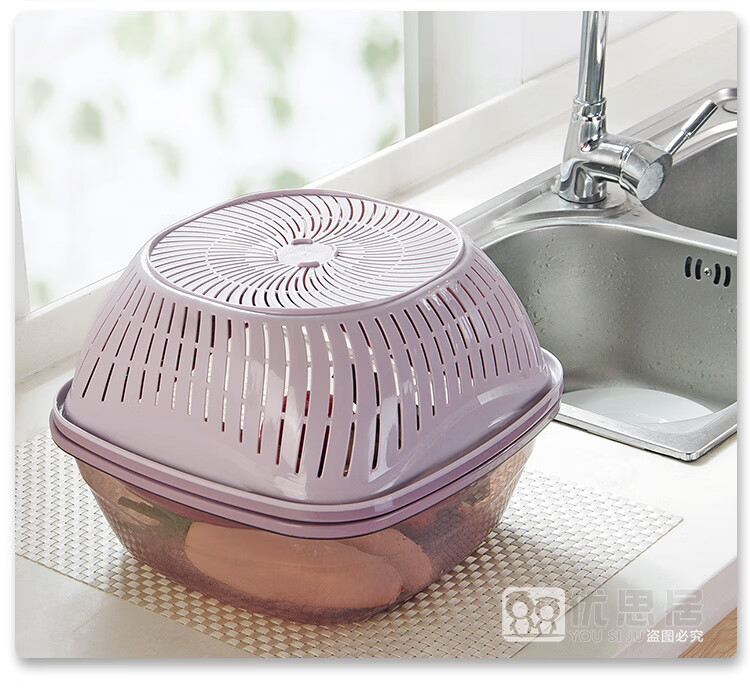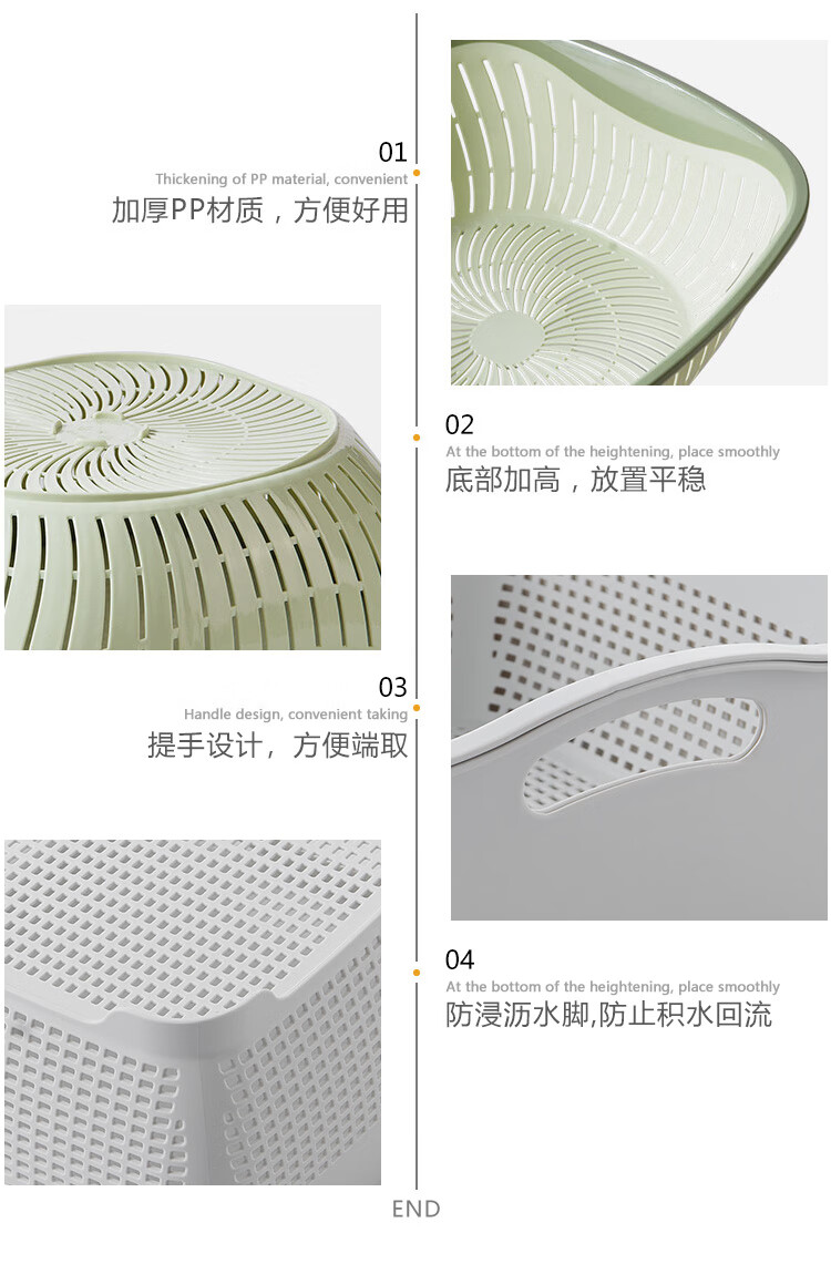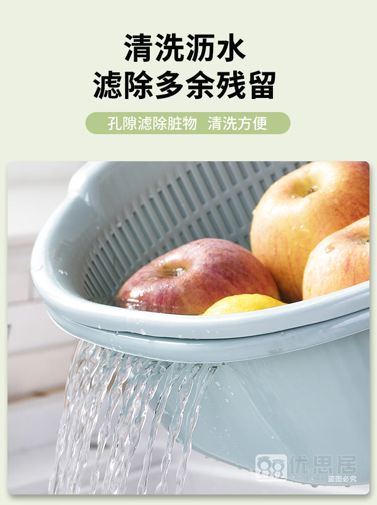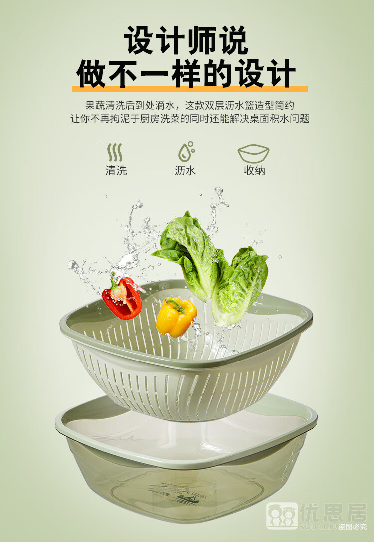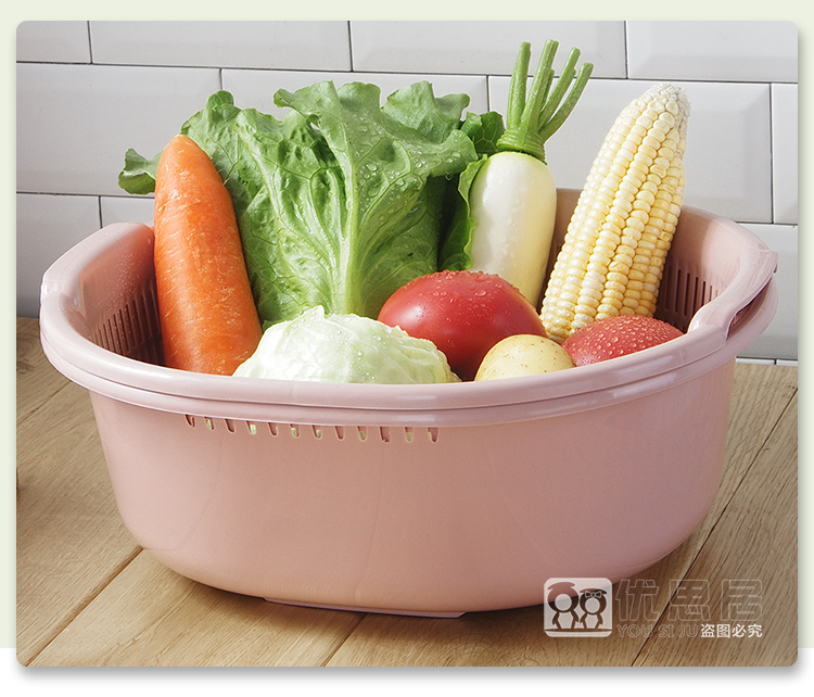 Fruit washing basin transparent double layer sink drain basket home kitchen vegetable fruit plate vegetable basket fruit basket washing vegetable basket rectangular large gray (set of 2)