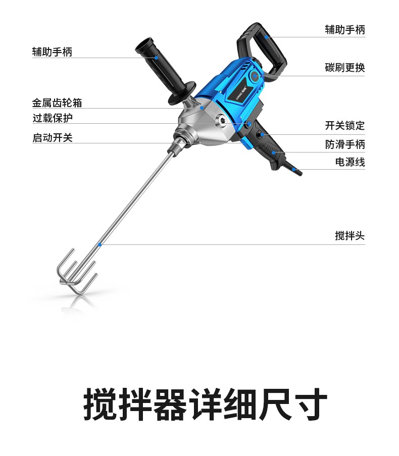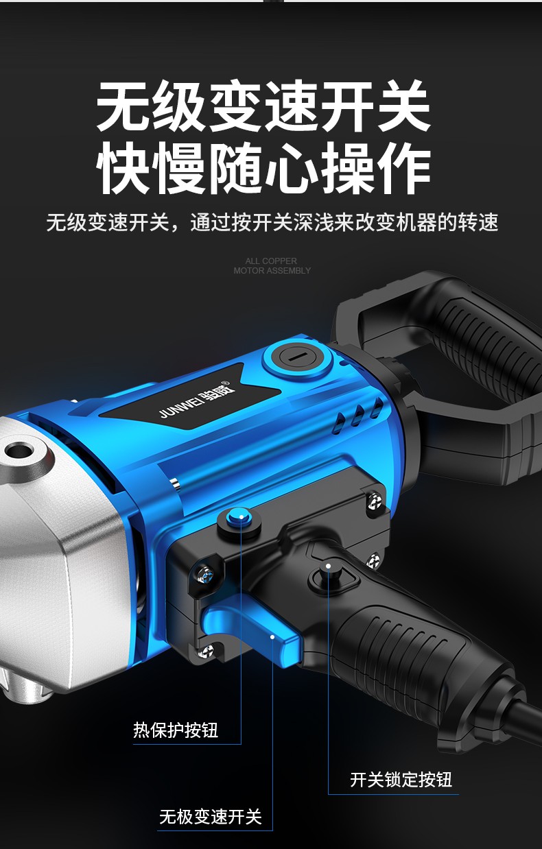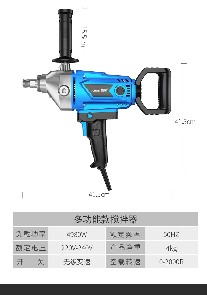 Junwei rhinestone mixer putty powder paint aircraft drill cement mortar duster multifunctional stepless speed 4980W supreme selection version rhinestone mixer