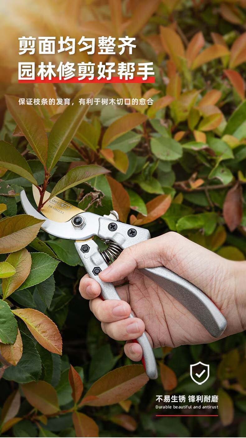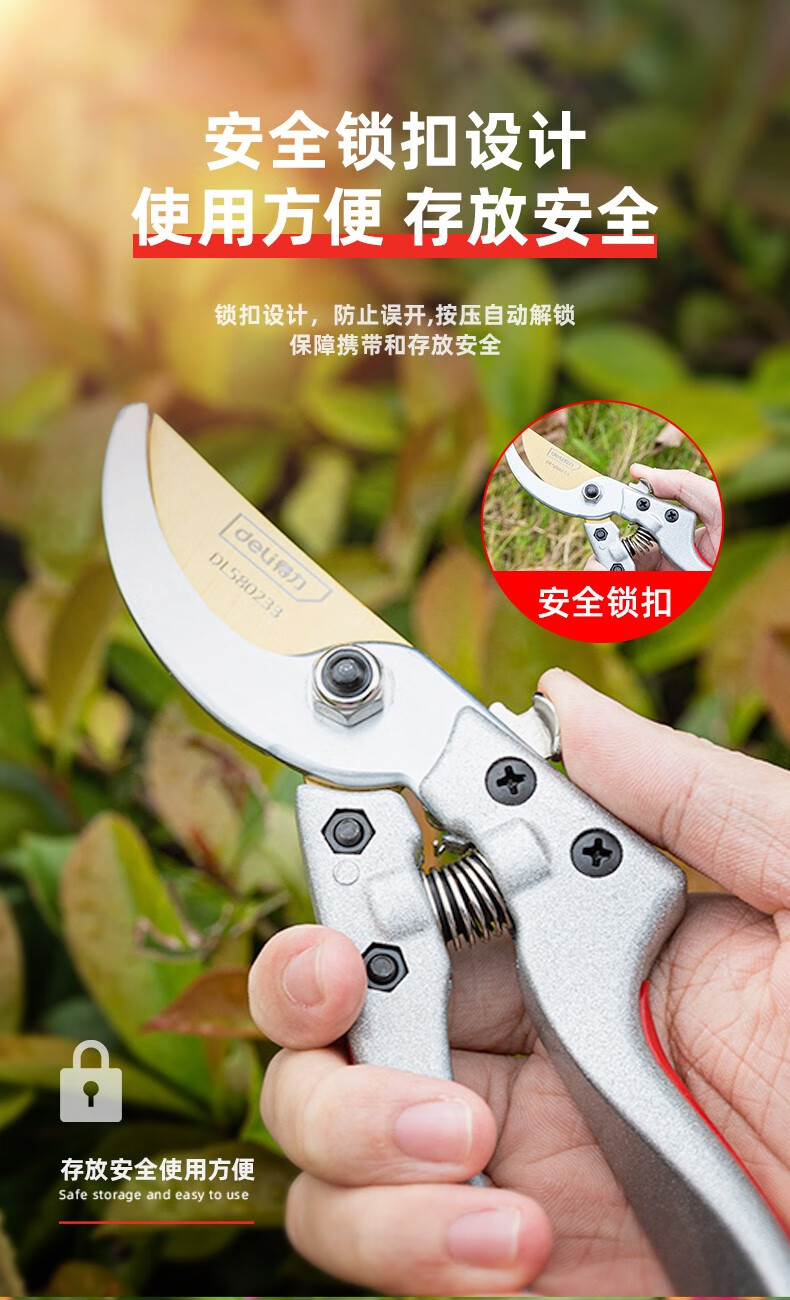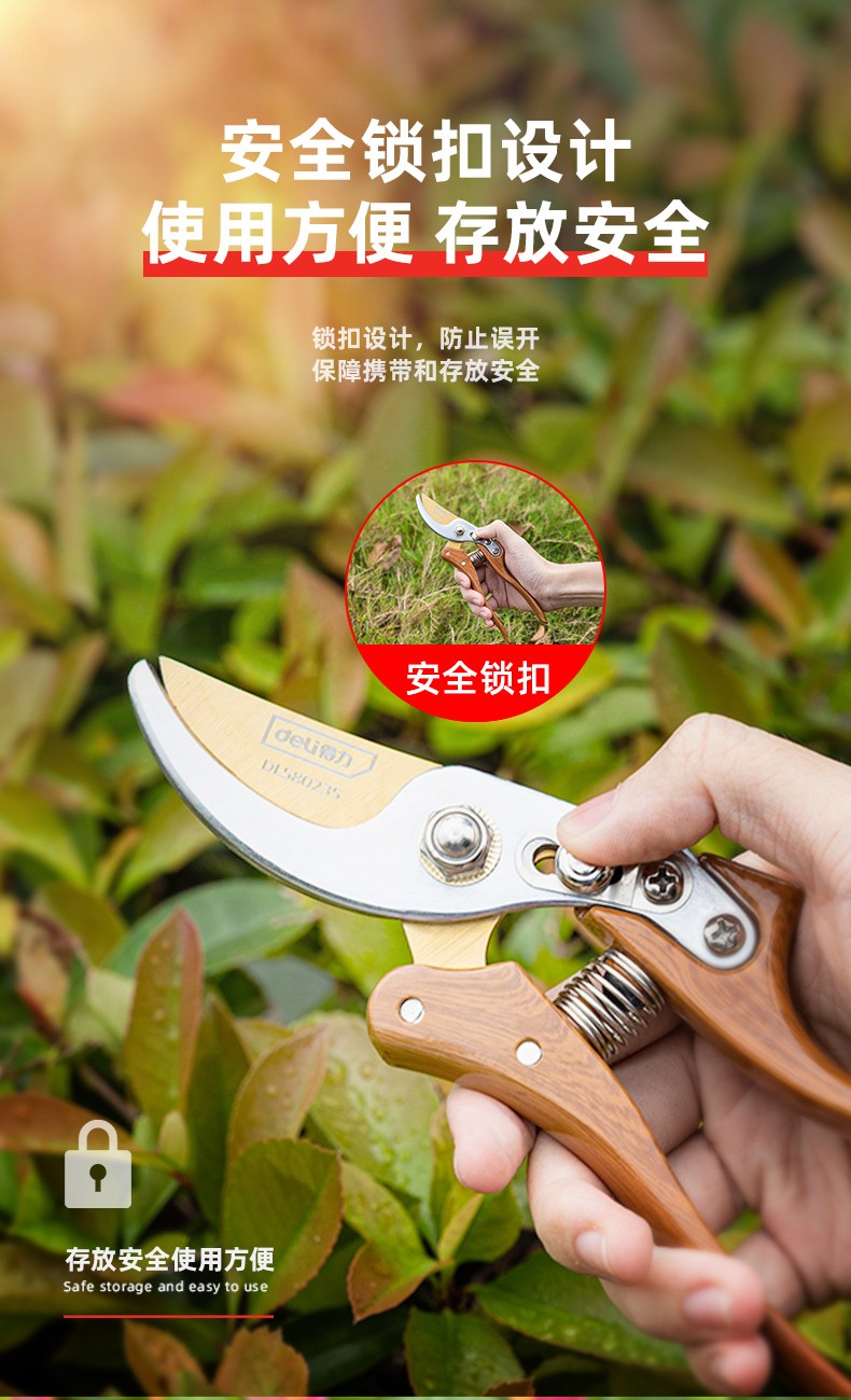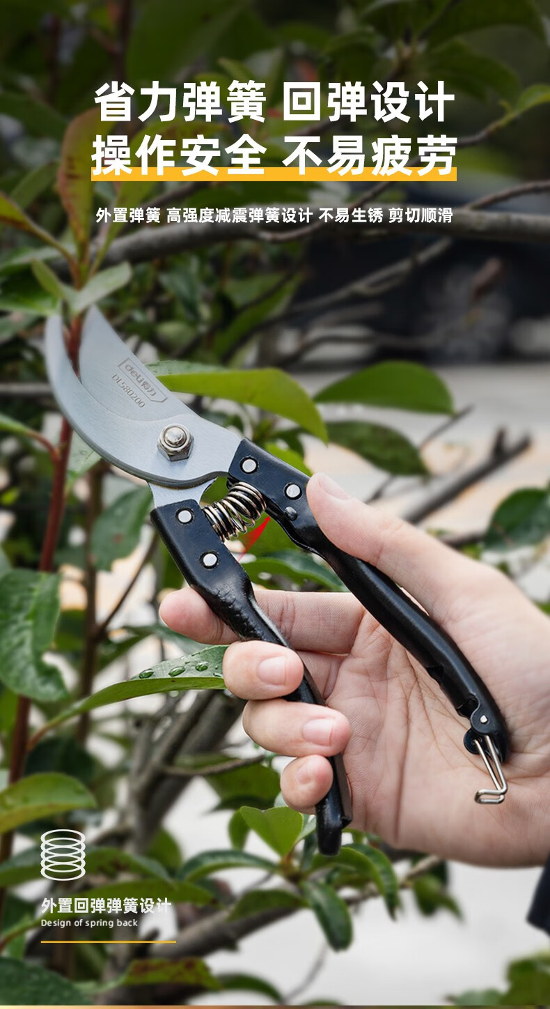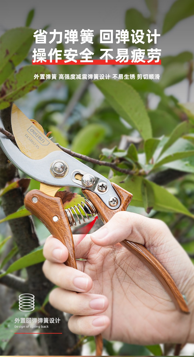 Deli pruning shears, professional fruit farmers, garden scissors, branch scissors, fruit branch pruners, thick branches, flowers, powerful 8-inch pruning shears DL580200