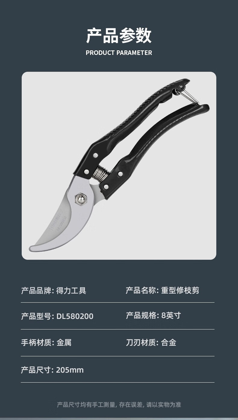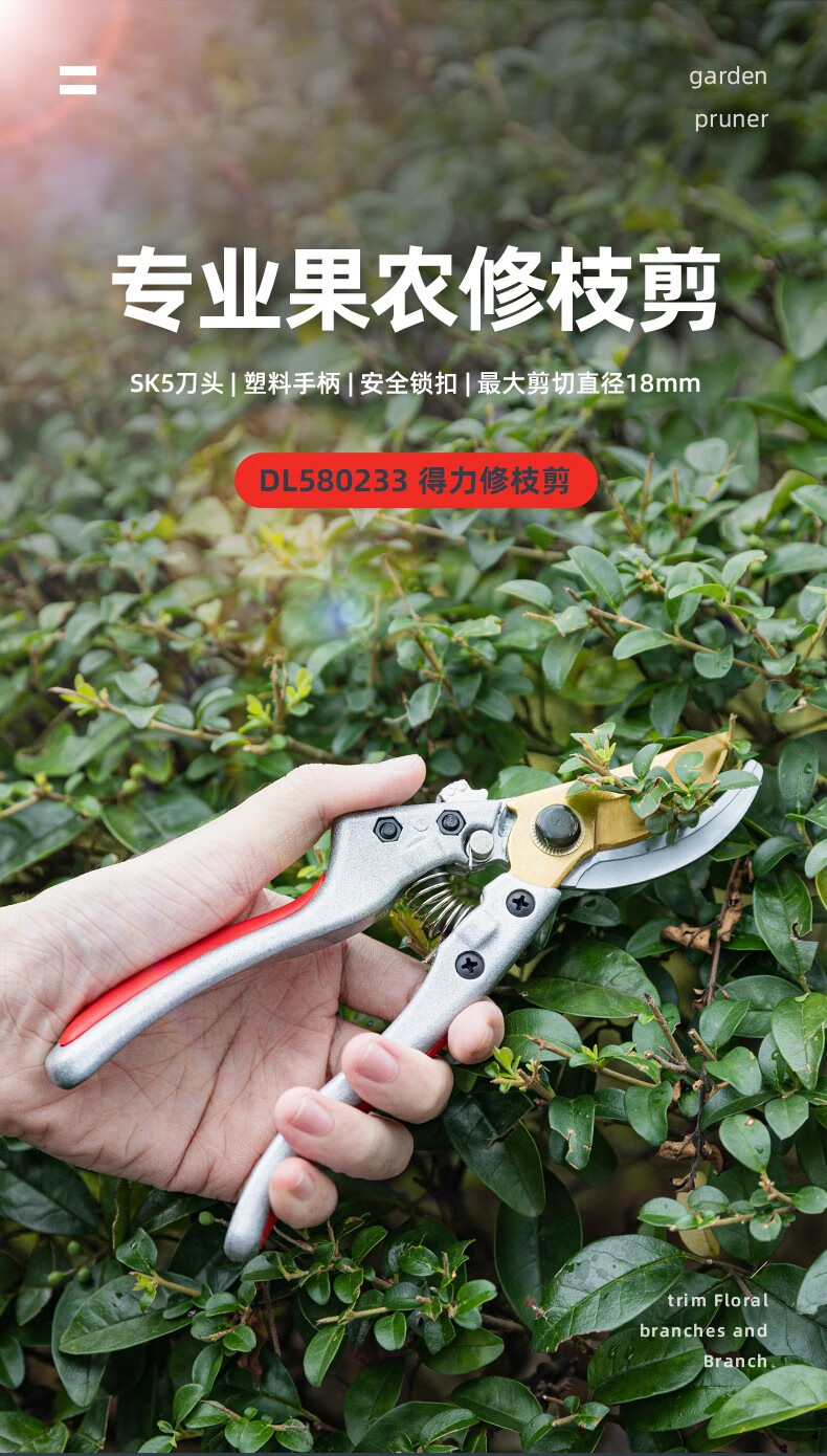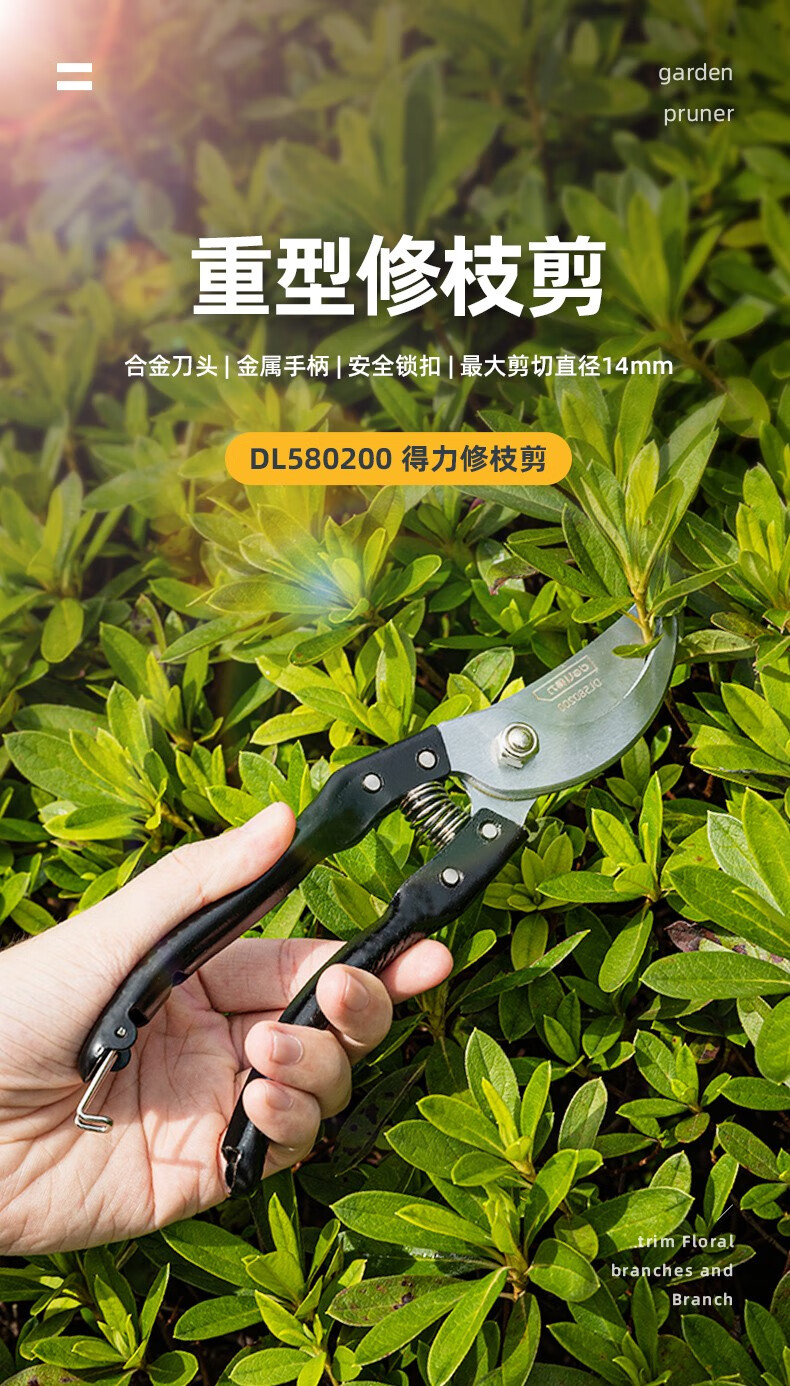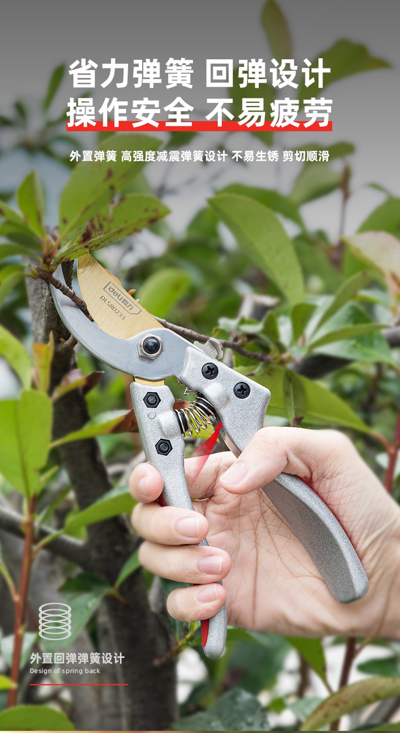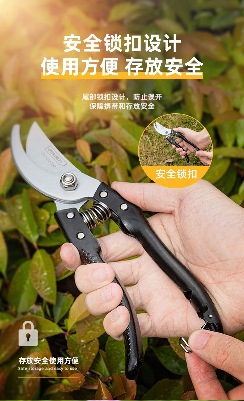 Deli pruning shears, professional fruit farmers, garden scissors, branch scissors, fruit branch pruners, thick branches, flowers, powerful 8-inch pruning shears DL580200