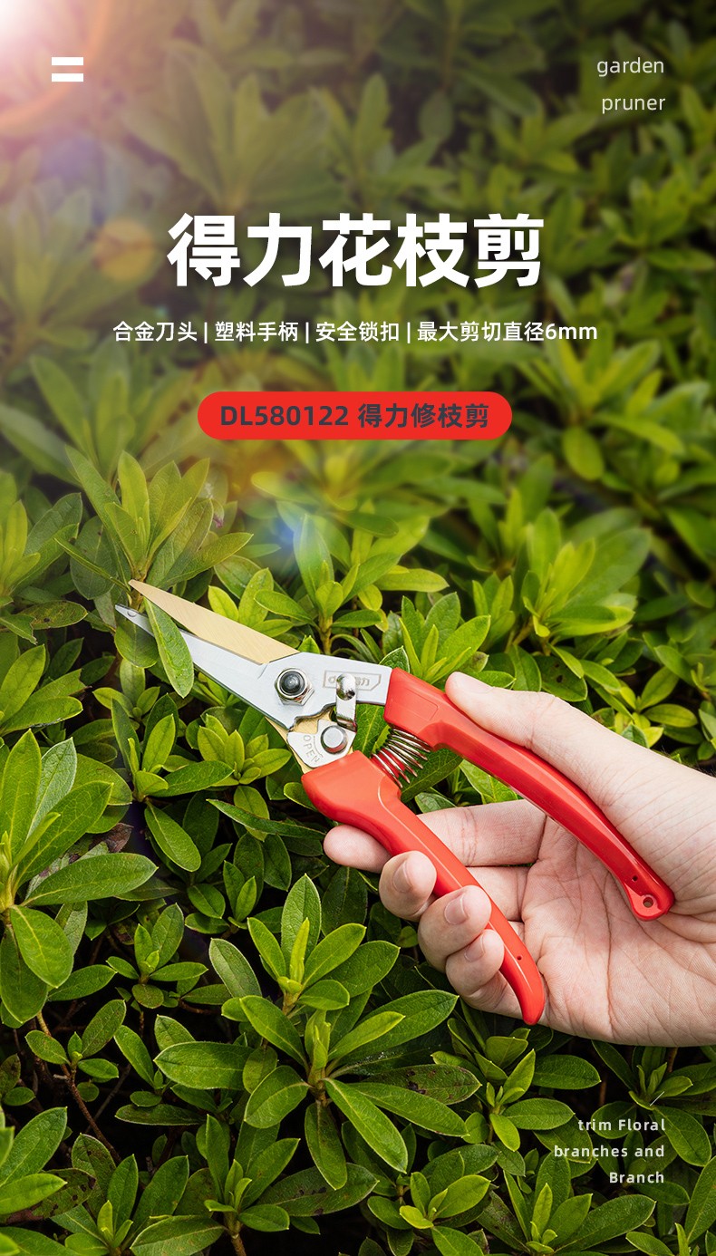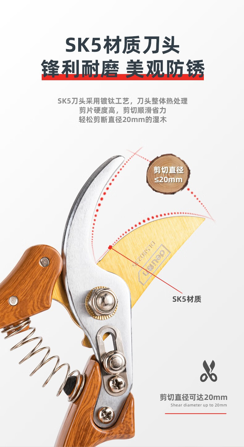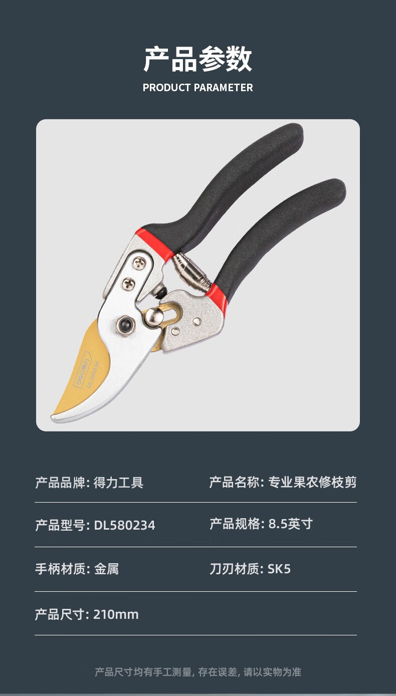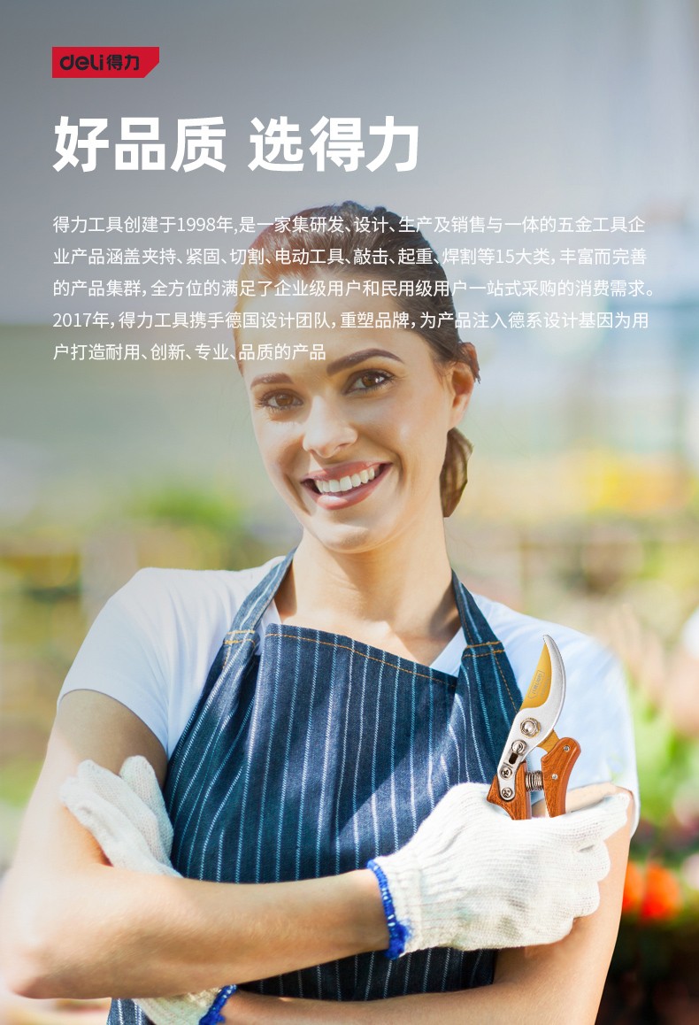 Deli pruning shears, professional fruit farmers, garden scissors, branch scissors, fruit branch pruners, thick branches, flowers, powerful 8-inch pruning shears DL580200