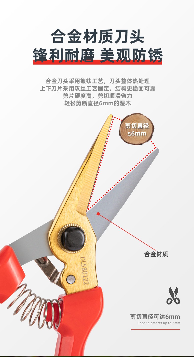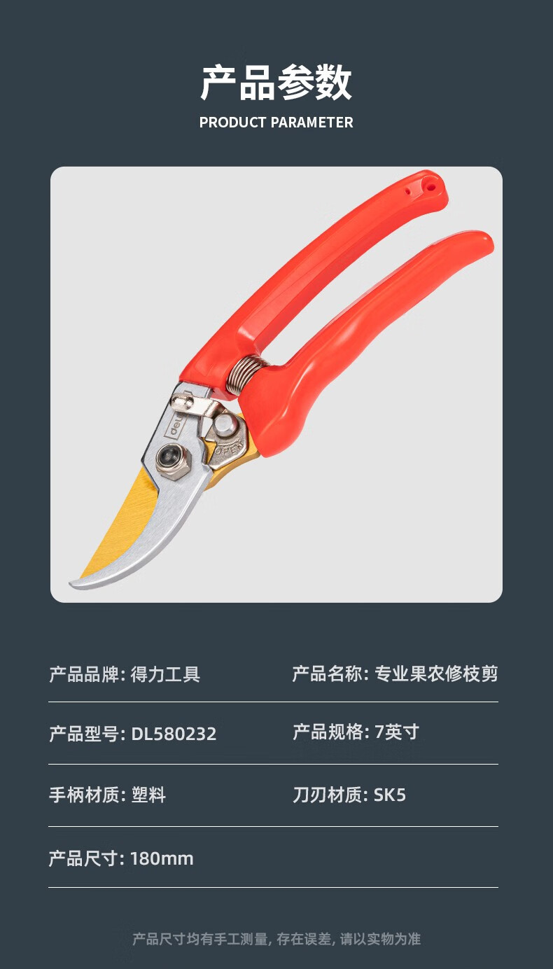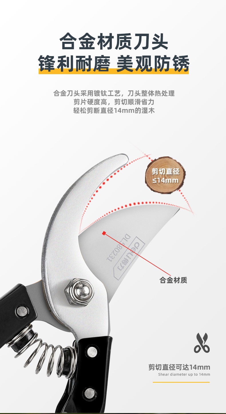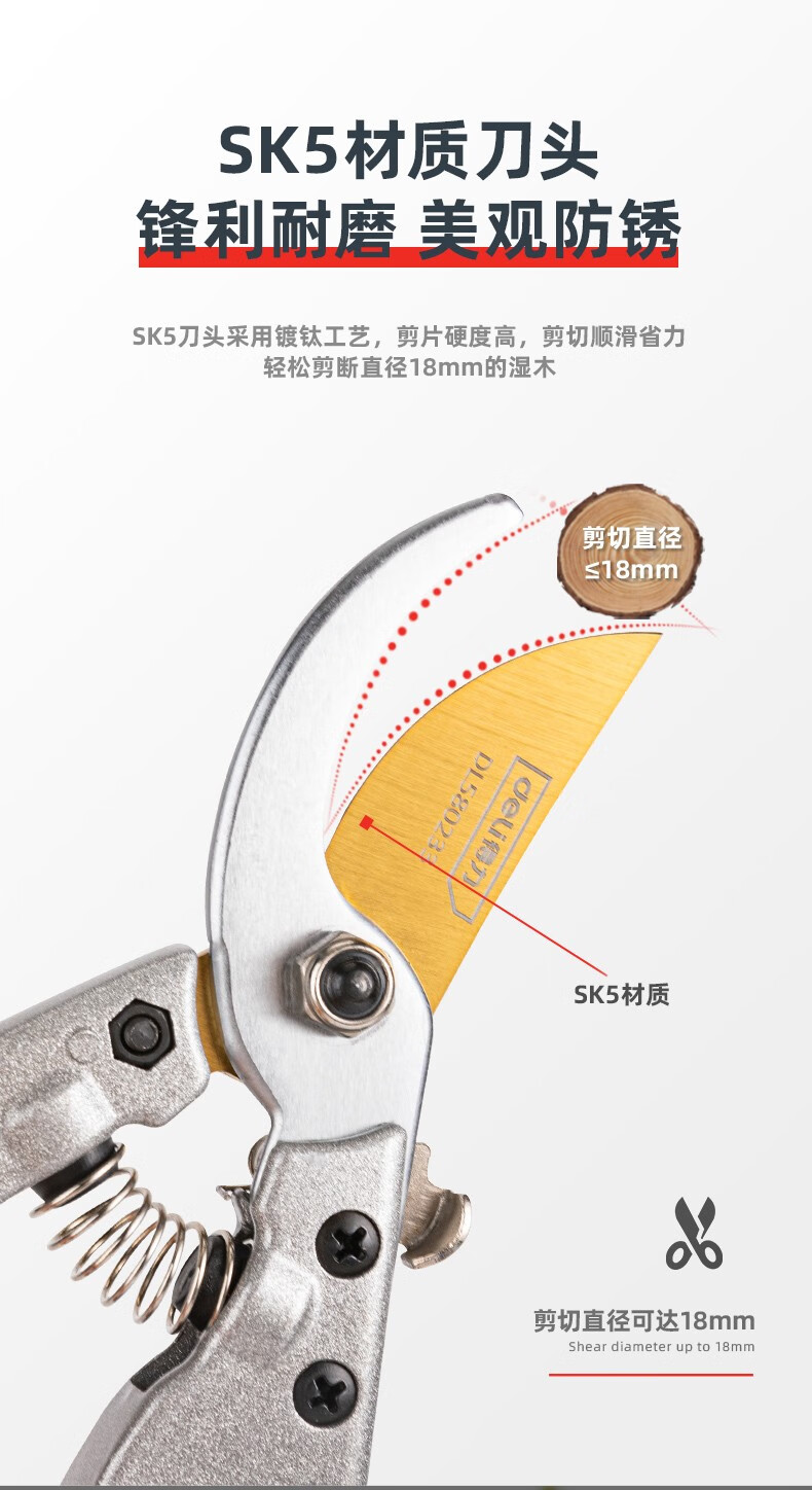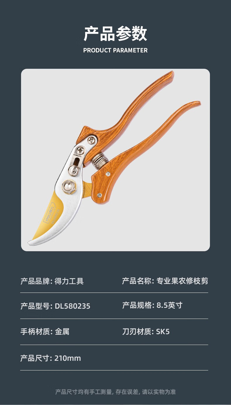 Deli pruning shears, professional fruit farmers, garden scissors, branch scissors, fruit branch pruners, thick branches, flowers, powerful 8-inch pruning shears DL580200