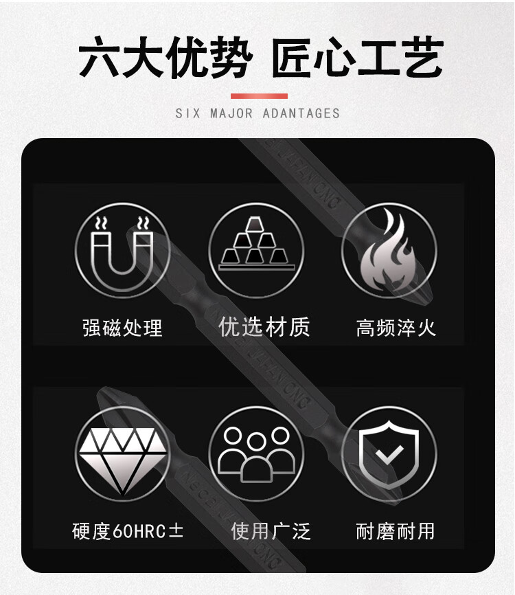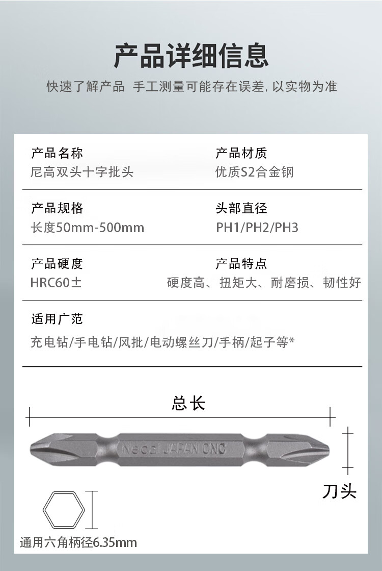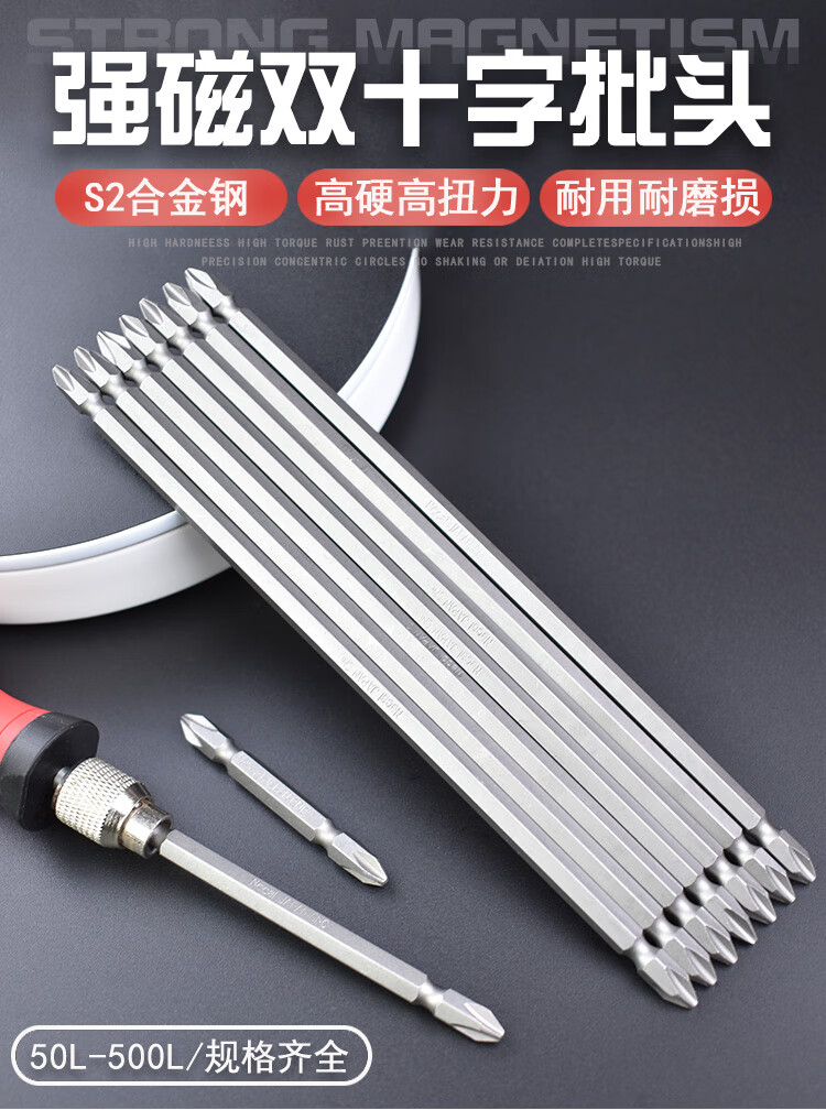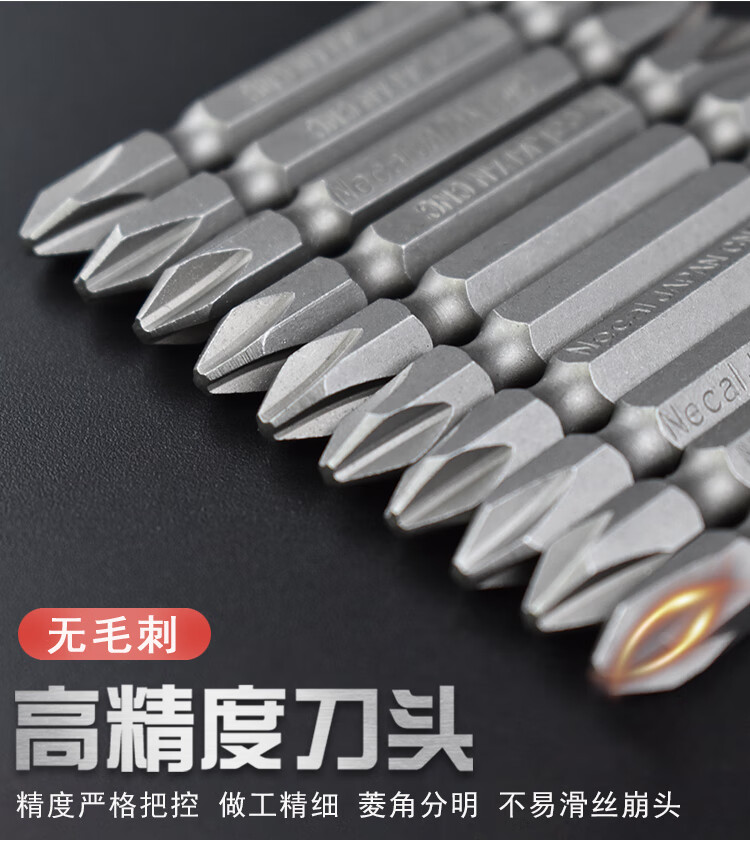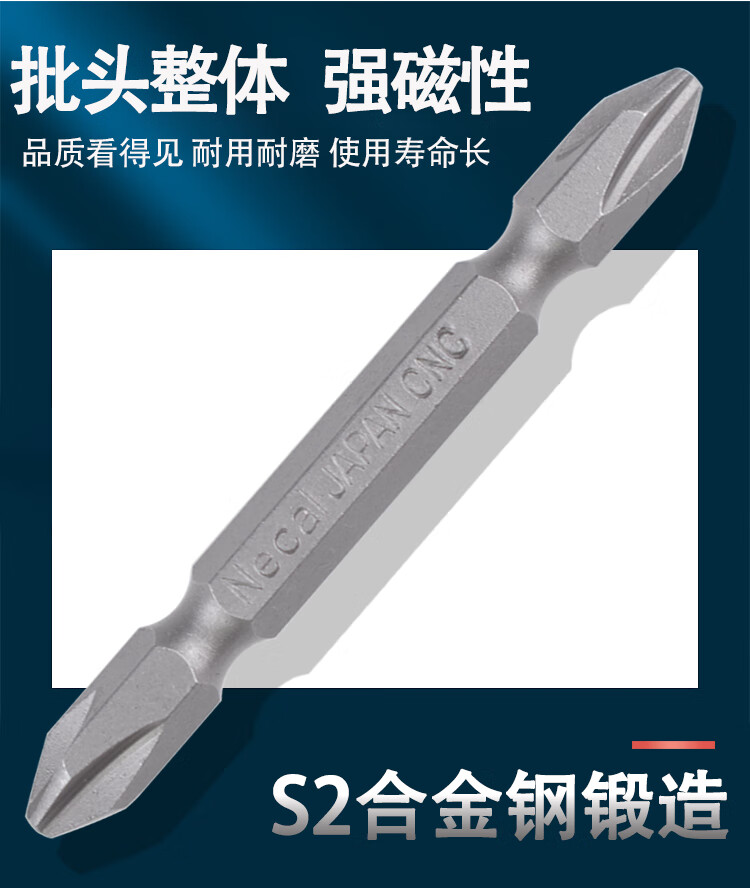 Nigao imported S2 wind bit head strong magnetic cross bit head magnetic coil electric screwdriver bit cross lengthened hard wind bit head universal head domestic S2H1/4*65*PH2DE ten pieces