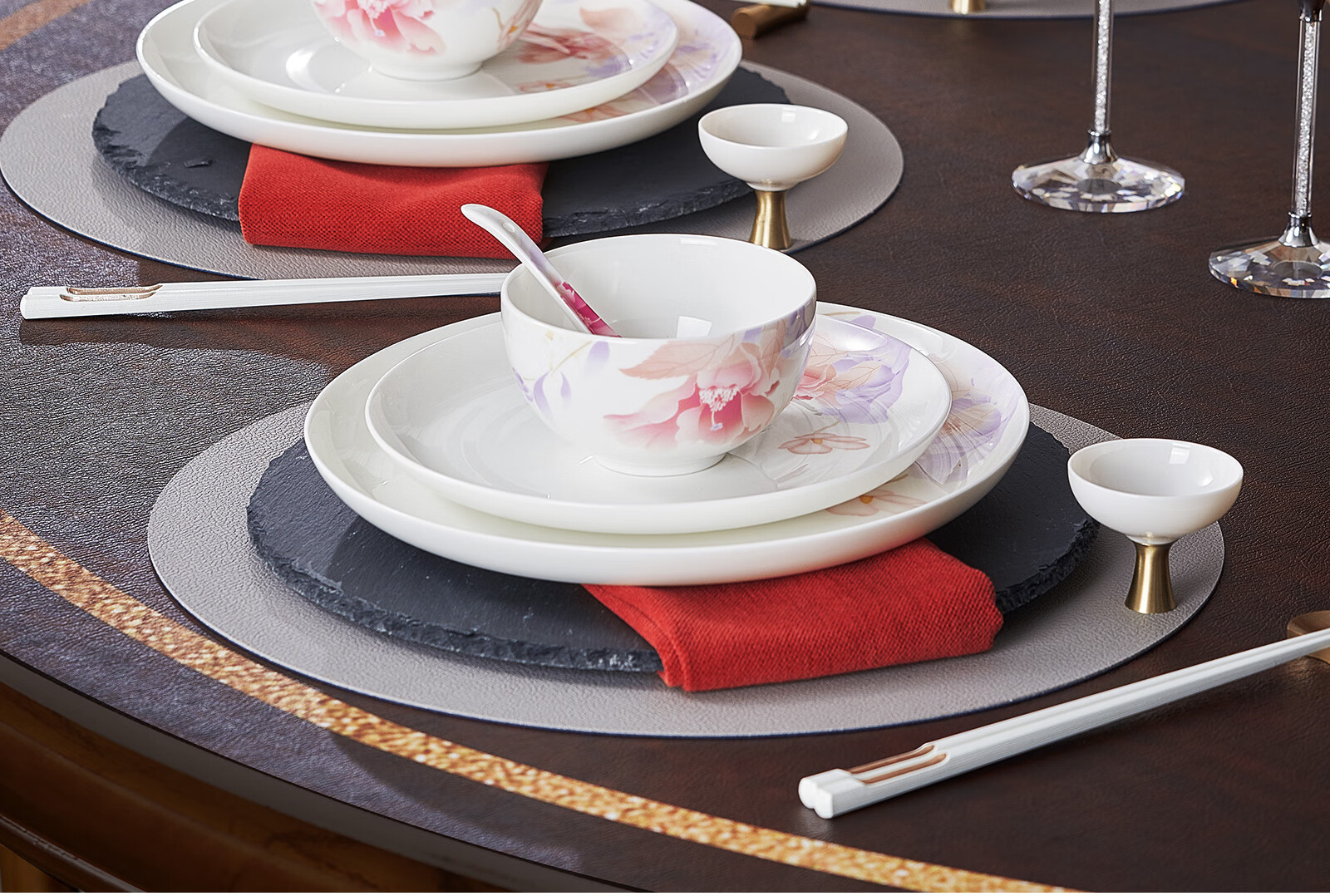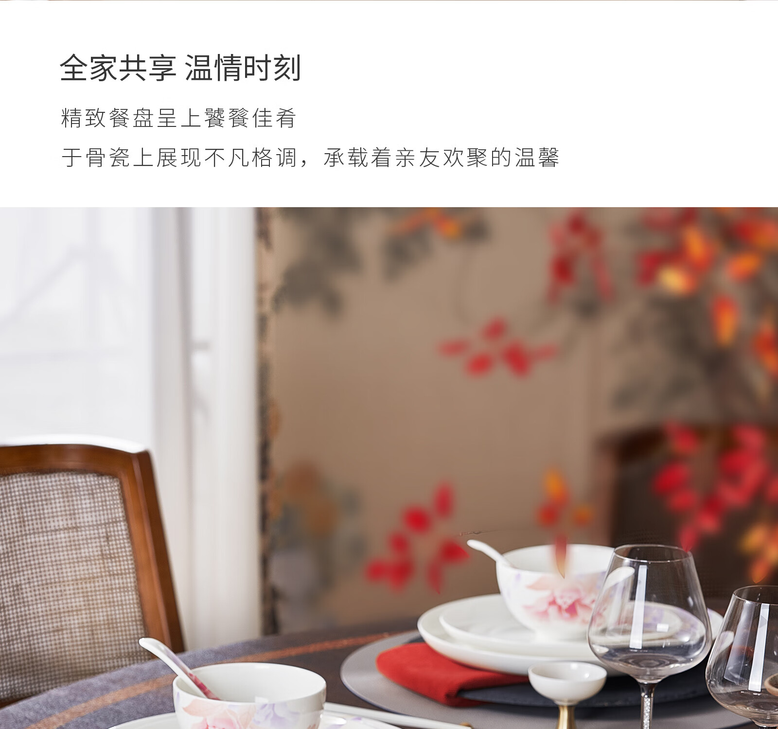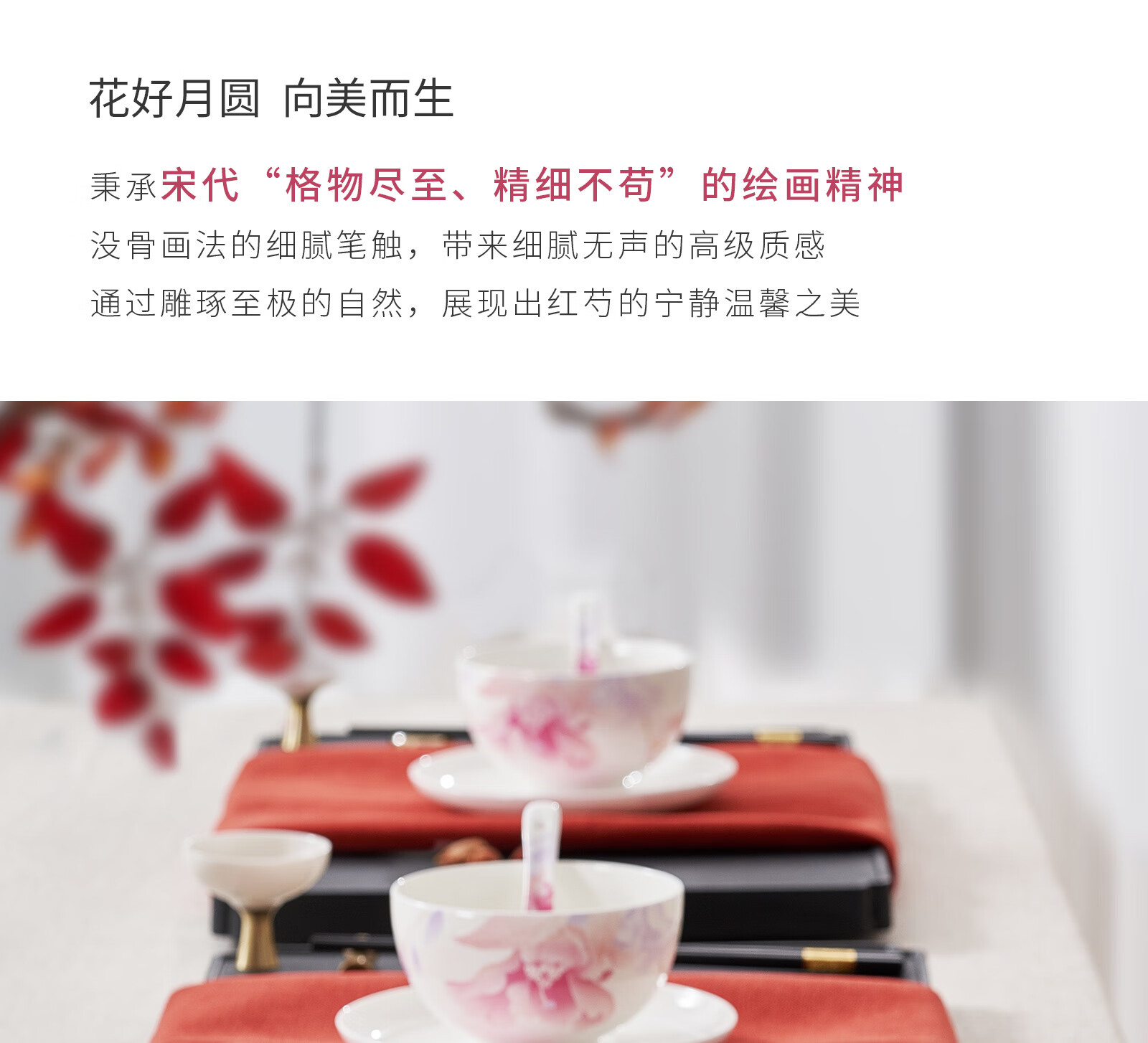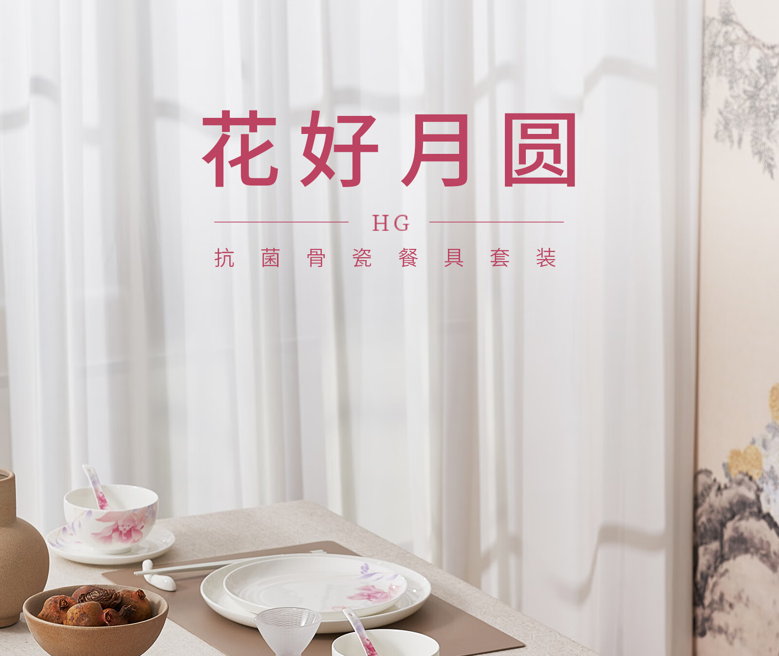 Huaguang National Porcelain Bowl and Plate Tableware Set Antibacterial Bone China Tableware and Dish Set Housewarming and Wedding Gift Flowers and Full Moon Suitable for 4 people Antibacterial Gift Box 22 pieces