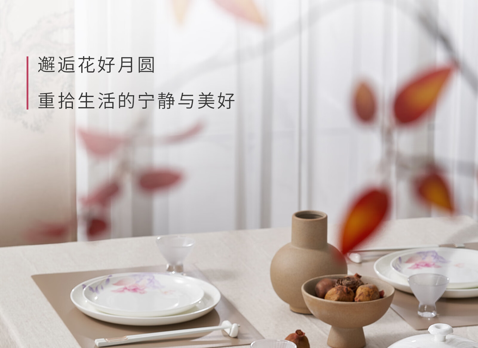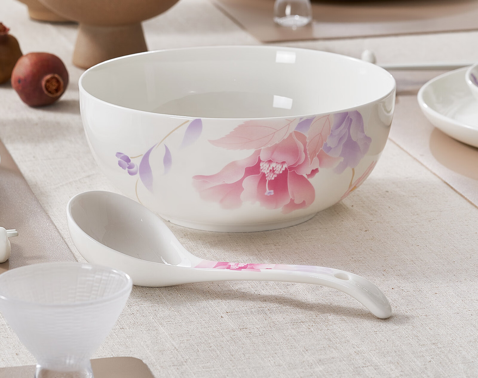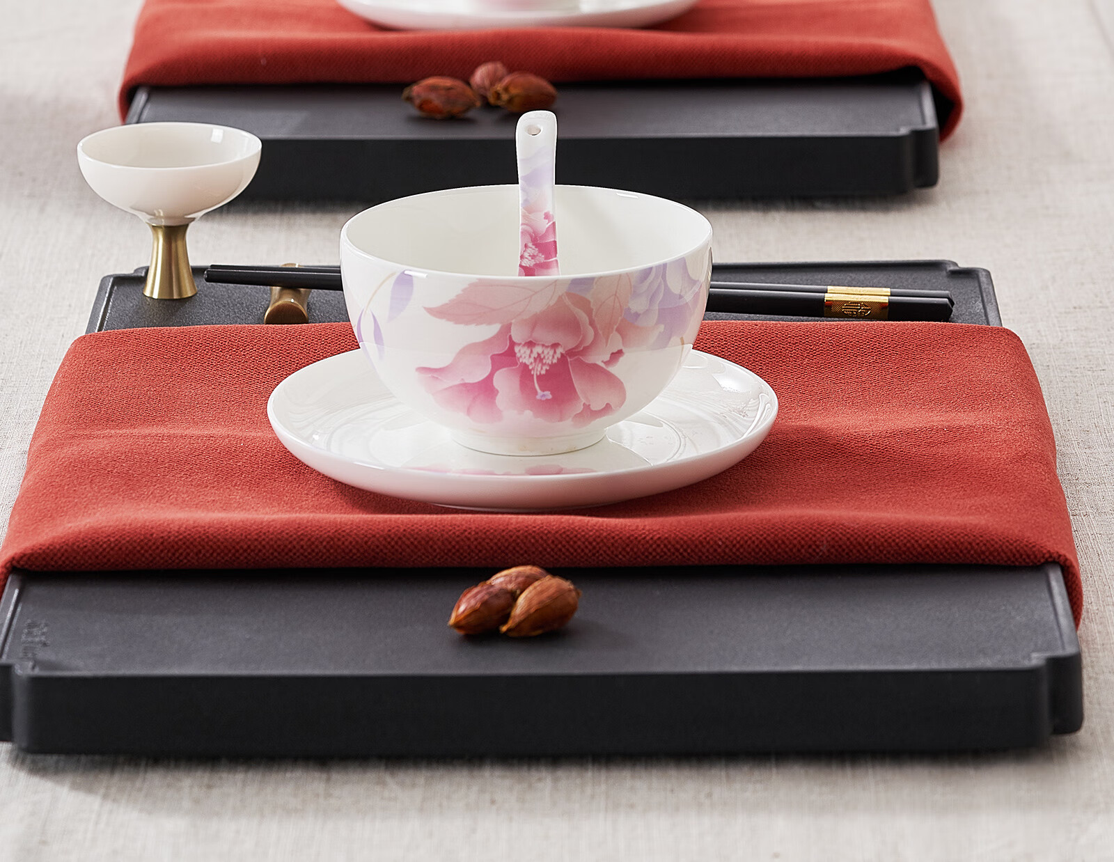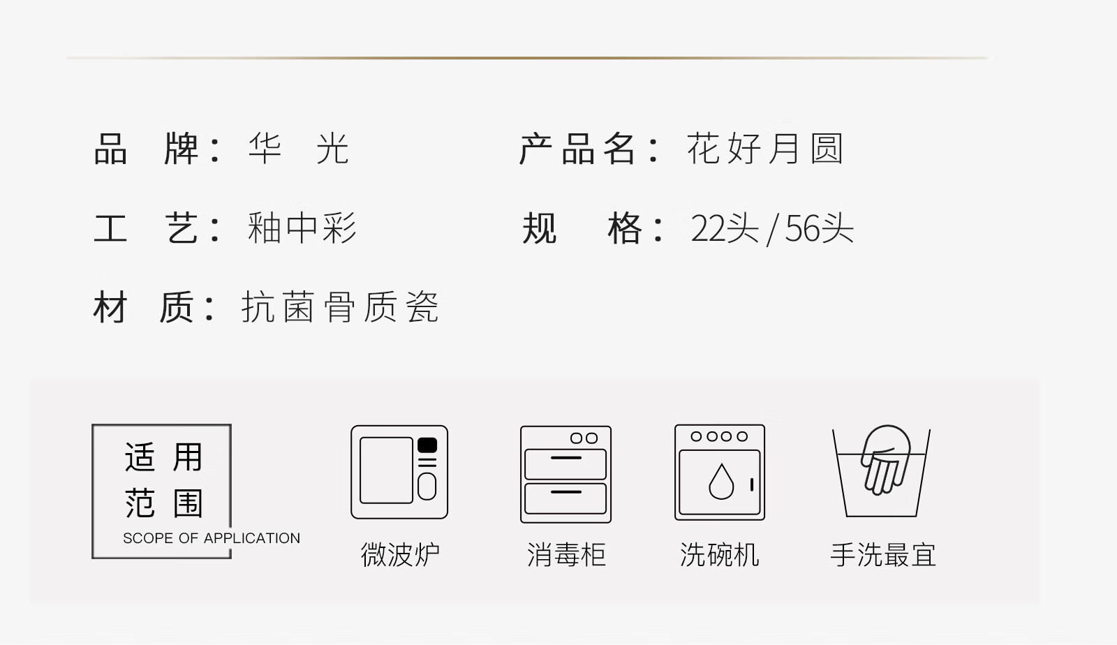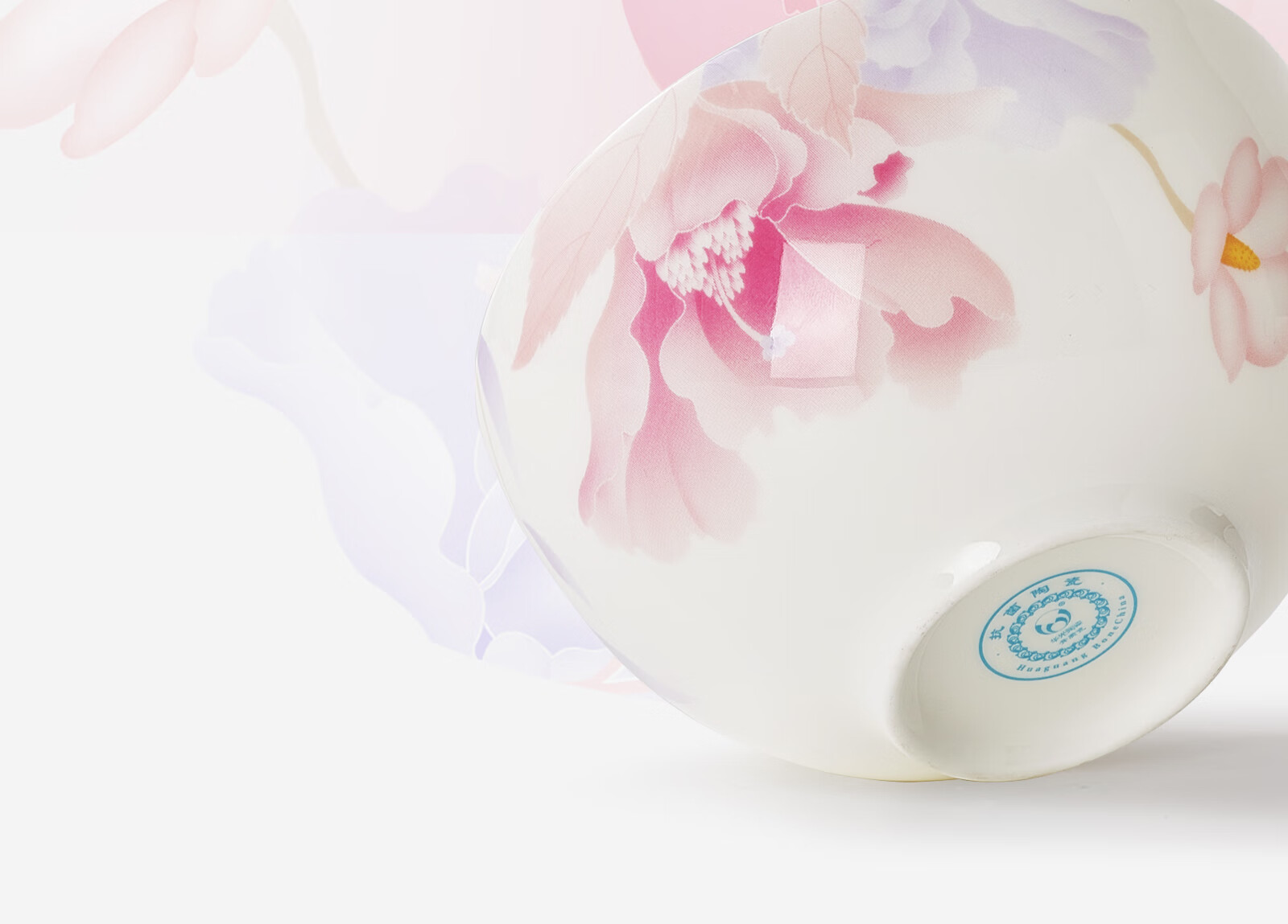 Huaguang National Porcelain Bowl and Plate Tableware Set Antibacterial Bone China Tableware and Dish Set Housewarming and Wedding Gift Flowers and Full Moon Suitable for 4 people Antibacterial Gift Box 22 pieces