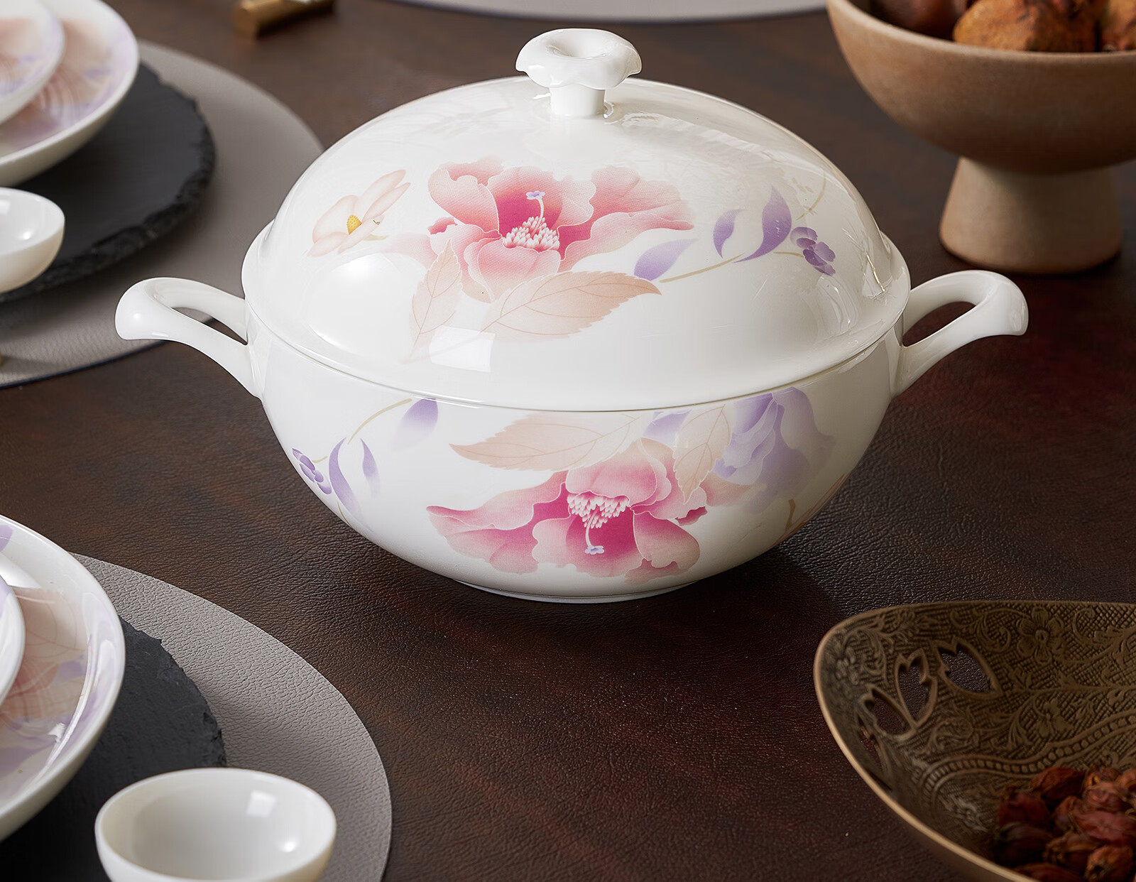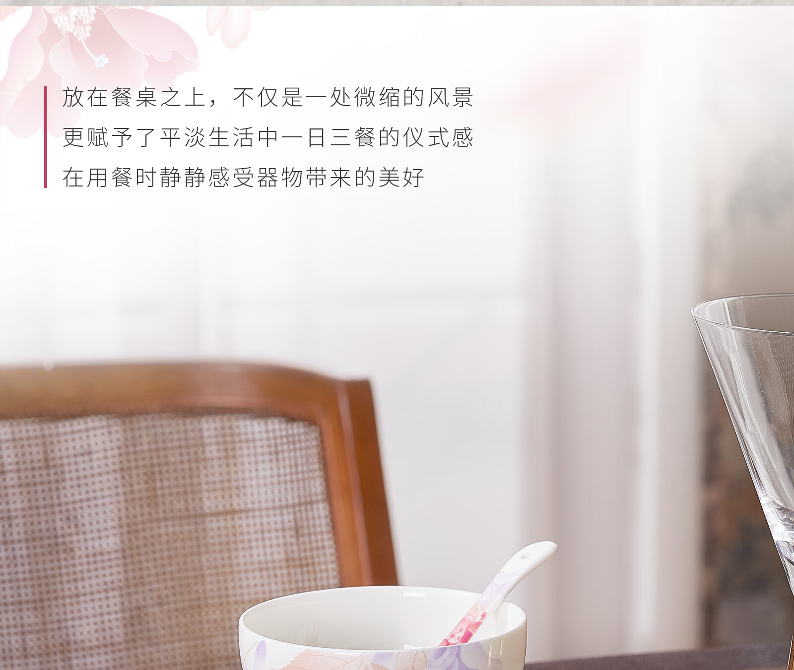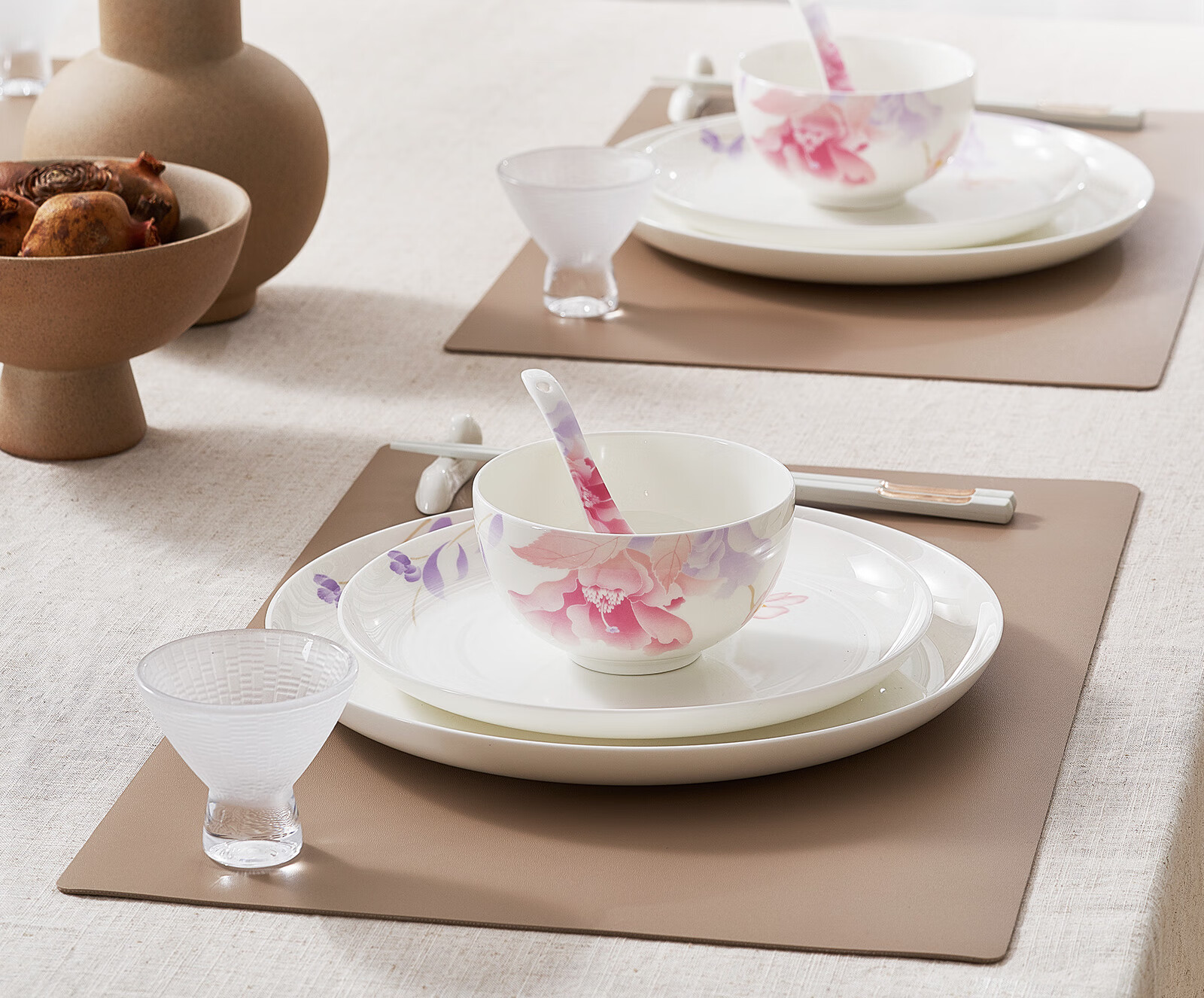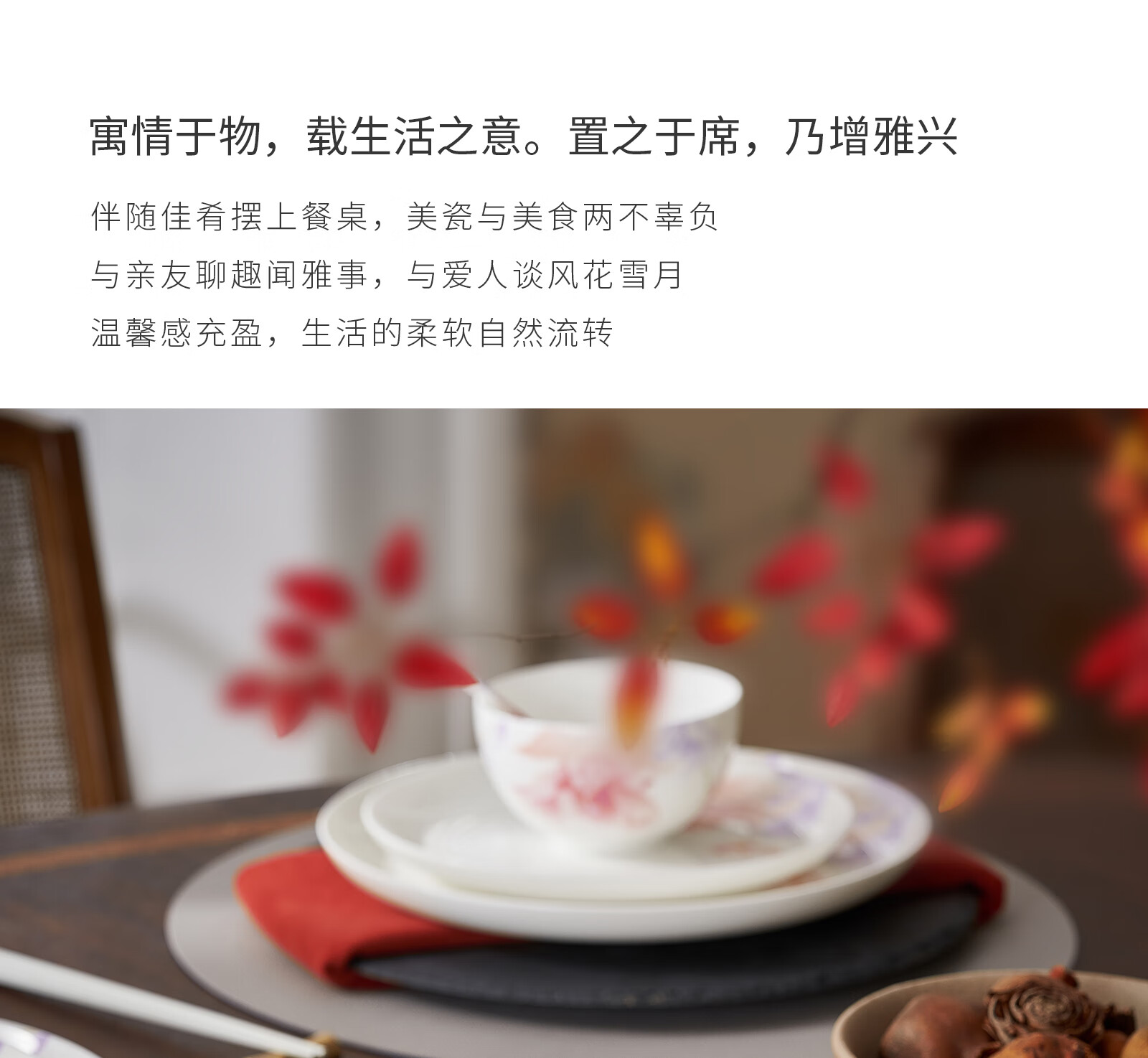 Huaguang National Porcelain Bowl and Plate Tableware Set Antibacterial Bone China Tableware and Dish Set Housewarming and Wedding Gift Flowers and Full Moon Suitable for 4 people Antibacterial Gift Box 22 pieces