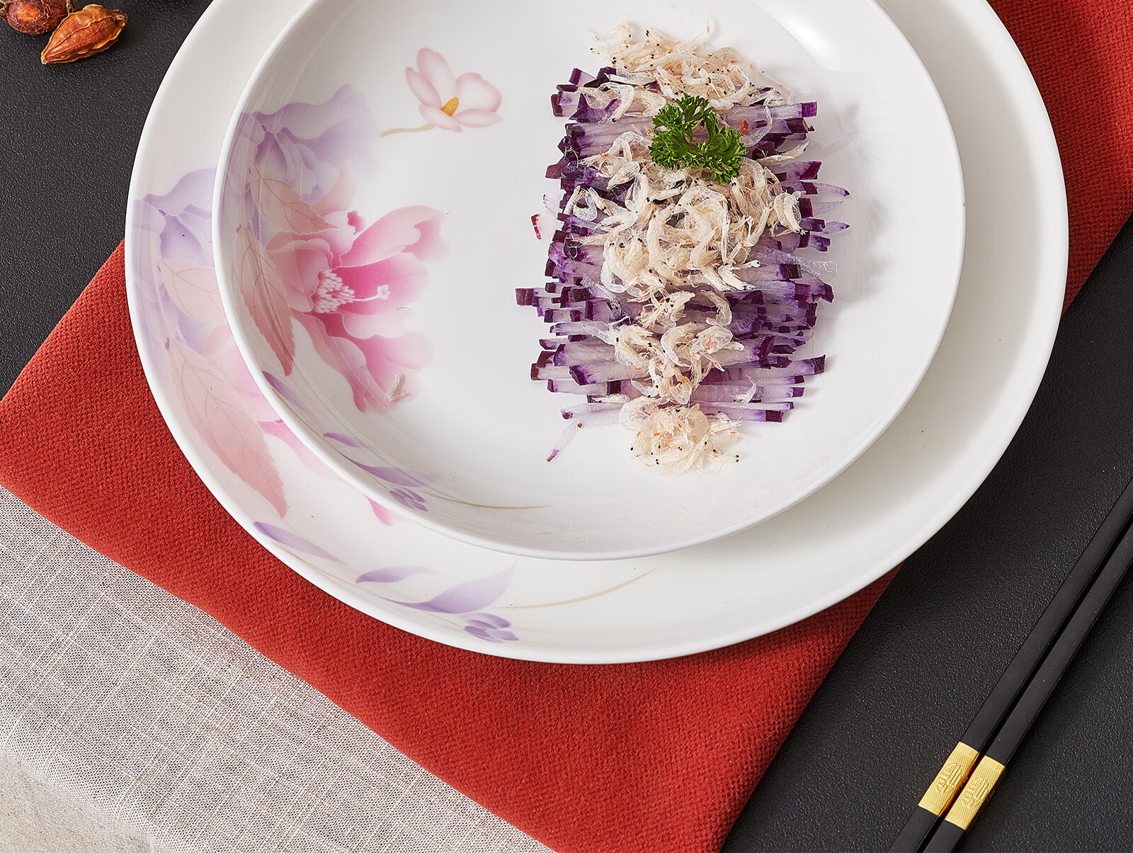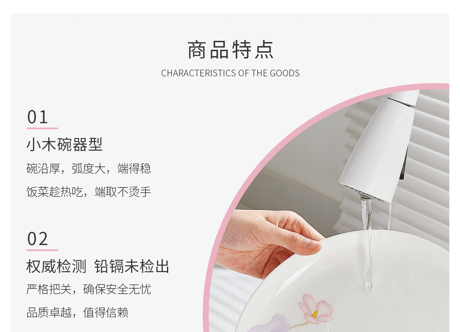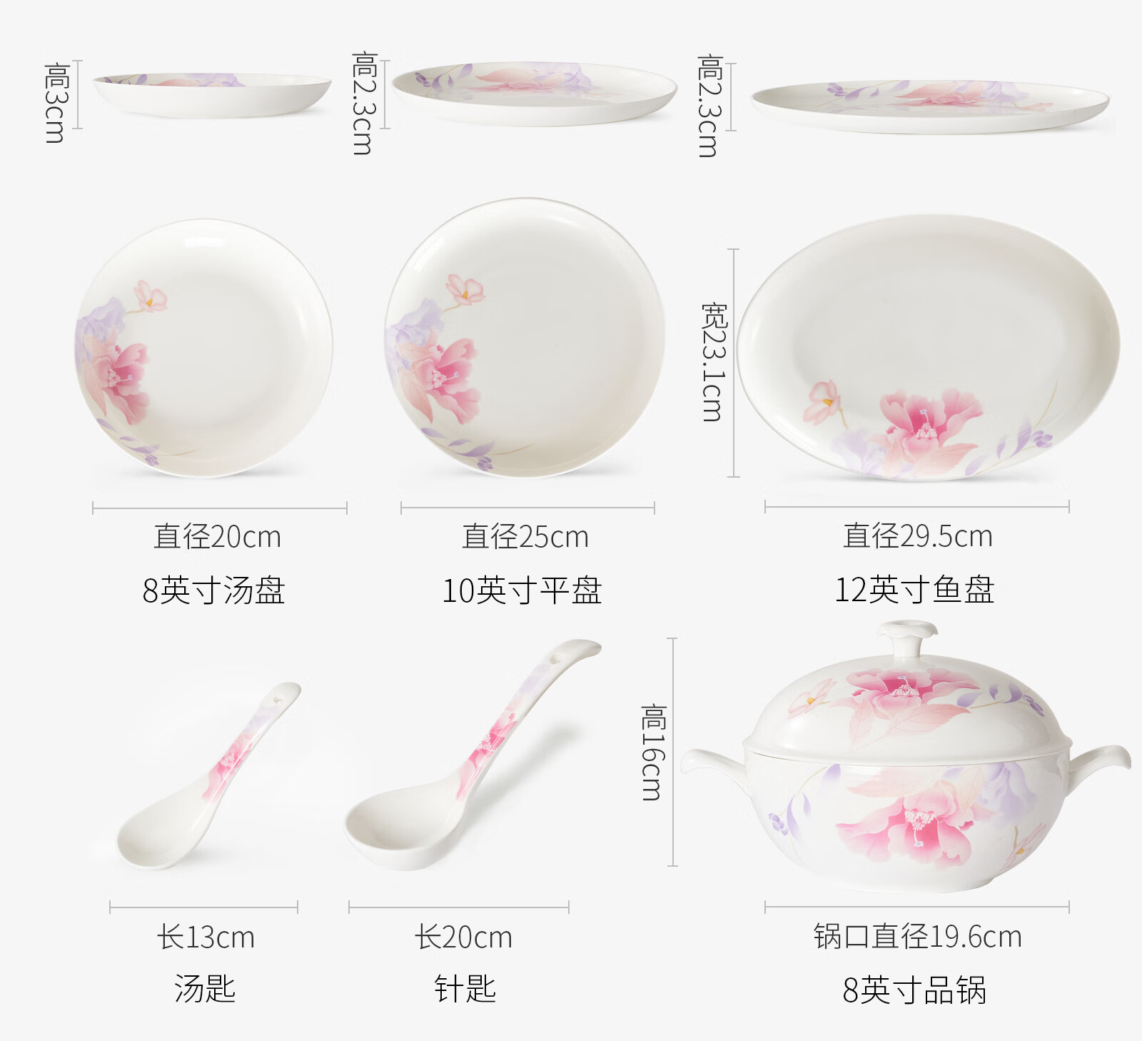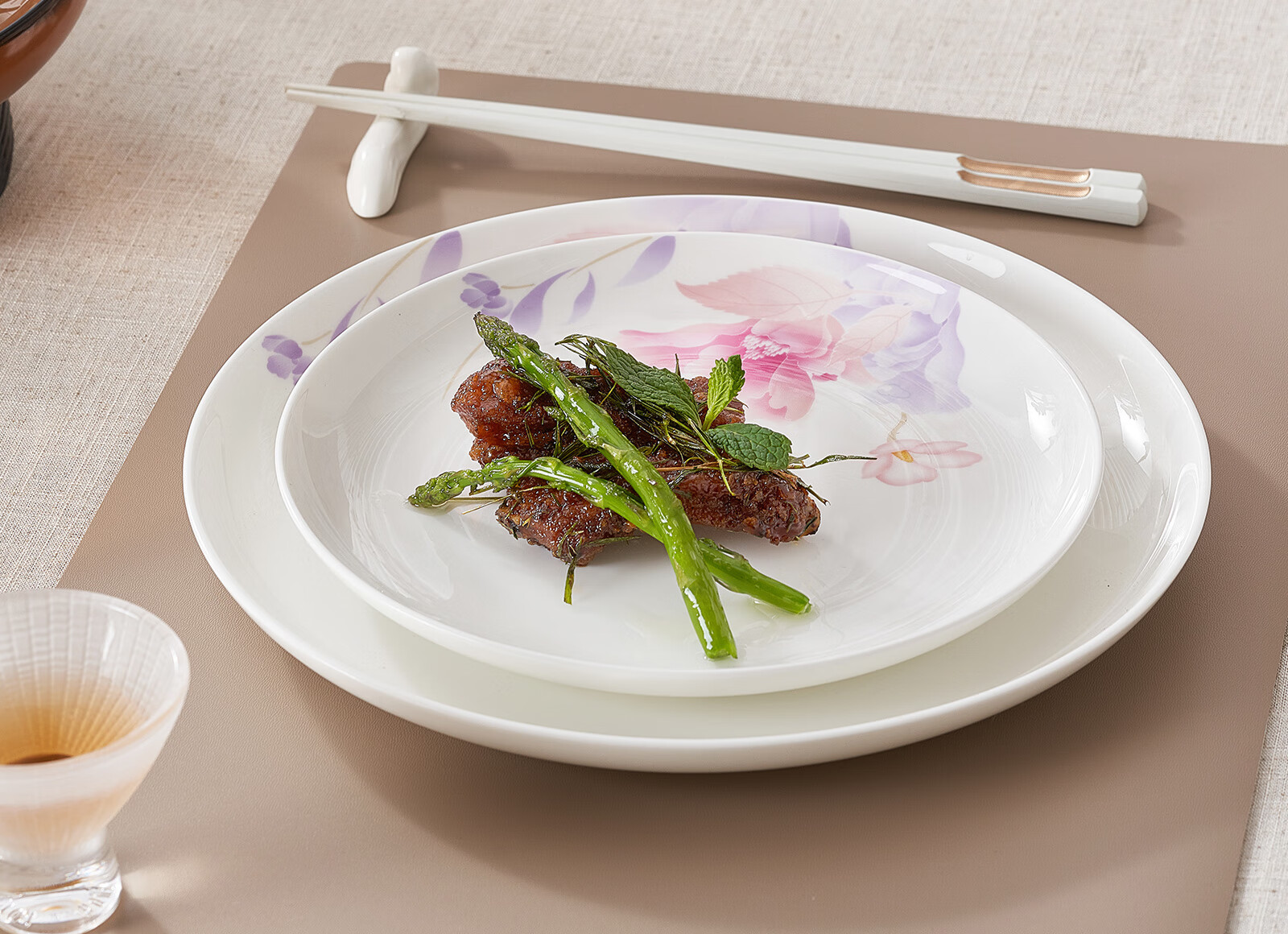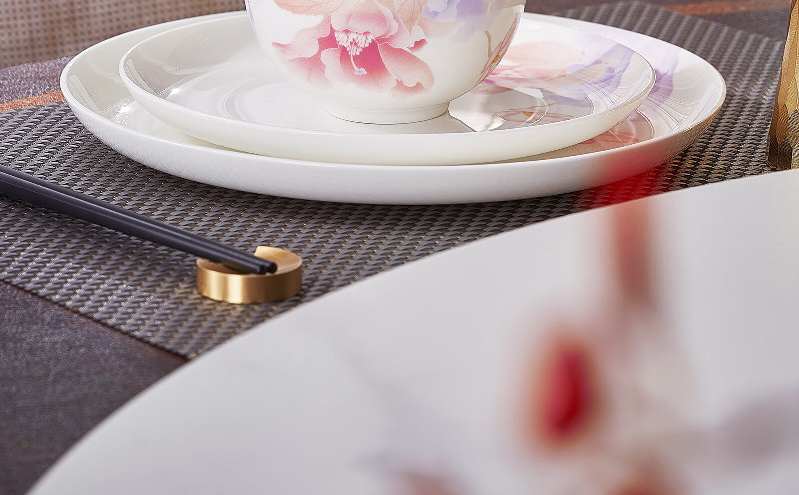 Huaguang National Porcelain Bowl and Plate Tableware Set Antibacterial Bone China Tableware and Dish Set Housewarming and Wedding Gift Flowers and Full Moon Suitable for 4 people Antibacterial Gift Box 22 pieces