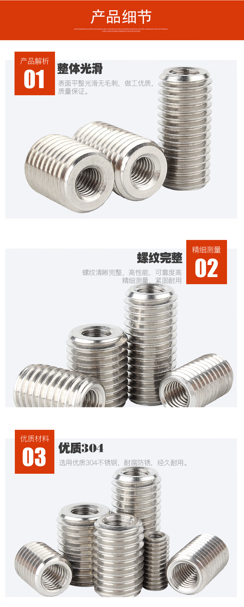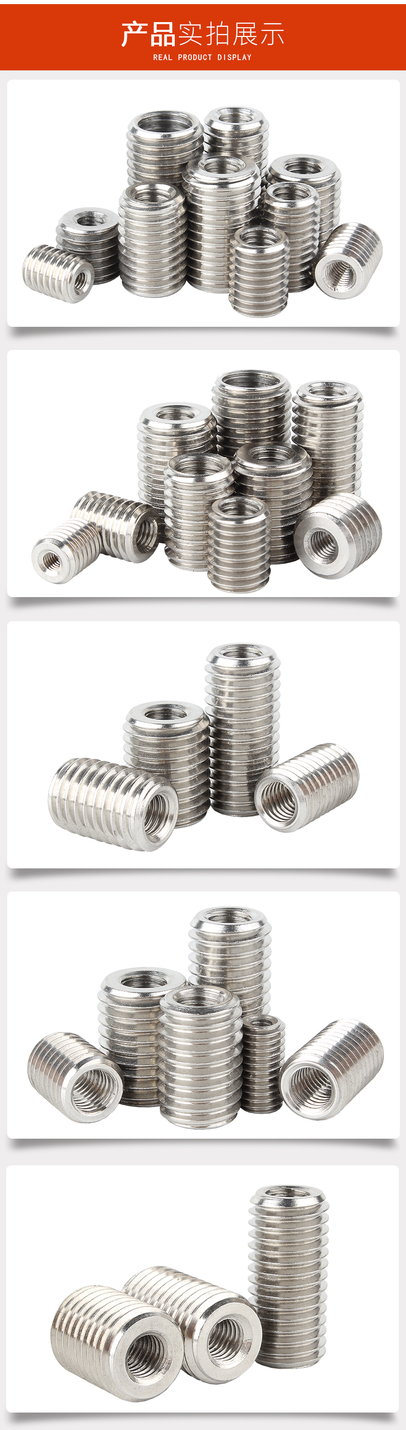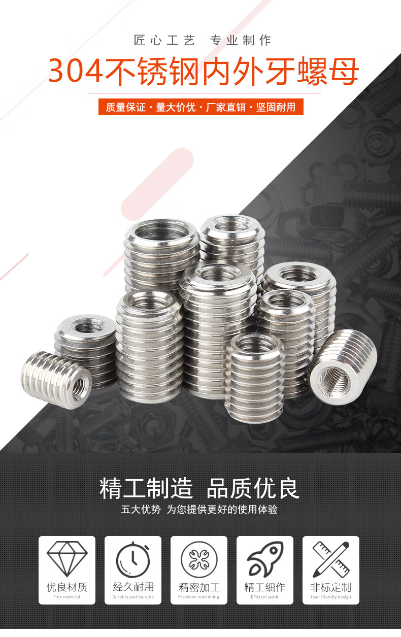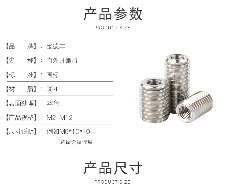 Baodefeng 304 stainless steel internal and external tooth nut thread conversion brace screw straight thread sheath national standard fastener M5XM8X20 2 pieces