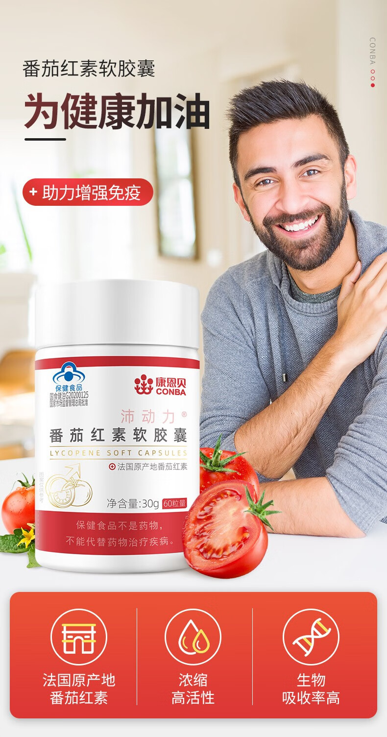 Kangenbeipei Dynamic Lycopene Soft Capsules for Adults to Enhance Immunity for Men Can Be Matched with Men's Zinc and Selenium Health Products 1 Bottle