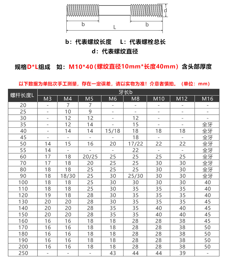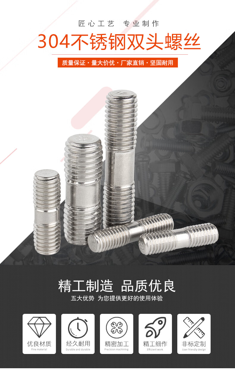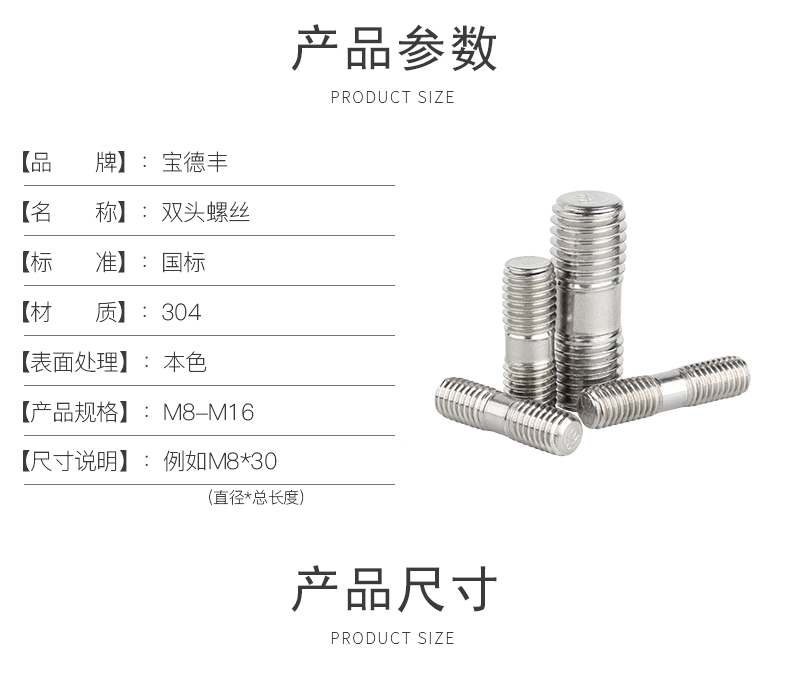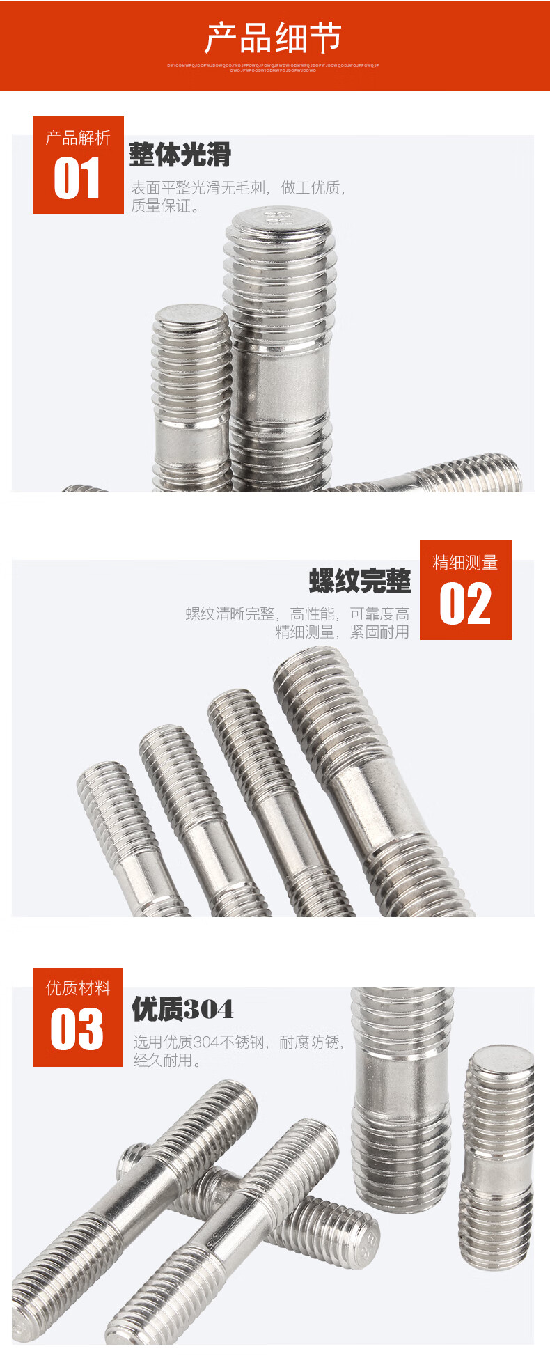 Baodefeng 304 stainless steel double-headed screw/extended screw two-headed screw rod tooth rod double-headed bolt tooth bar stud national standard M16X180 1 piece