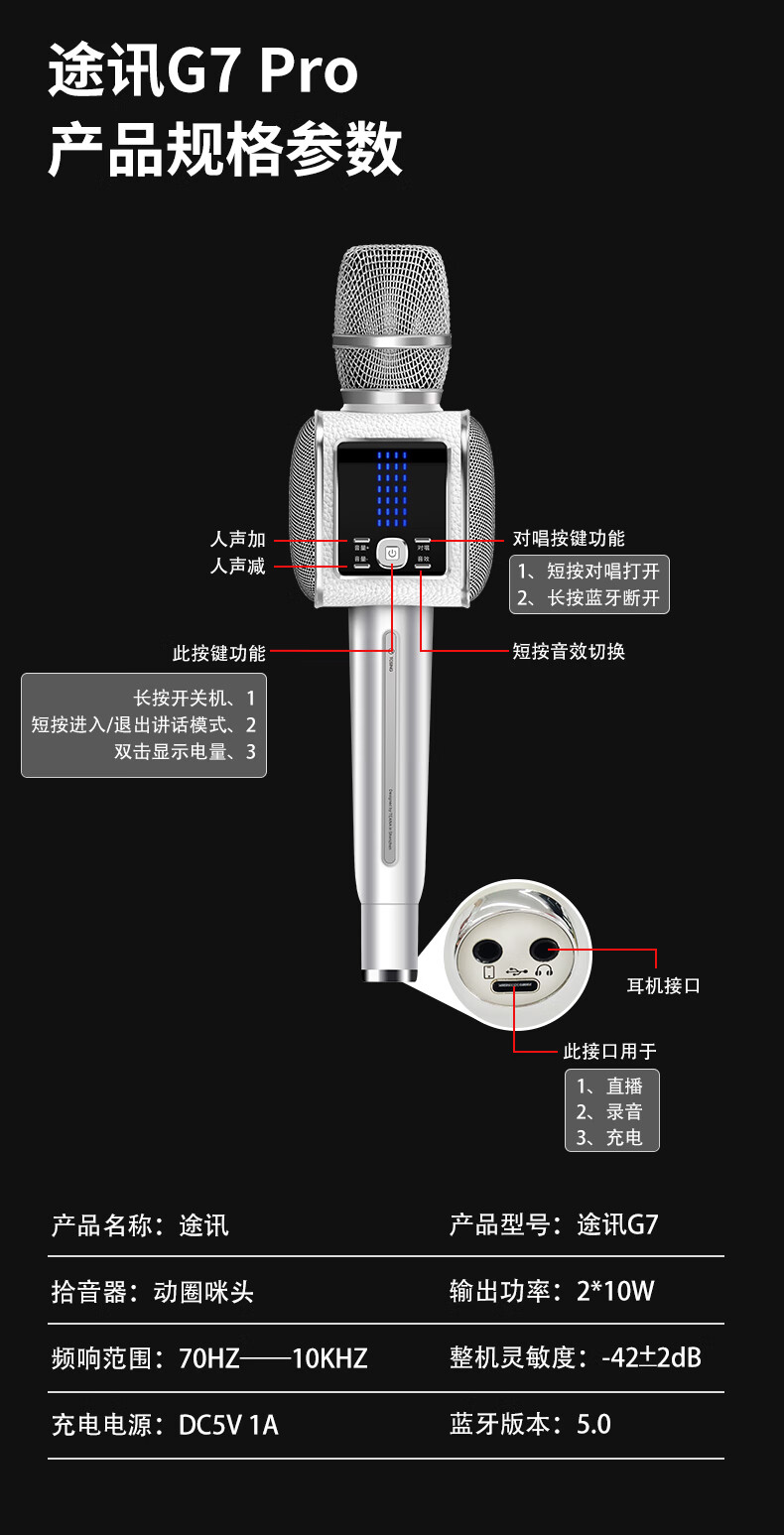 Tuxun G7Pro Microphone and Audio Integrated Microphone Wireless Bluetooth Bel Canto Professional National Karaoke Mobile Phone Home KTV White