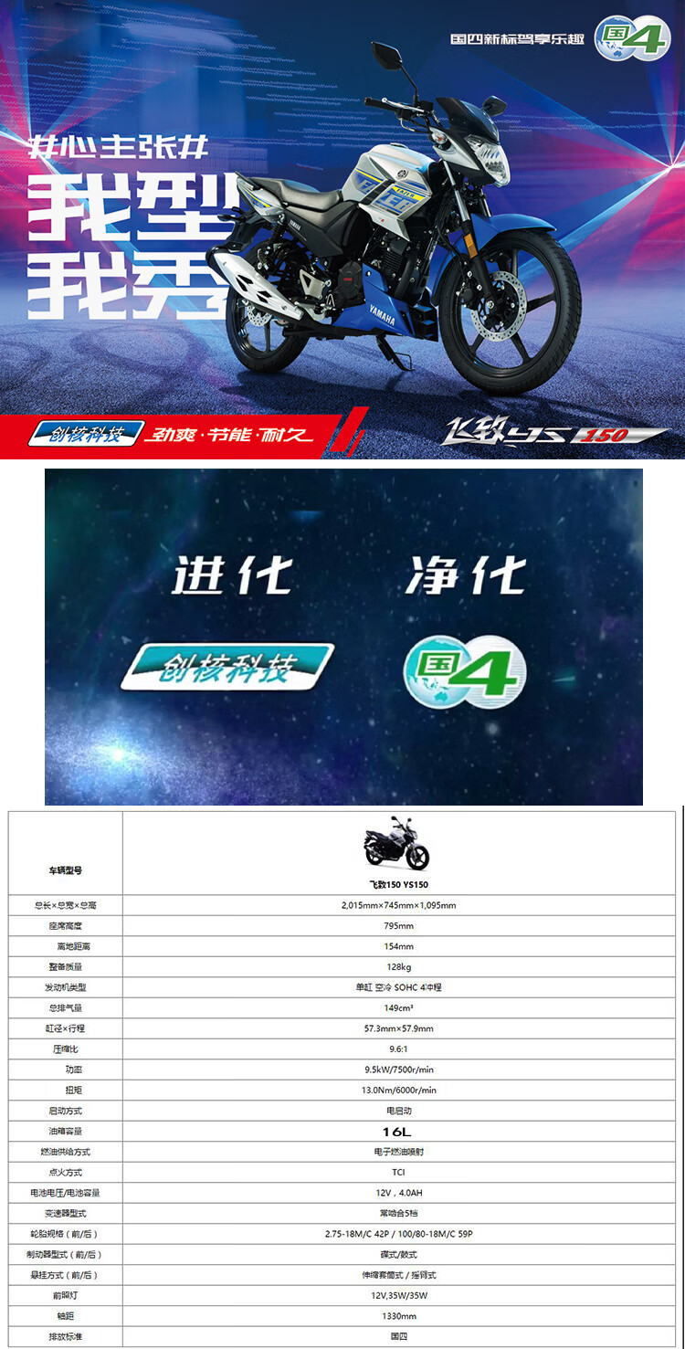 Yamaha Motorcycle Feizhi 150 street bike YS150 straddle bike JYM150-7 EFI National IV double disc sports car racing rider car Chuangnu Technology YAMA YS150/front and rear discs/cool black and yellow circle 2SB6-01D