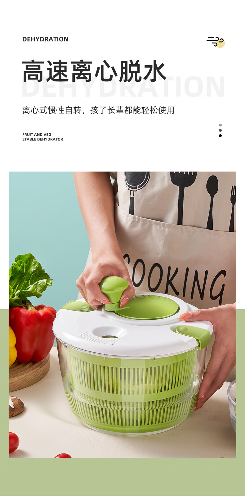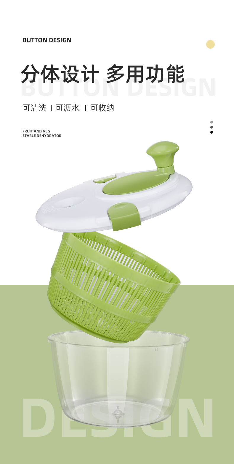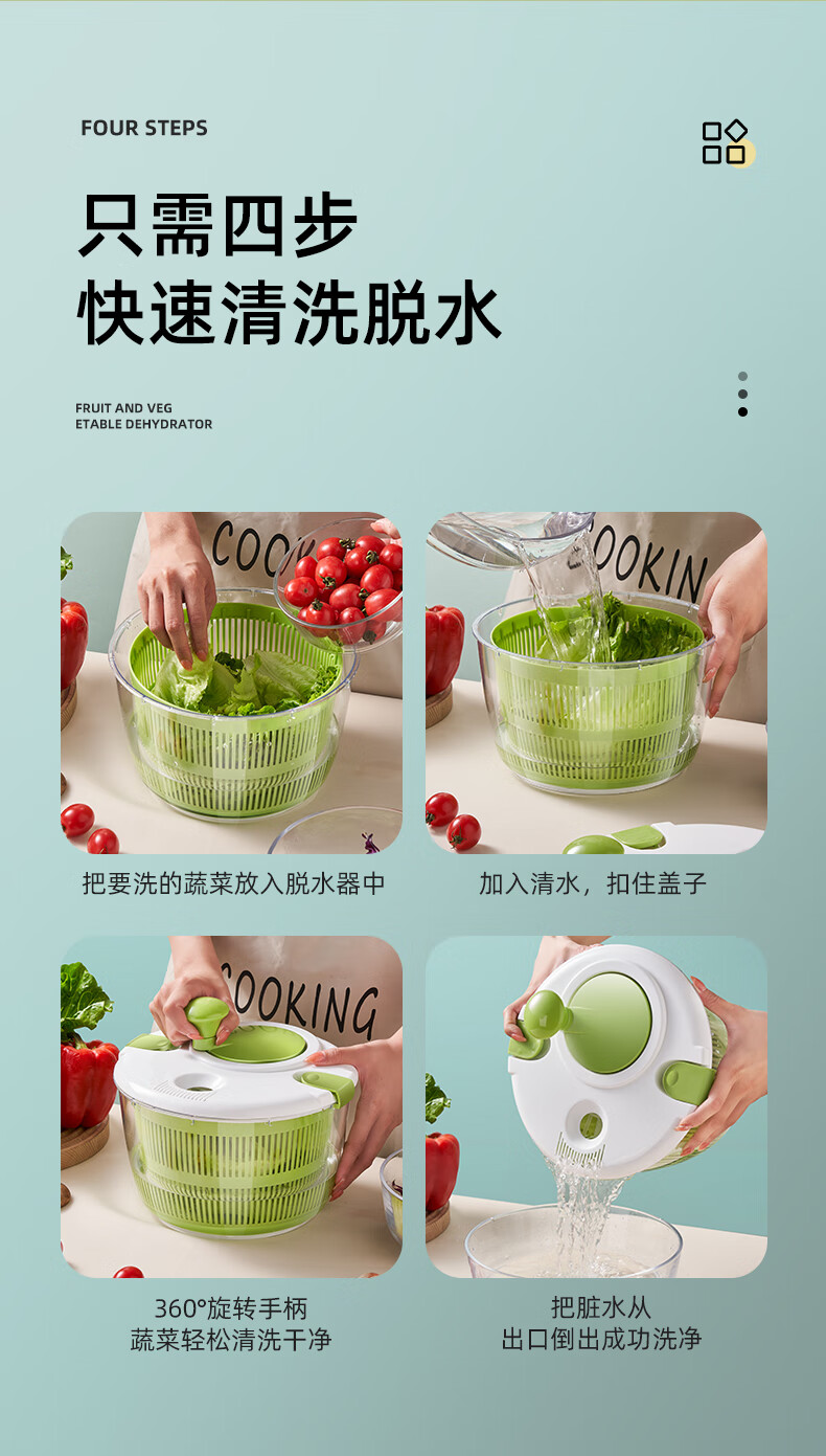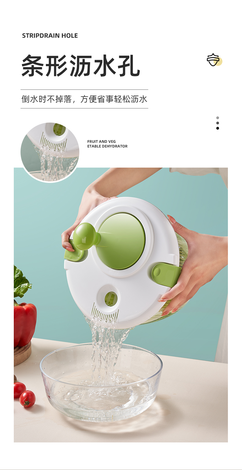 Fengtuoxing Salad Dryer Kitchen Vegetable Tools Dehydration Household Vegetable Basin Fruit Hand Shake to Remove Water Small 3L Classic Model