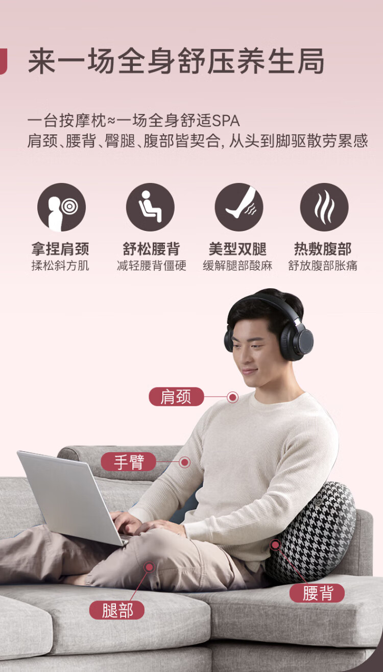 OSIM Waist Massager Love Massage Pillow Back Waist Cervical Massager Neck Shoulder Home Massage Lumbar Pillow OS-2213 New Year's Day Gift New Year's Gift Practical Love Model