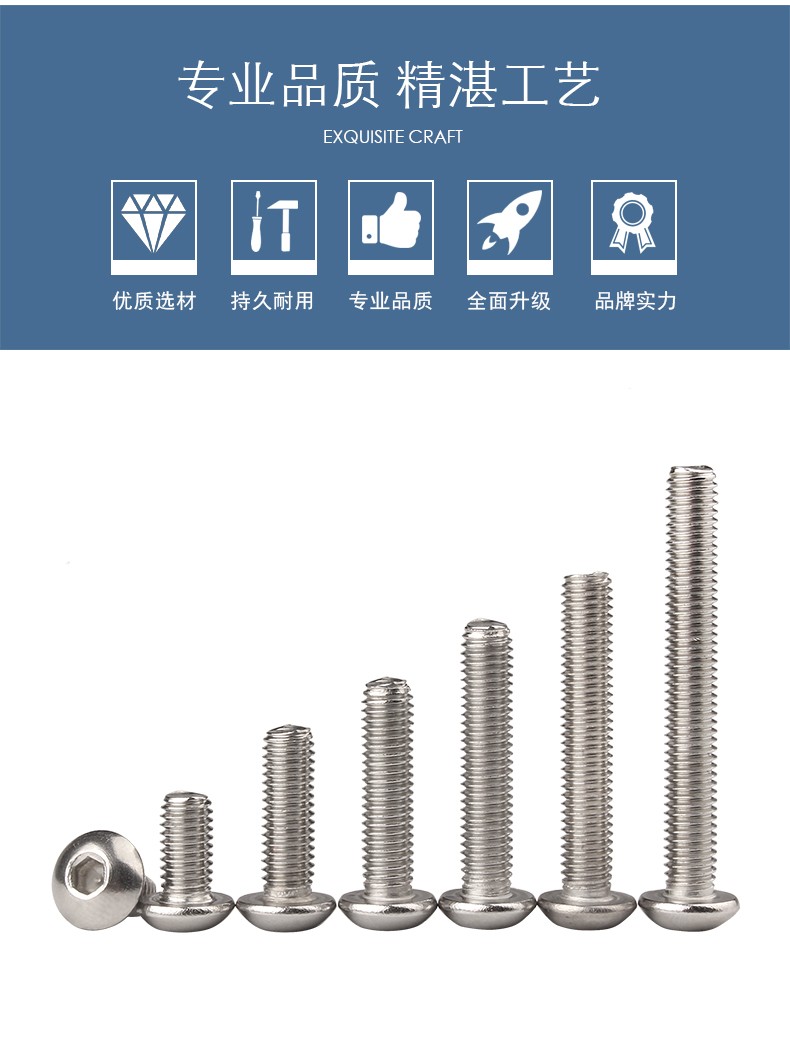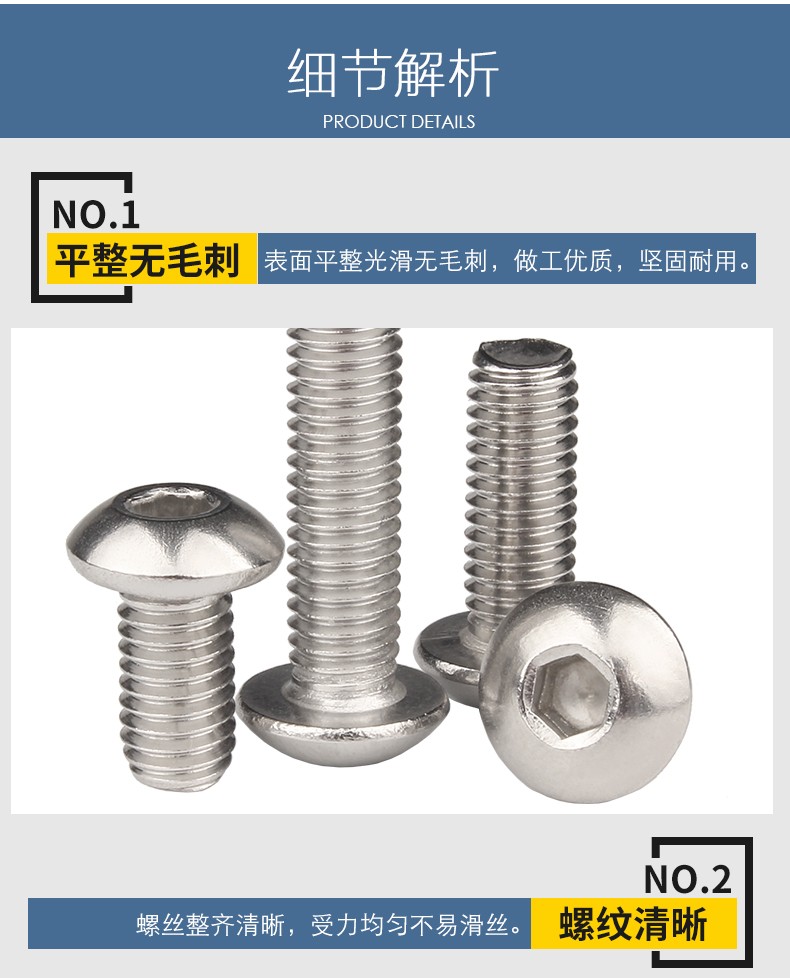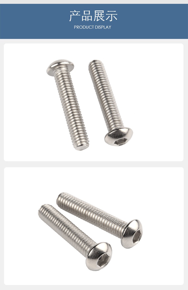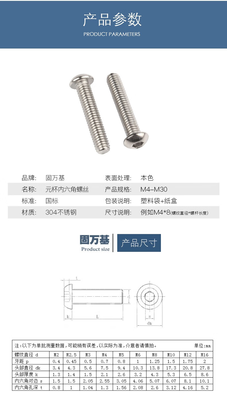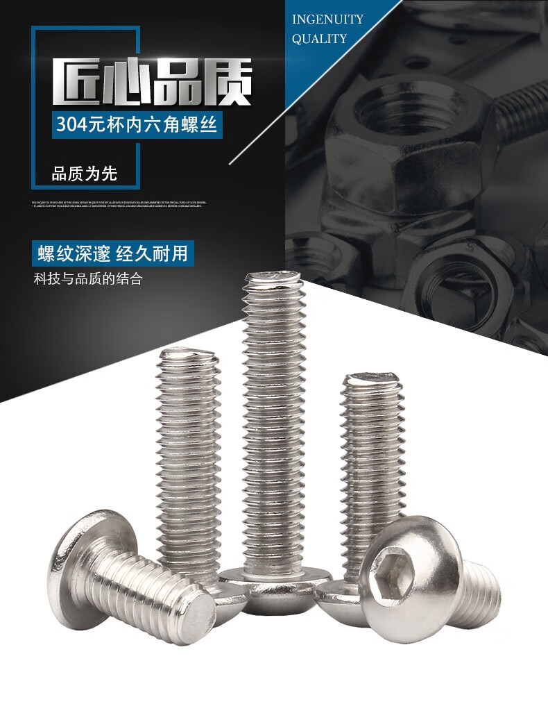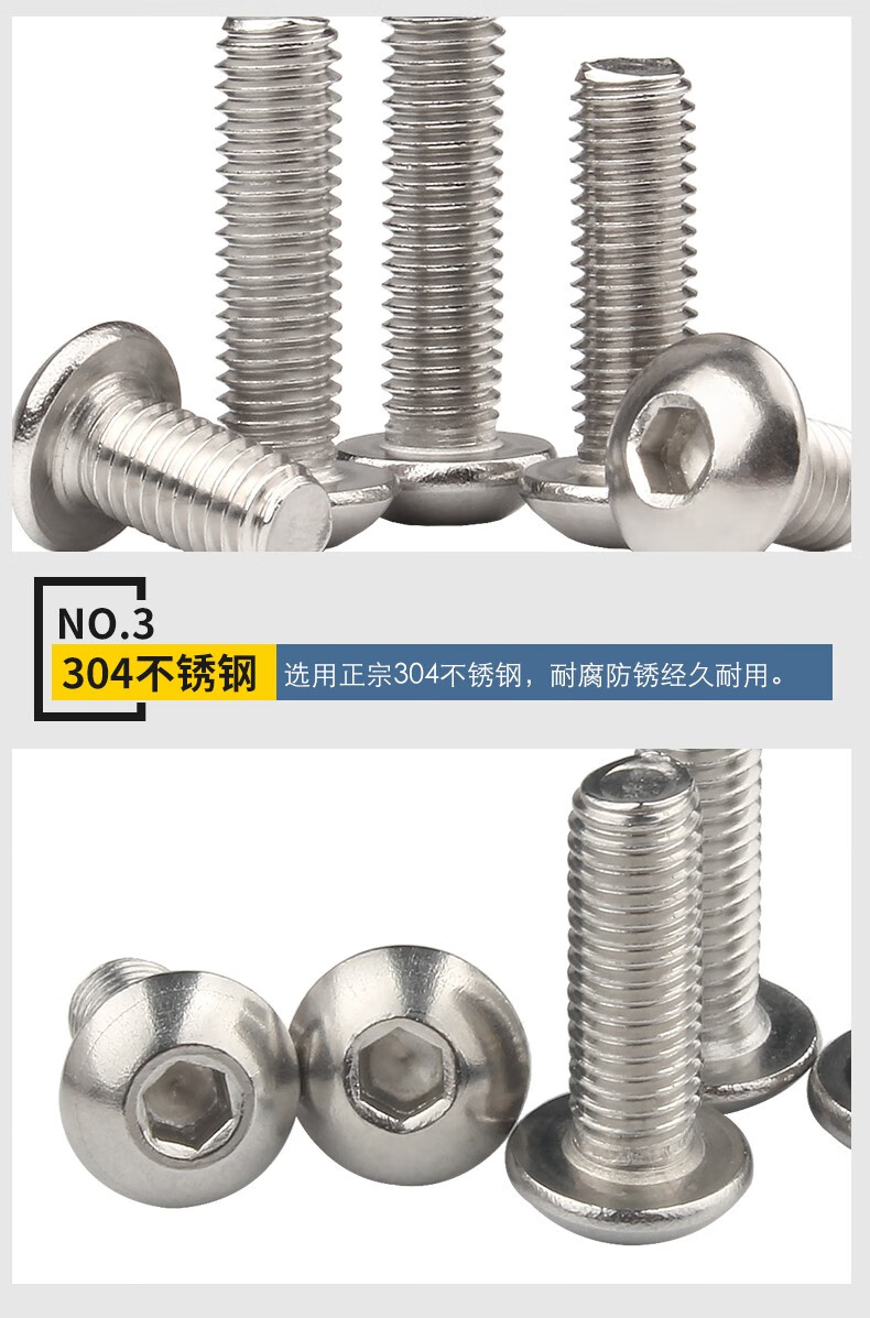 Guwanji 304 stainless steel round head hexagonal screws, pan head hexagonal bolts, mushroom umbrella head semi-circular head screws M4*8 50 pieces