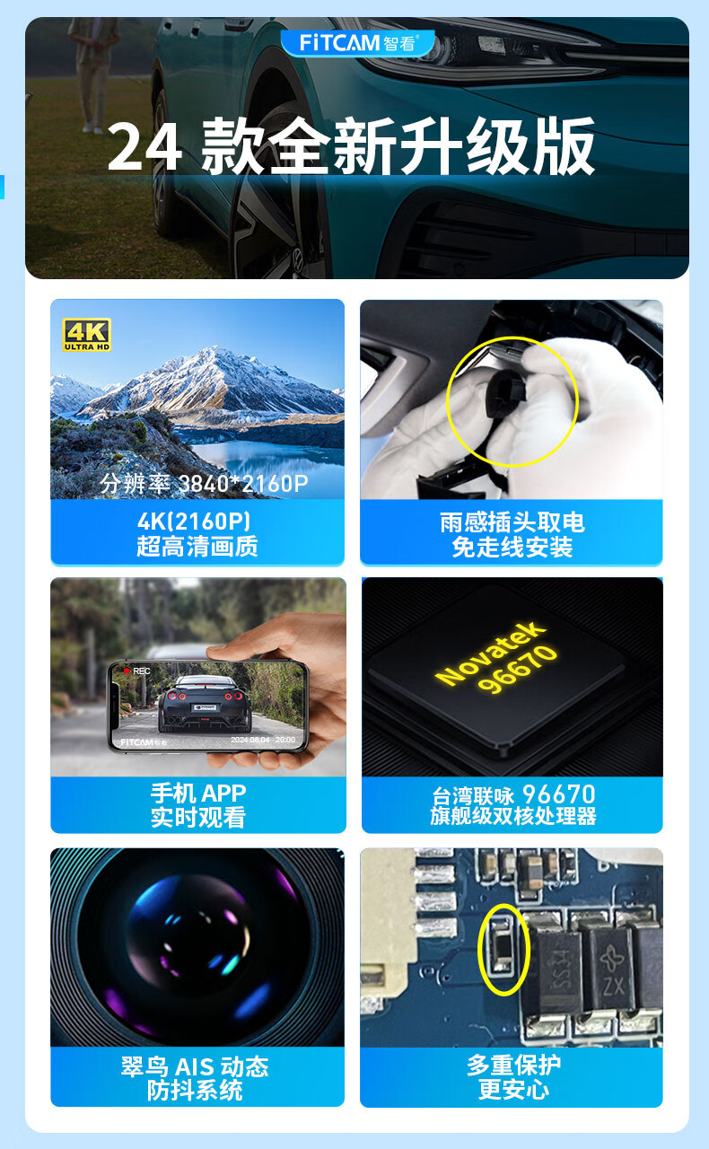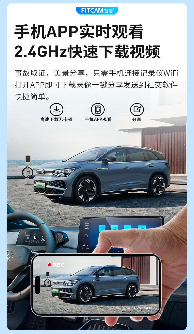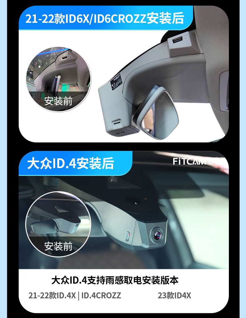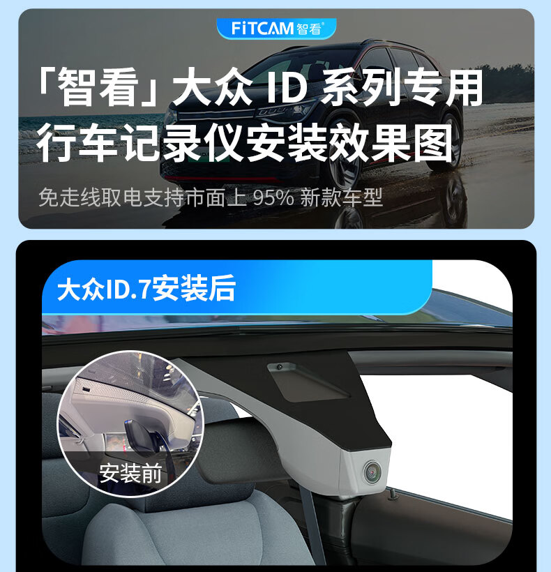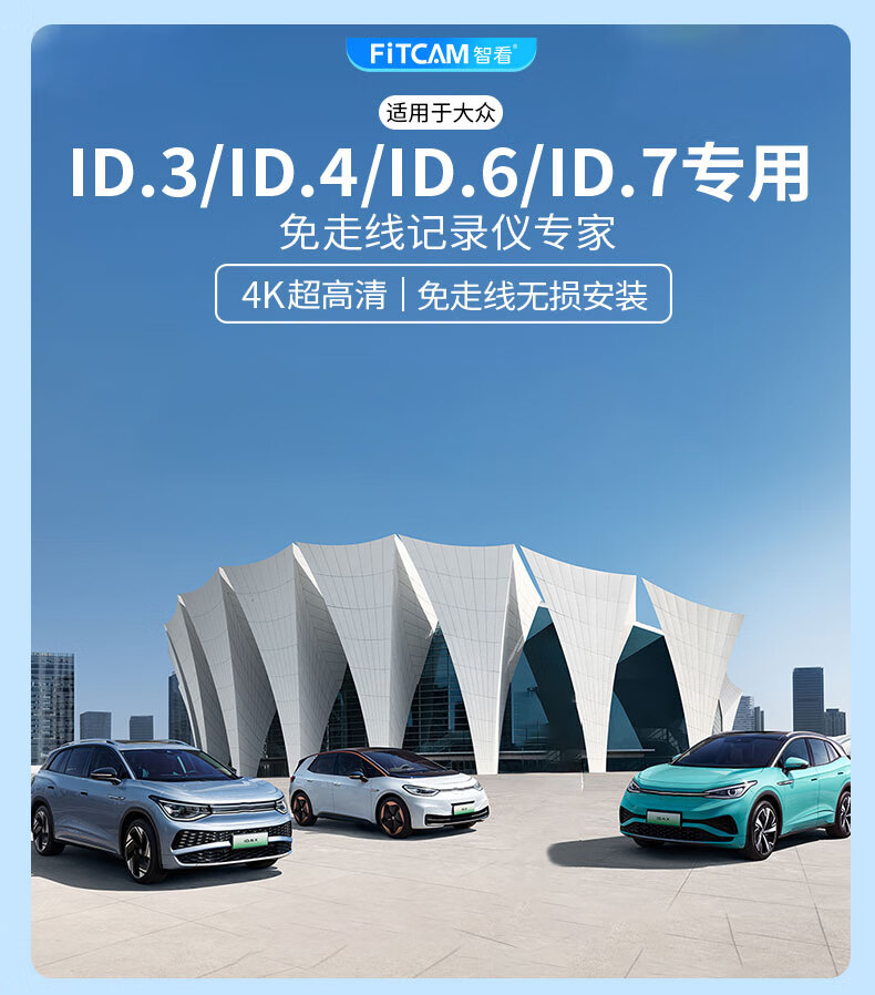 Zhikan is suitable for Volkswagen ID.3 ID.4X ID6X ID7 and Volkswagen dedicated driving recorder id3 id6 id4 HD ID.3 recorder + free 64G memory card