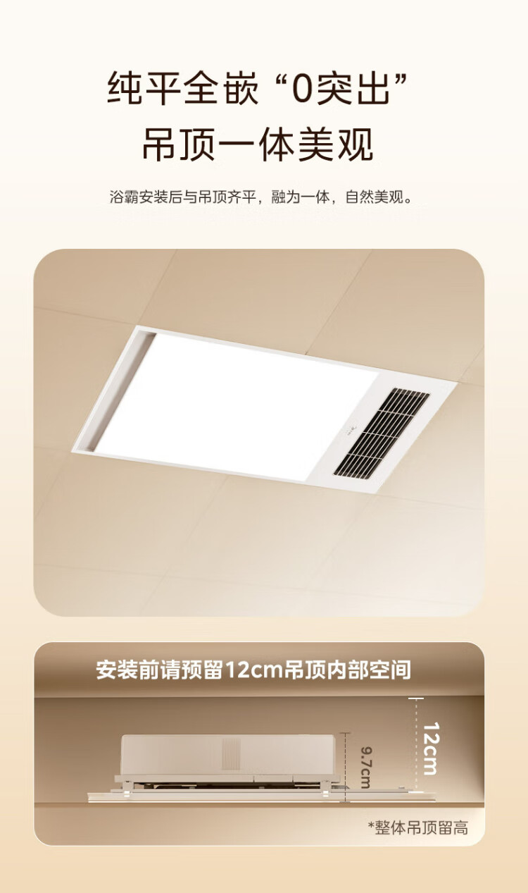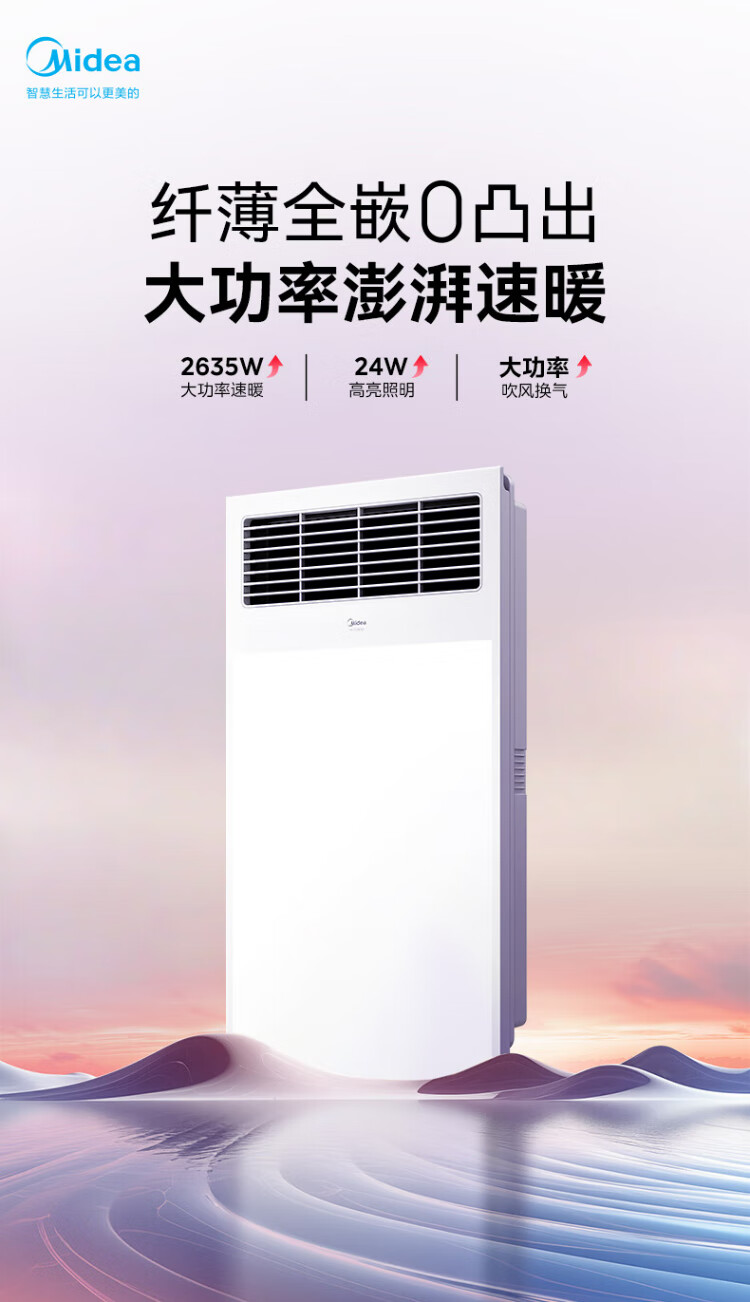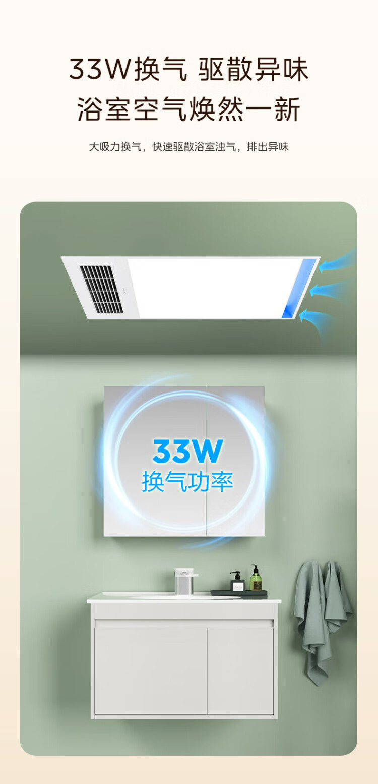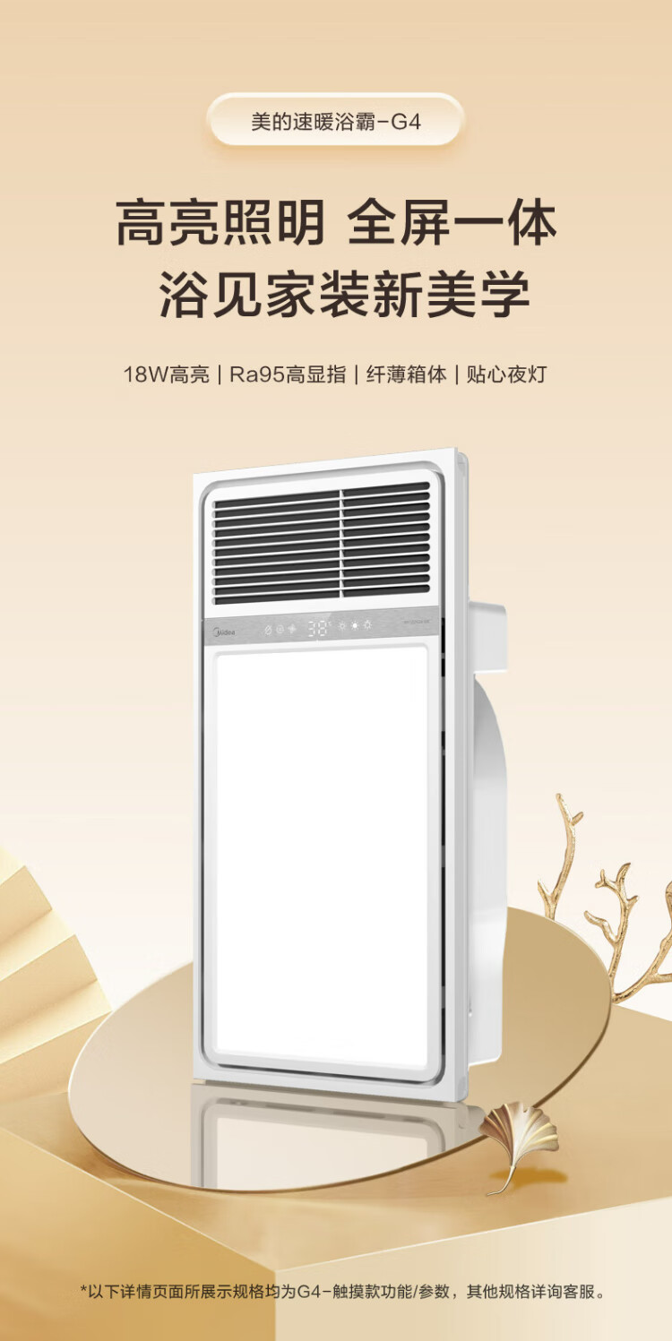 Midea air-heated bathroom heater, air heater, lighting, exhaust, five-in-one integrated ceiling-mounted wireless toilet bathroom machine G3 G3 key | 4-in-1 speed heating | temperature visibility