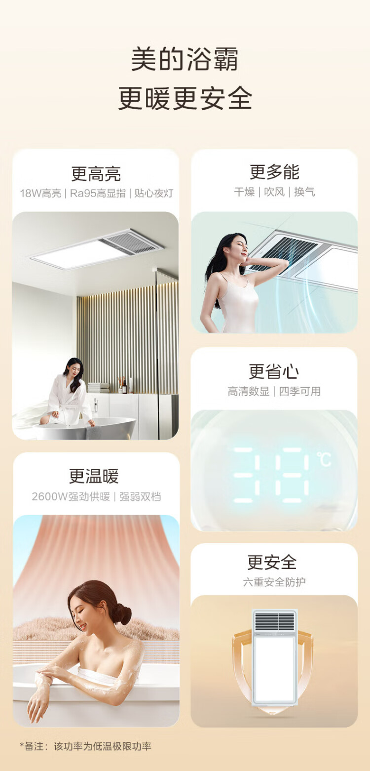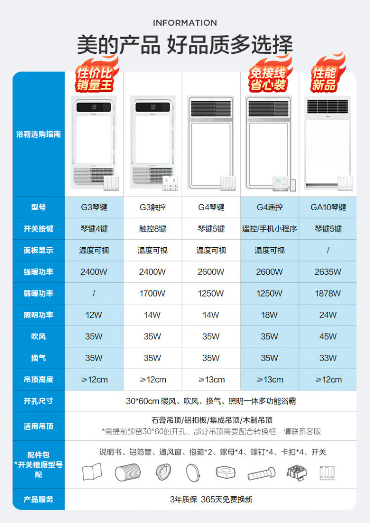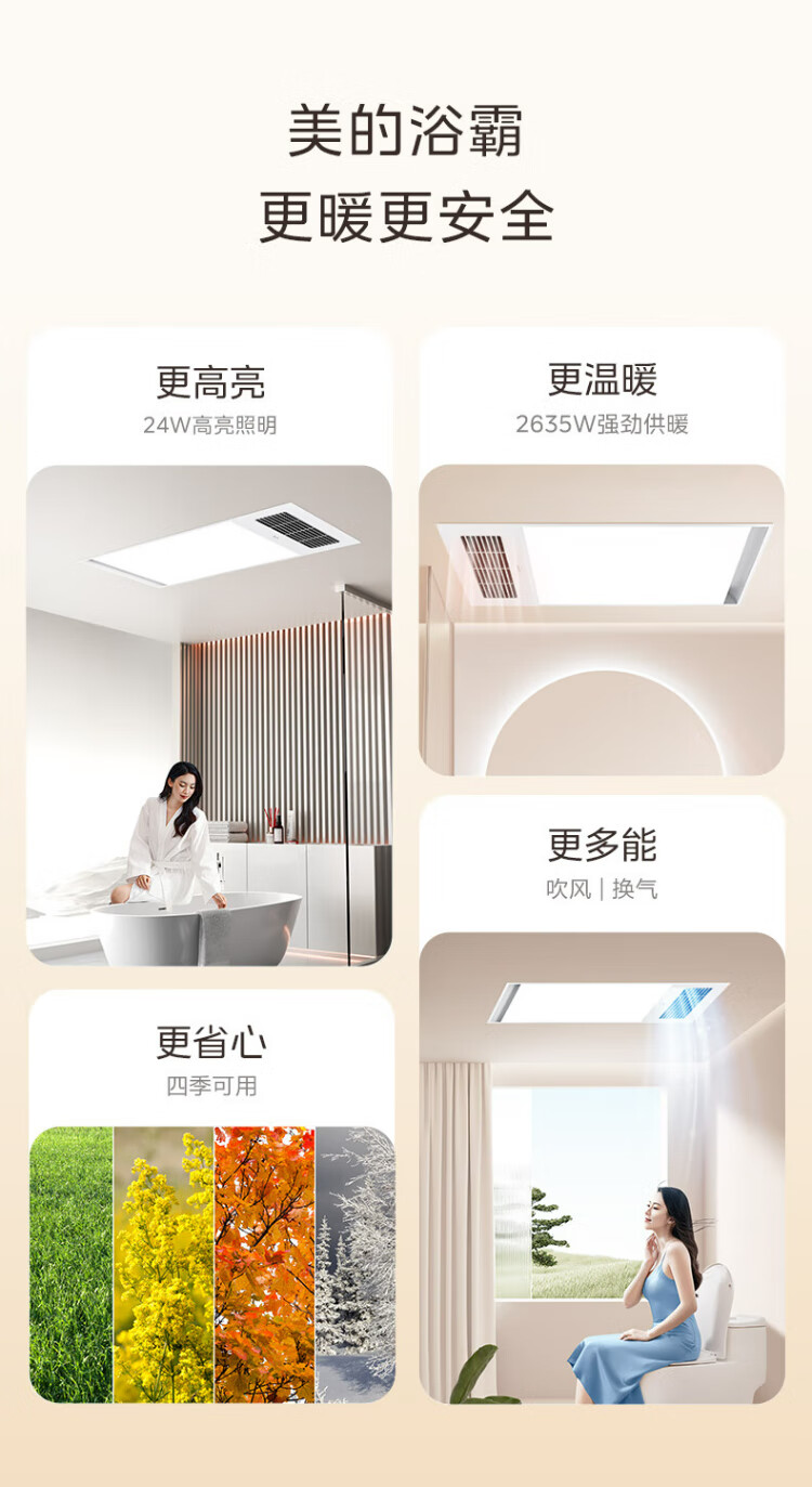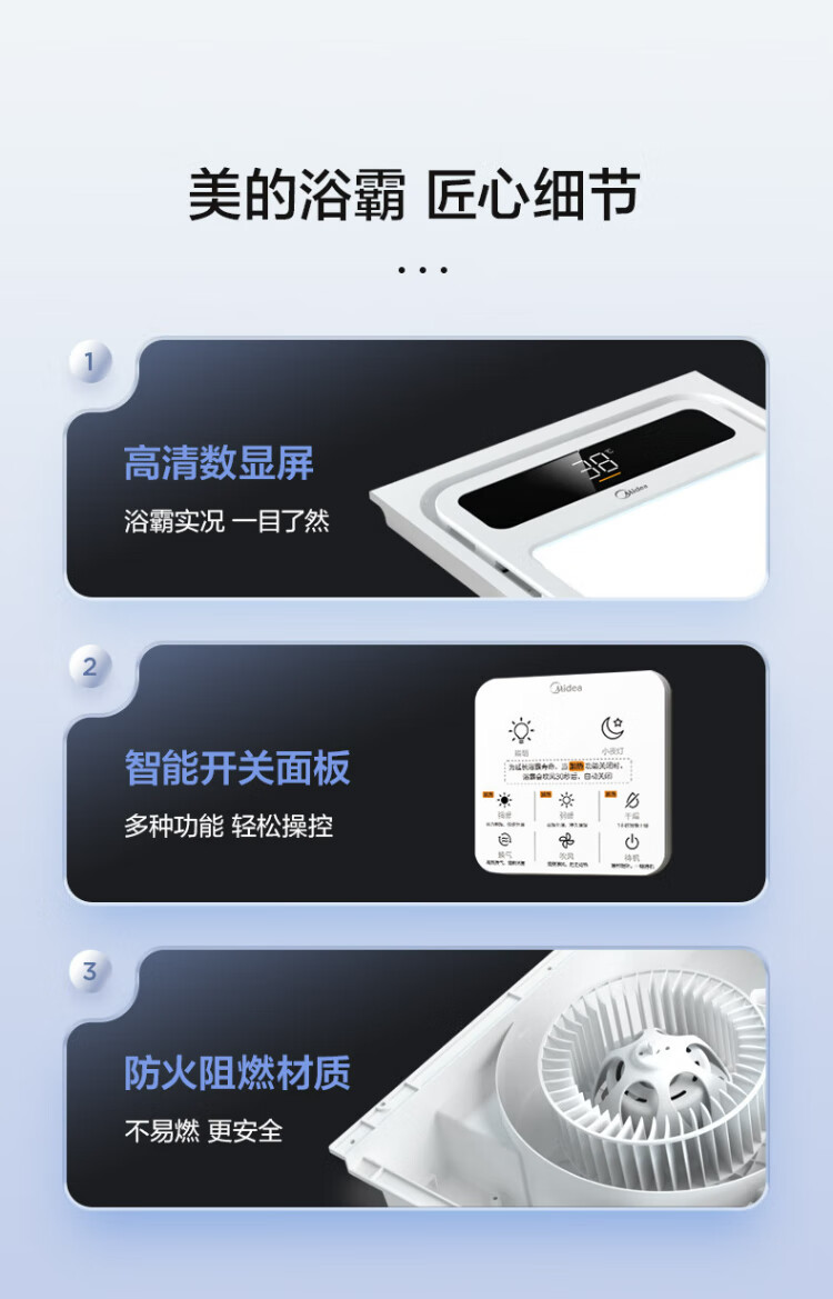 Midea air-heated bathroom heater, air heater, lighting, exhaust, five-in-one integrated ceiling-mounted wireless toilet bathroom machine G3 G3 key | 4-in-1 speed heating | temperature visibility