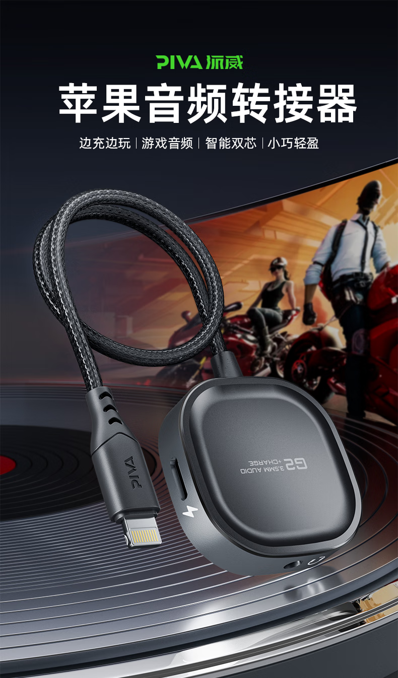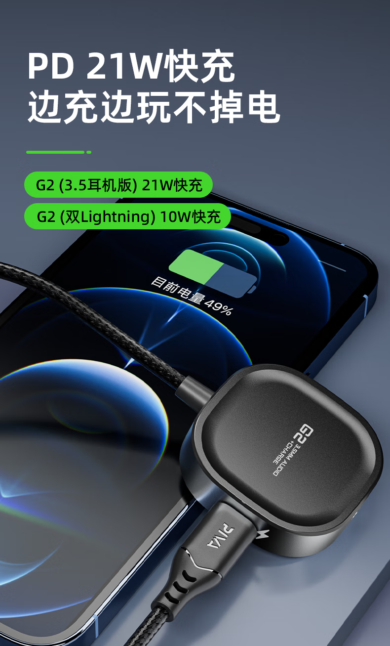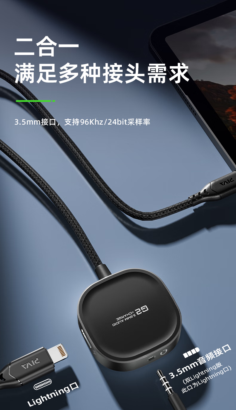 Piva g2 Apple headphone adapter two-in-one iPhone13pro12/11/X charging listening to music audio adapter lightning mobile phone to 3.5 converter black dual Lightning interface