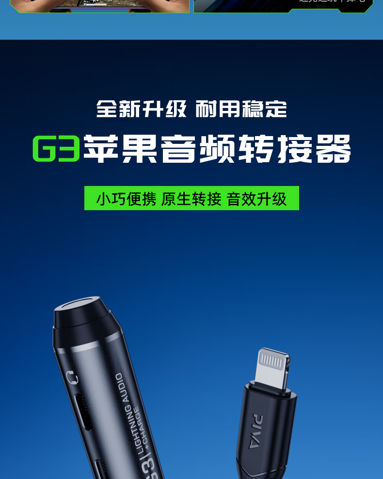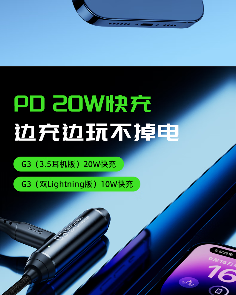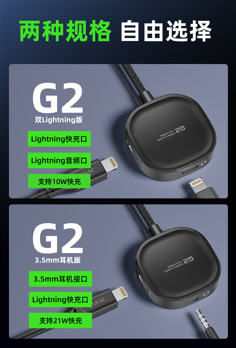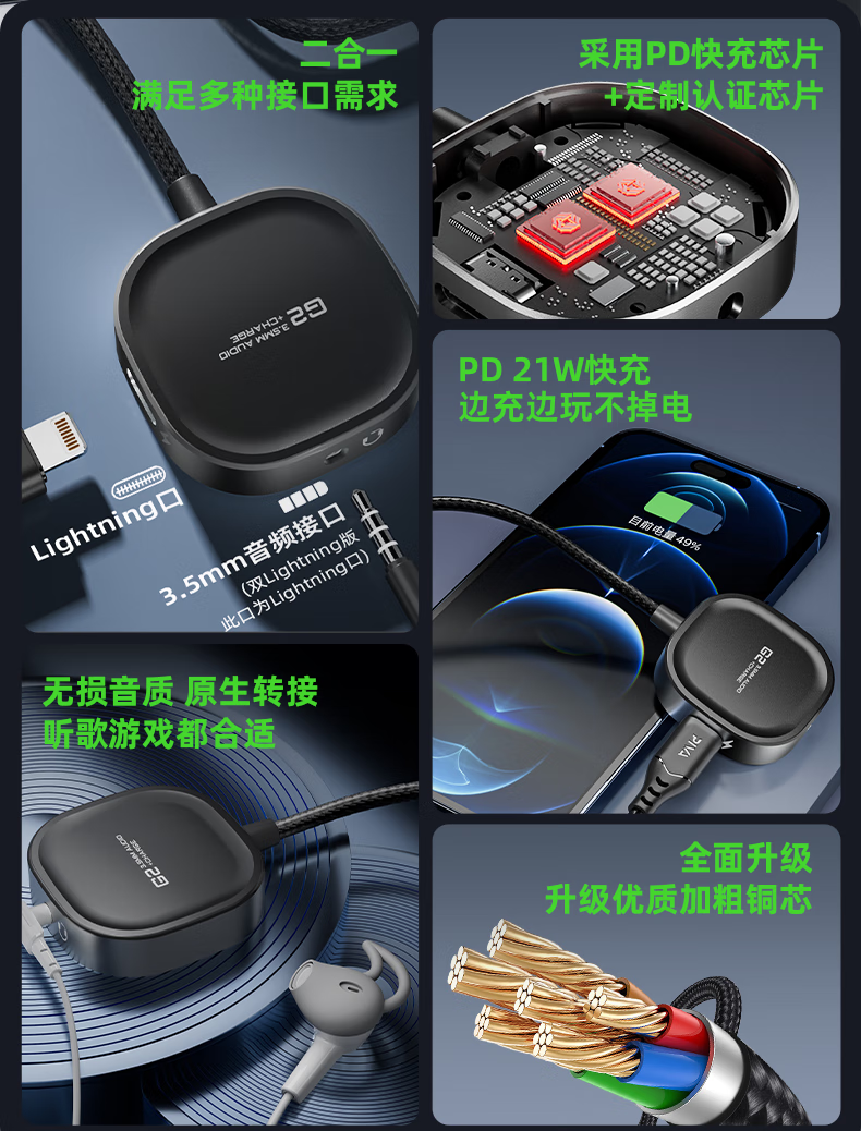 Piva g2 Apple headphone adapter two-in-one iPhone13pro12/11/X charging listening to music audio adapter lightning mobile phone to 3.5 converter black dual Lightning interface