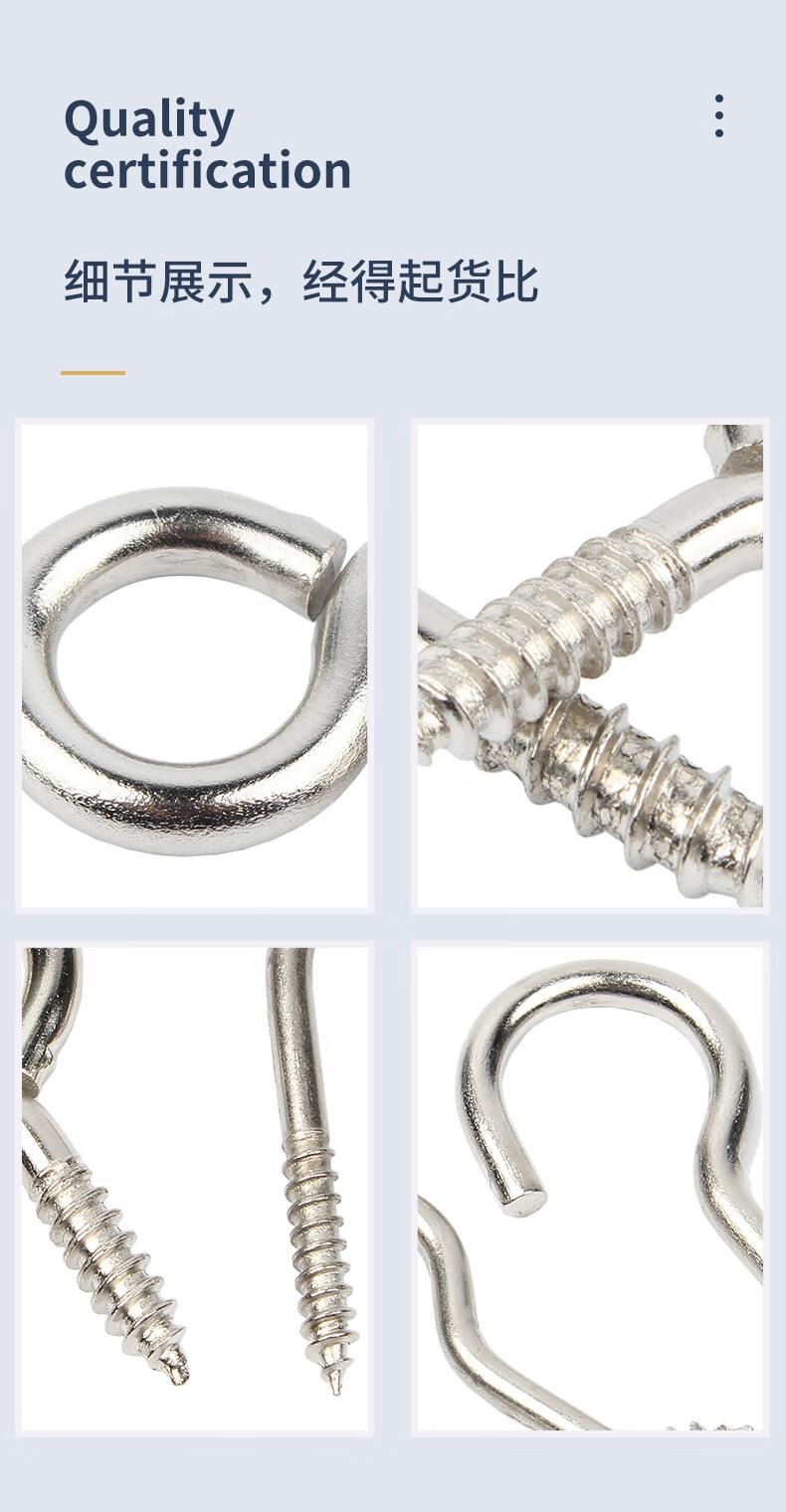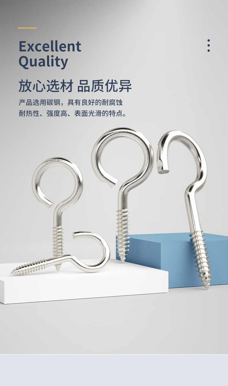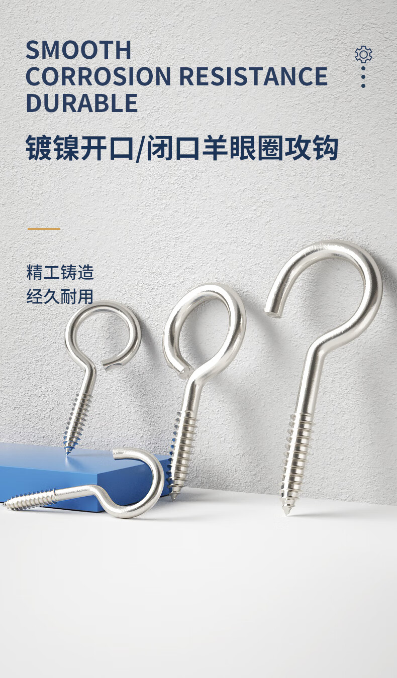 GUWANJI nickel-plated self-tapping screw hooks, rings, iron hooks, sheep's eye wood screws, iron question marks, sheep's horn hardware hooks, 8# circles, 20 pieces, nickel-plated