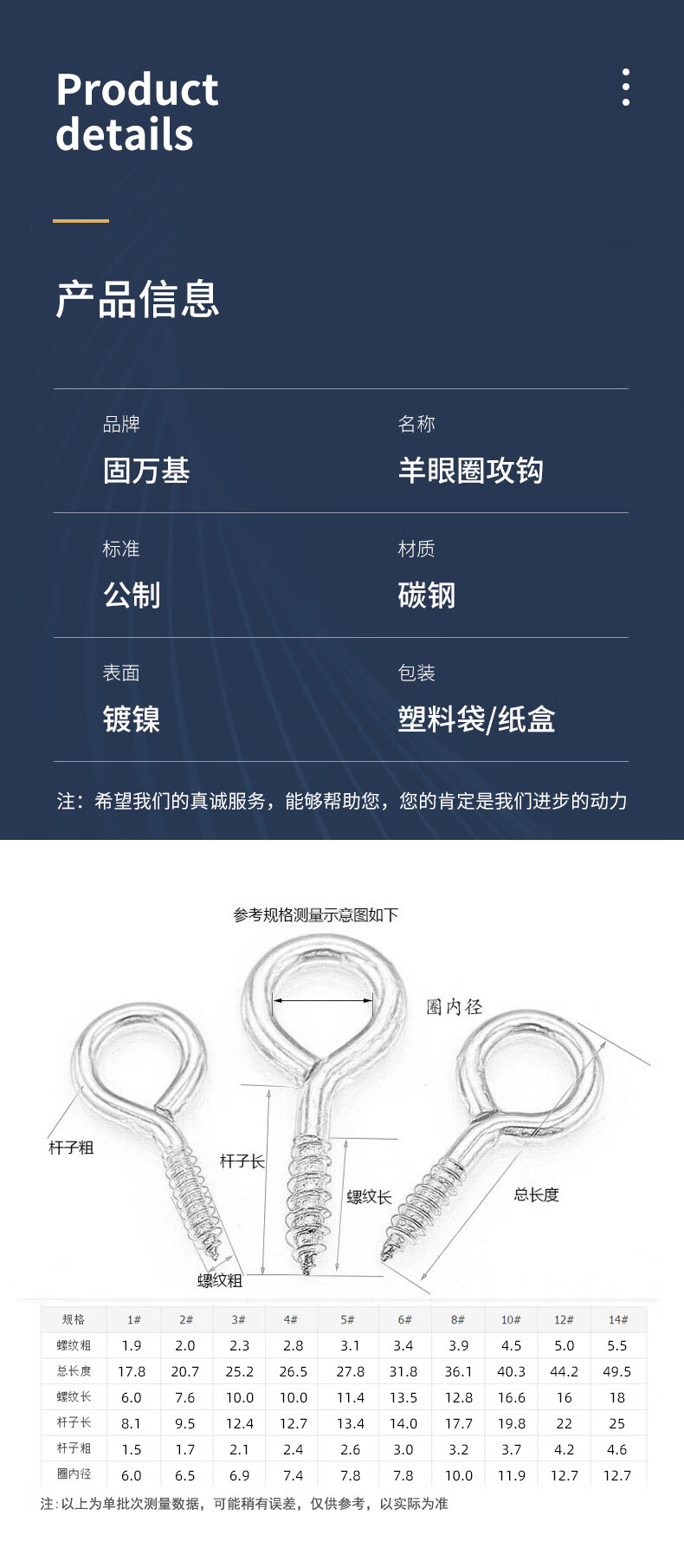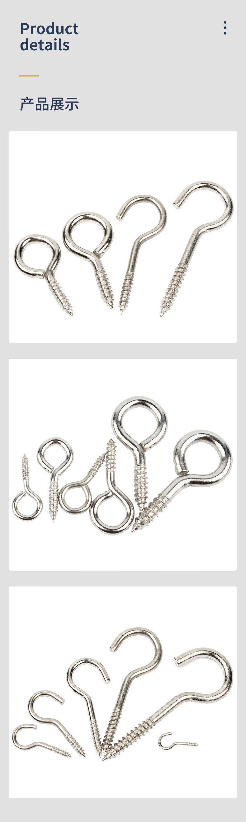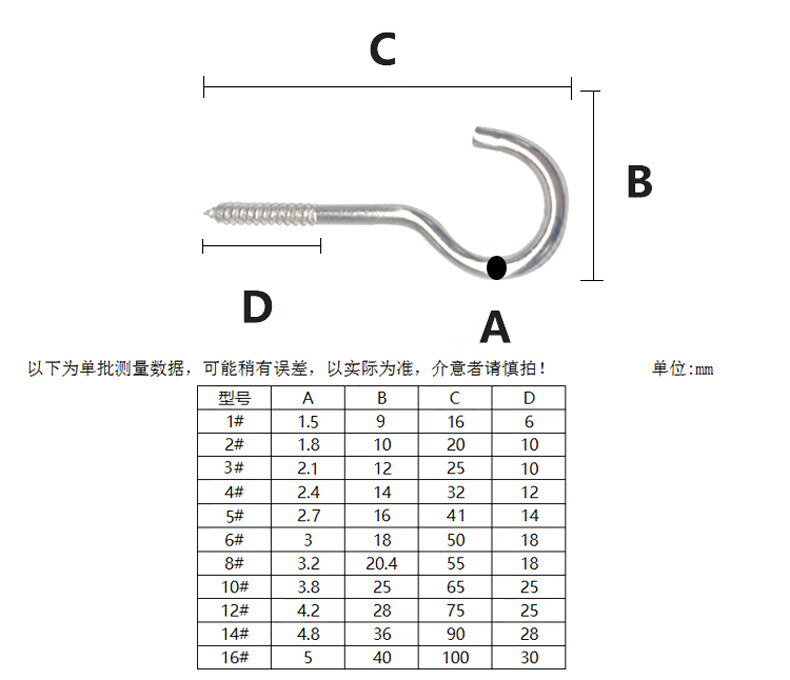 GUWANJI nickel-plated self-tapping screw hooks, rings, iron hooks, sheep's eye wood screws, iron question marks, sheep's horn hardware hooks, 8# circles, 20 pieces, nickel-plated