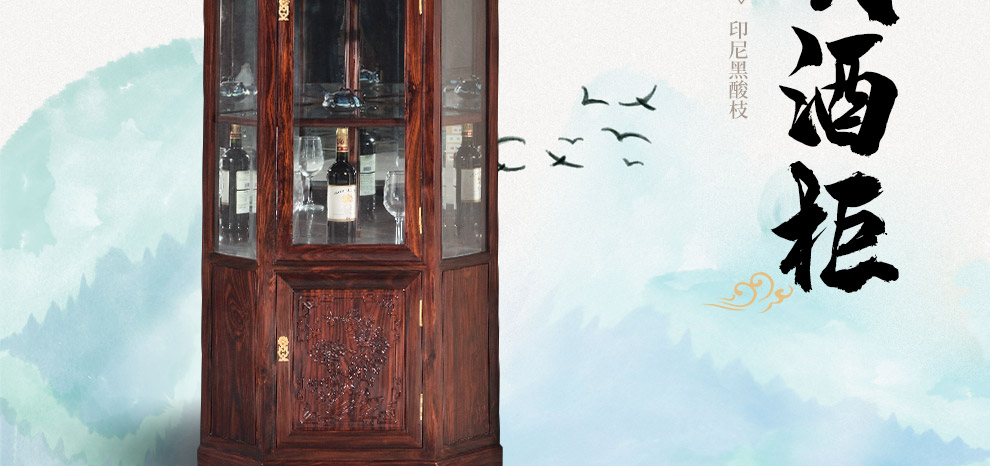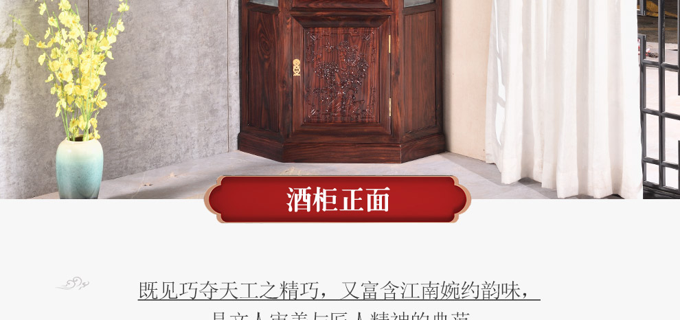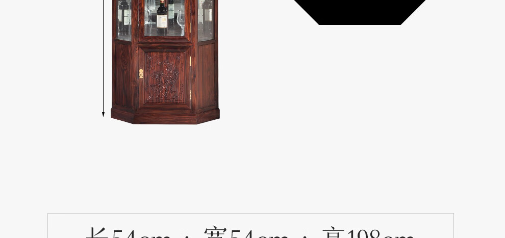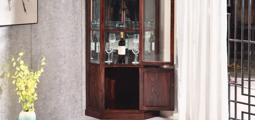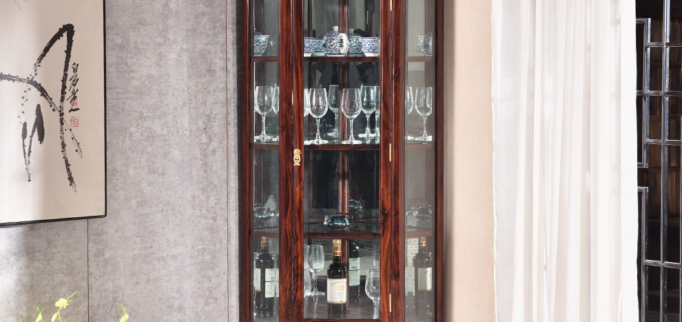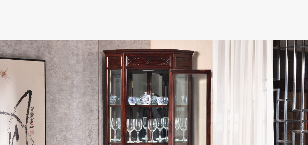 Wooden center mahogany furniture Indonesian black rosewood (scientific name: Dalbergia broadleaf) corner cabinet solid wood wine cabinet Chinese display cabinet multifunctional glass door storage cabinet corner cabinet 54*54*198cm