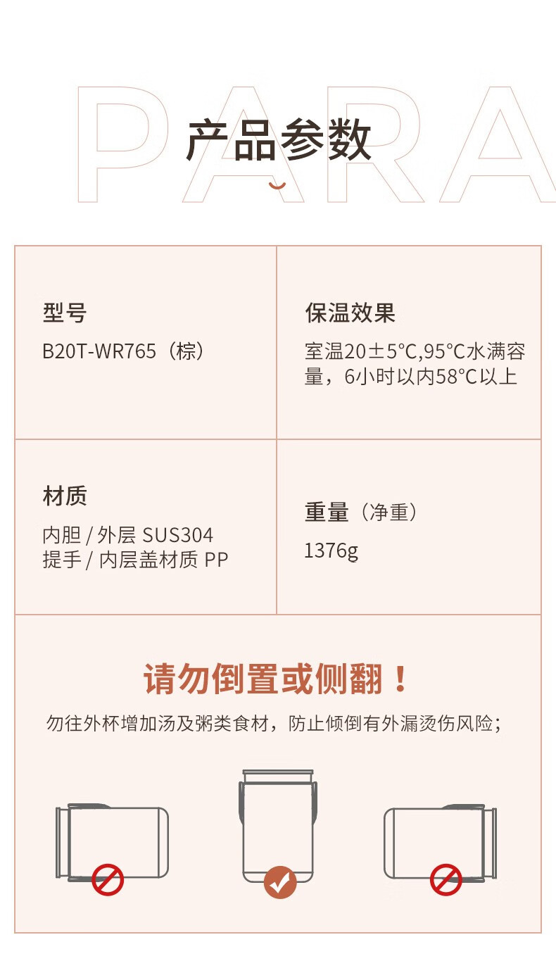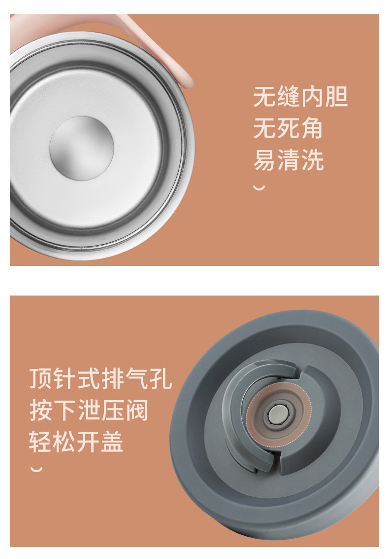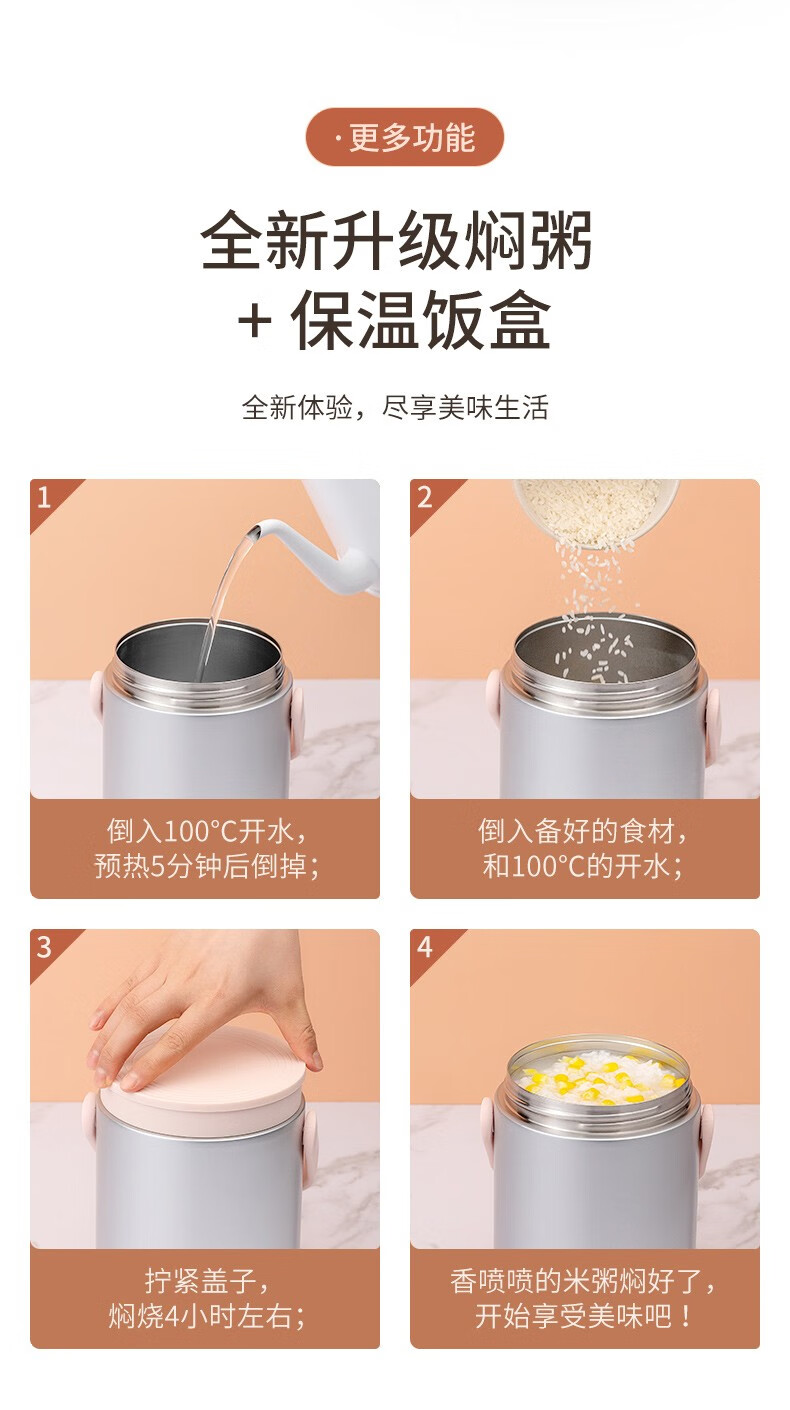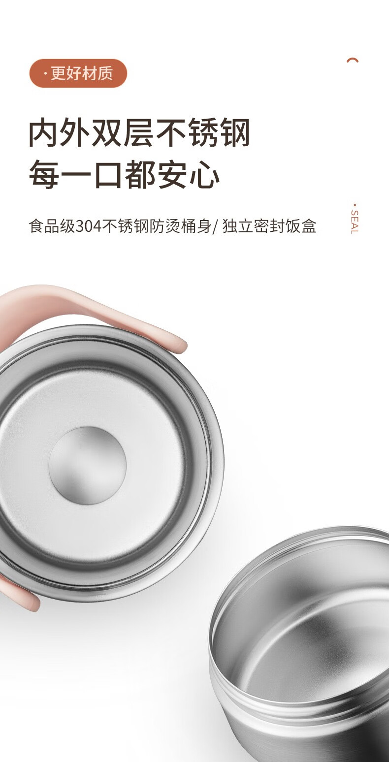 Joyoung Insulated Multi-layer 304 Stainless Steel Student Large Capacity Pot Lunch Box Three Compartments Sealed Insulated - WR765 Brown 2L
