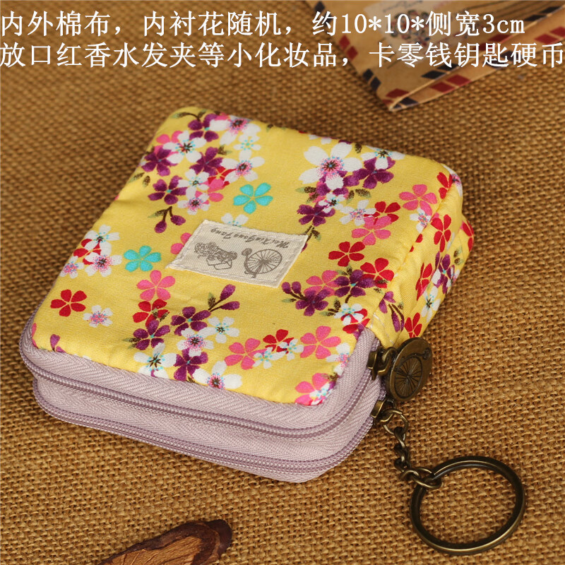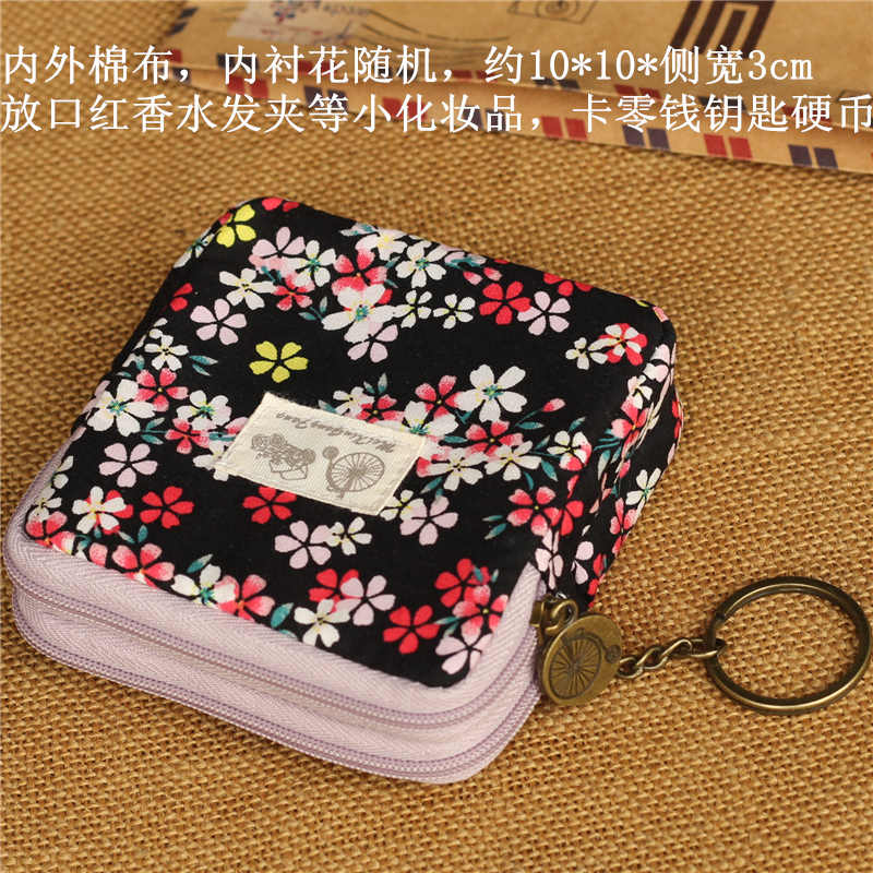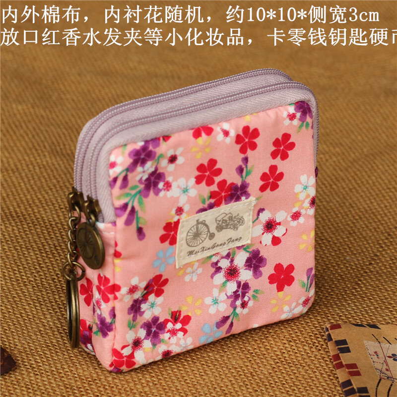 SHU GUO ER Small Wallet Women's Coin Purse Student Zipper Women's Canvas Art Cute Mini Coin Bag Headphone Storage Bag Star Blue Double Pull Square 1#C
