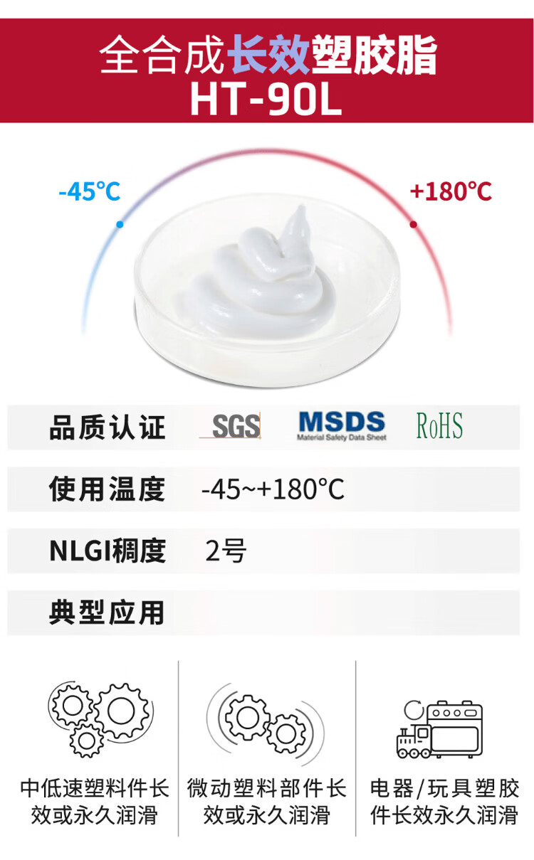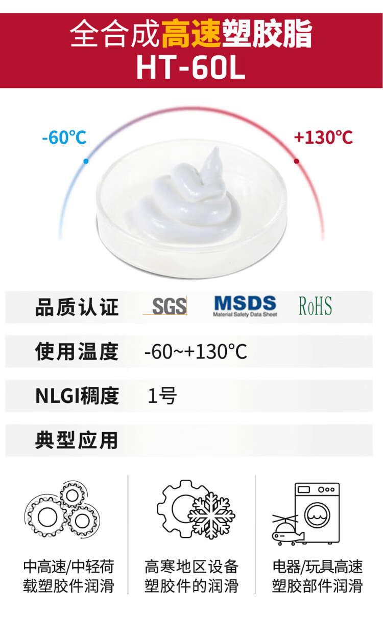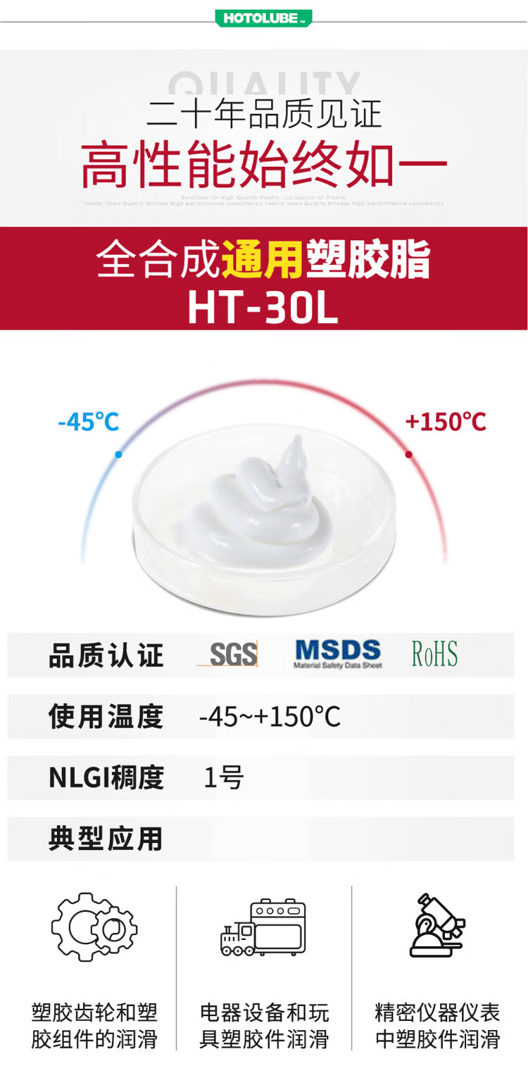 Hutou fully synthetic high-speed/noise reduction/long-lasting plastic grease white grease medium-high speed long-life plastic gear plastic lubricating grease HT-30L (2kg*6 five boxes)
